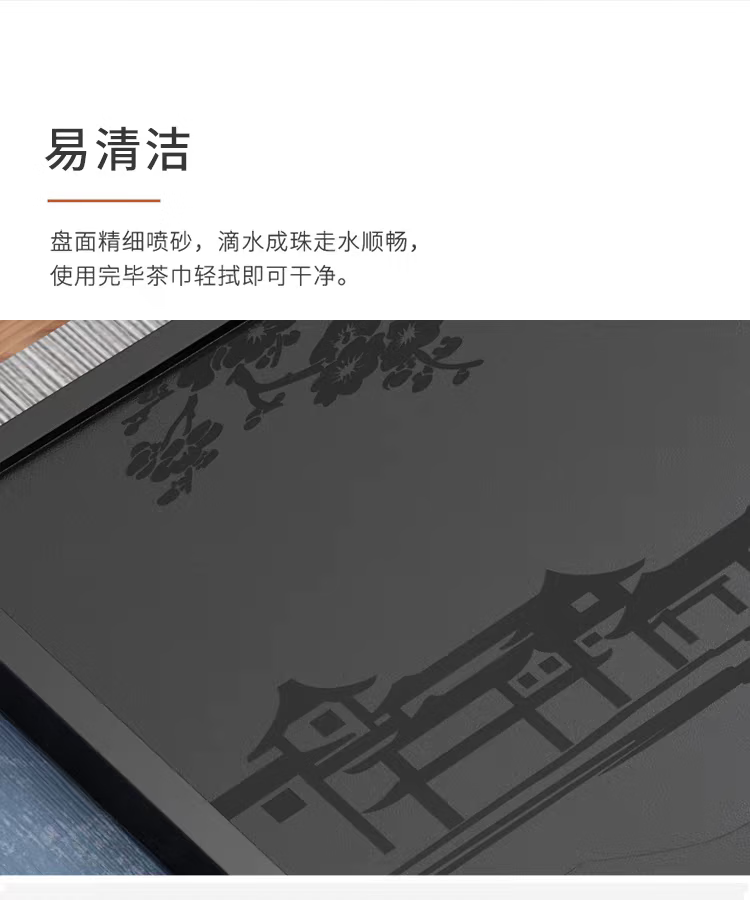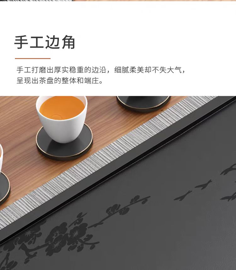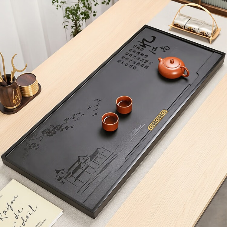 Whole piece of black gold stone tea tray for home simple stone large and small black gold stone tea tray customized tea sea A material 80*37 Jiangnan-free 7-piece set