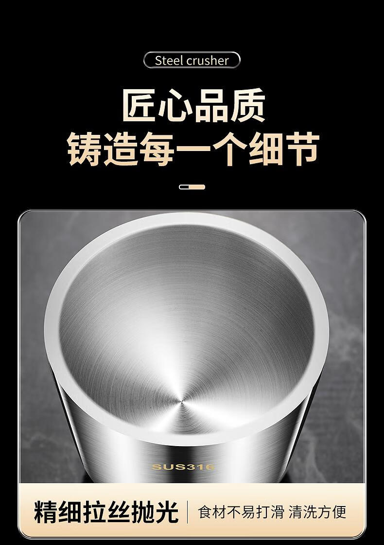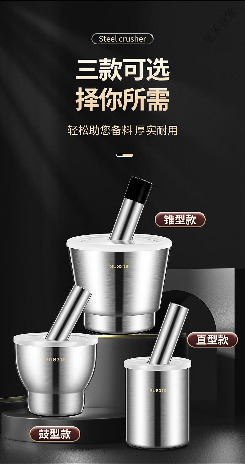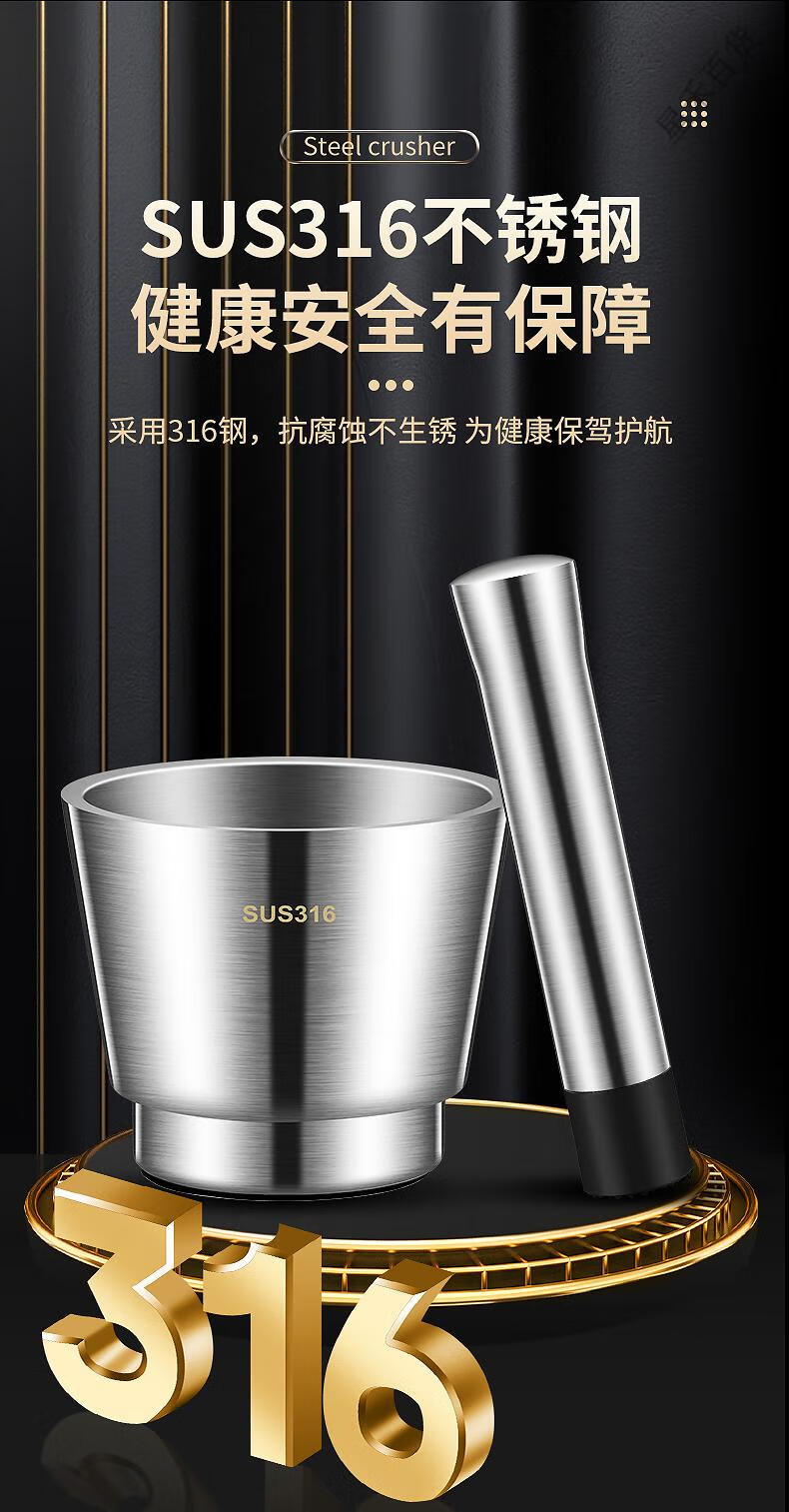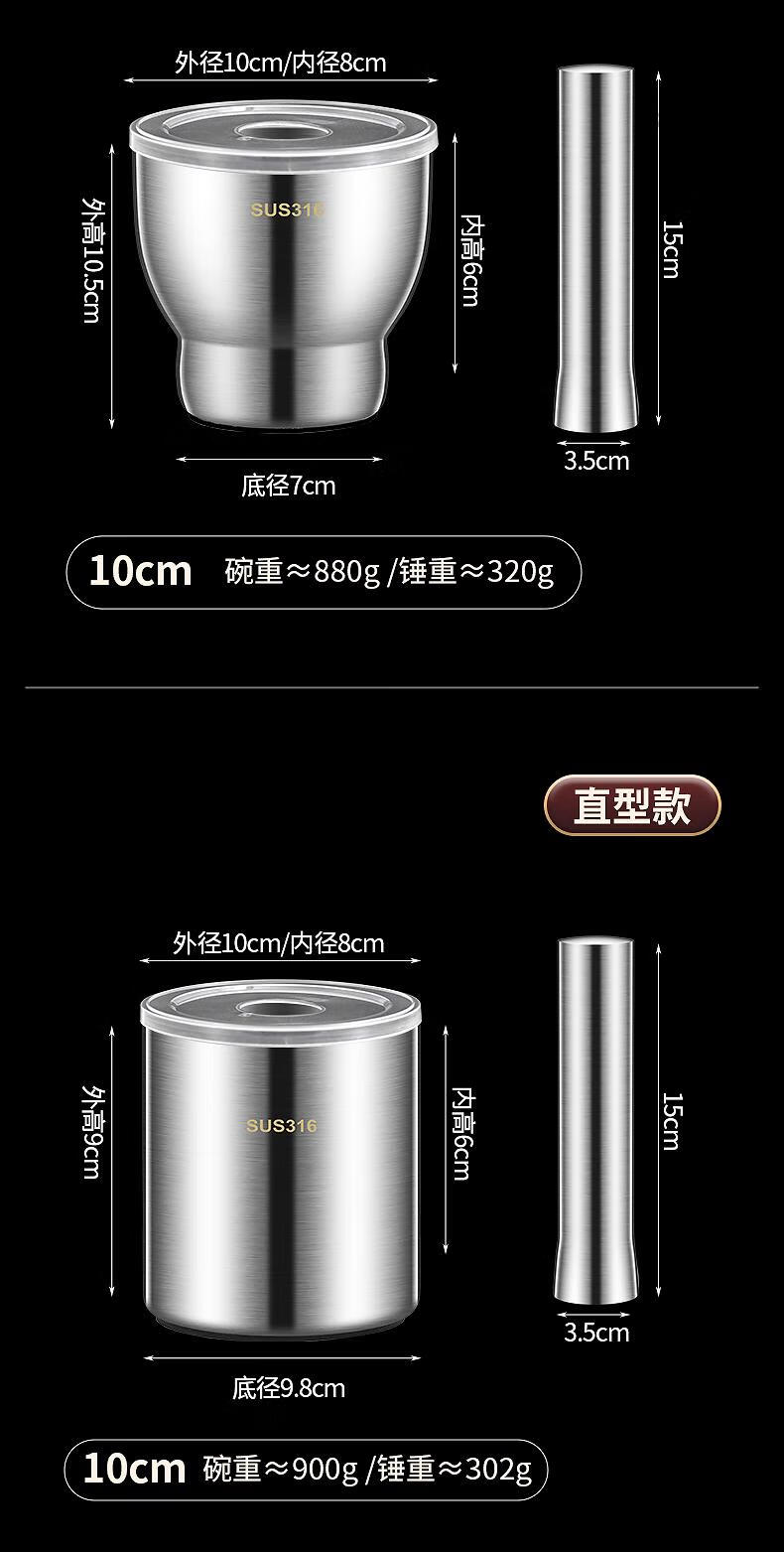 Supor's same 316 stainless steel garlic pounder, solid medicine jar, medicine mortar, garlic paste, garlic mortar, grinding bowl 3, 316 stainless steel 10cm straight pounder