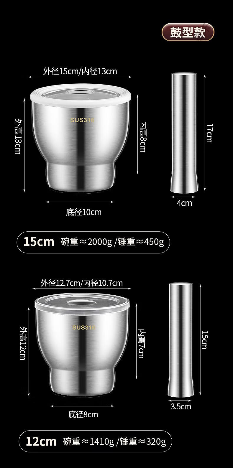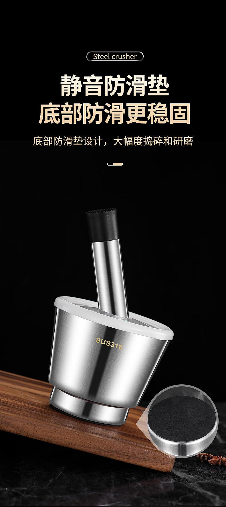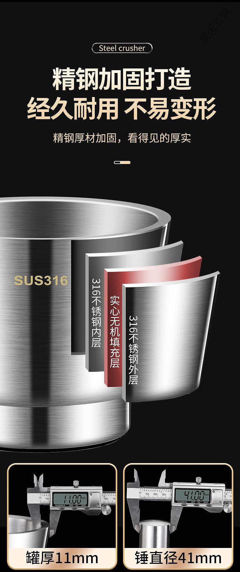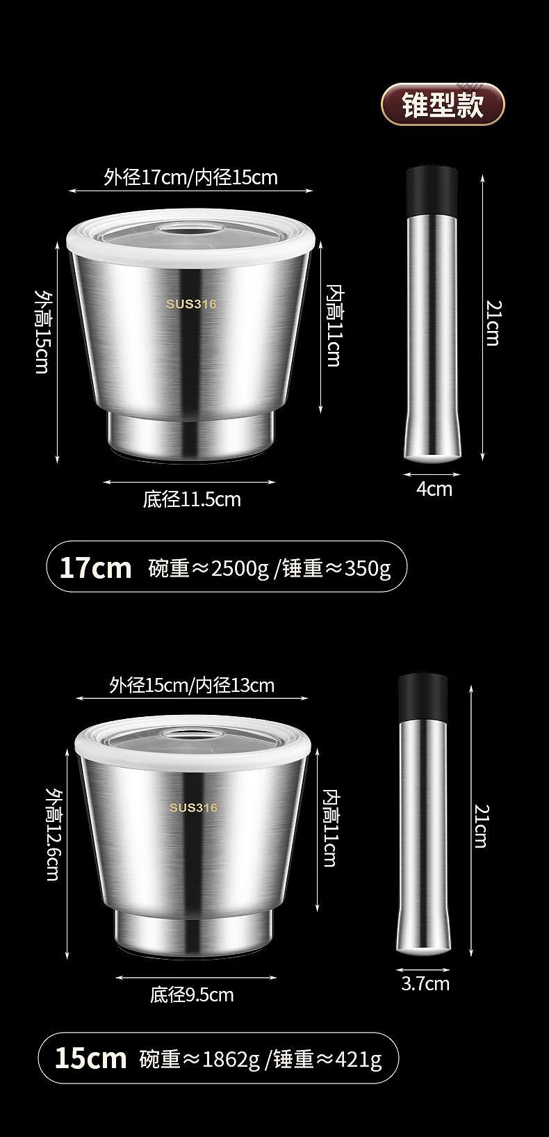 Supor's same 316 stainless steel garlic pounder, solid medicine jar, medicine mortar, garlic paste, garlic mortar, grinding bowl 3, 316 stainless steel 10cm straight pounder