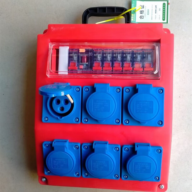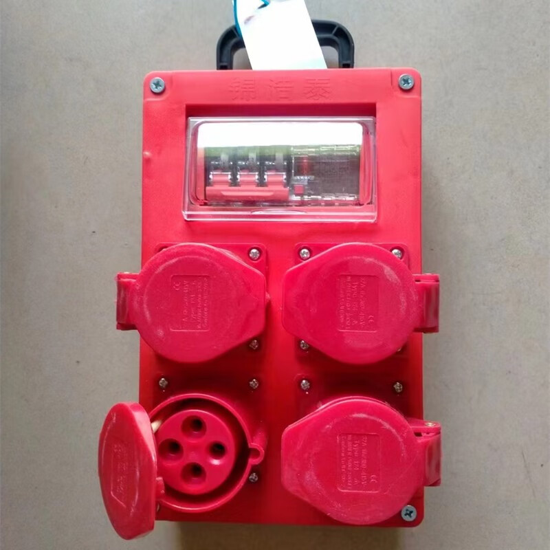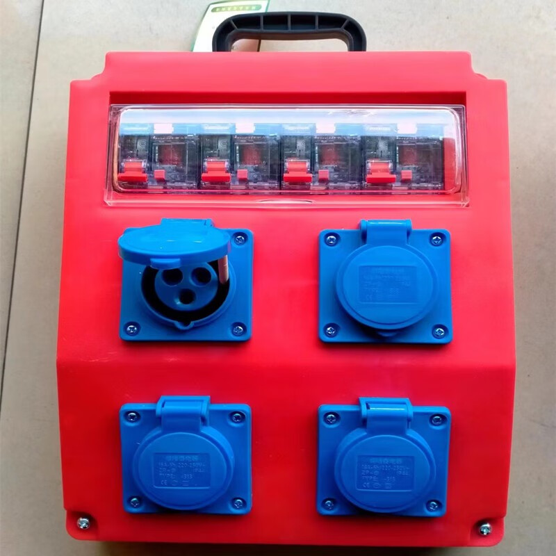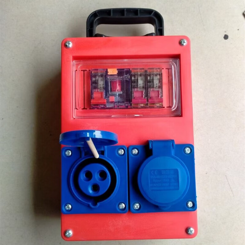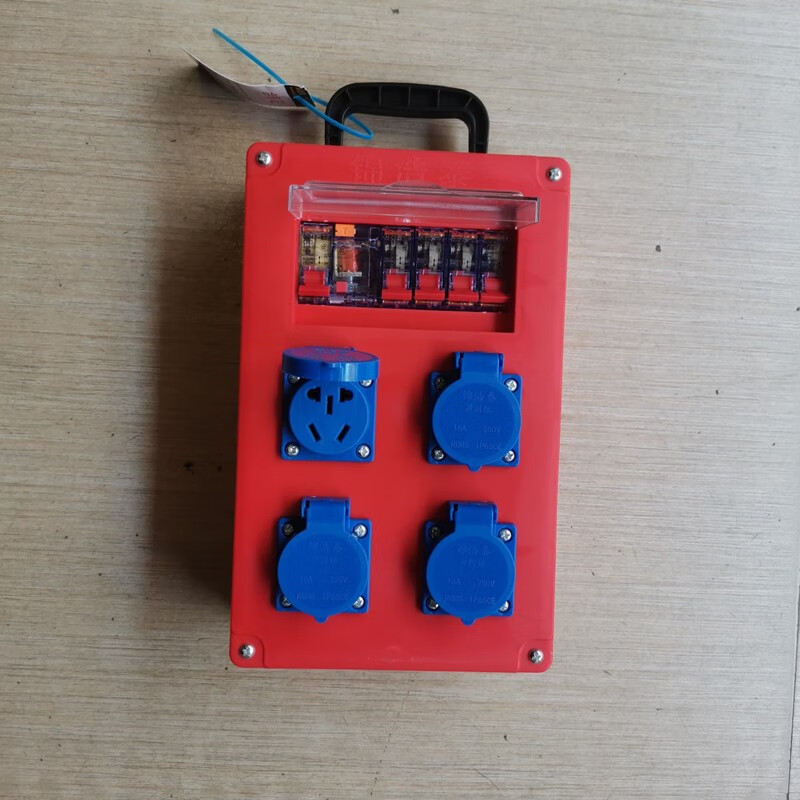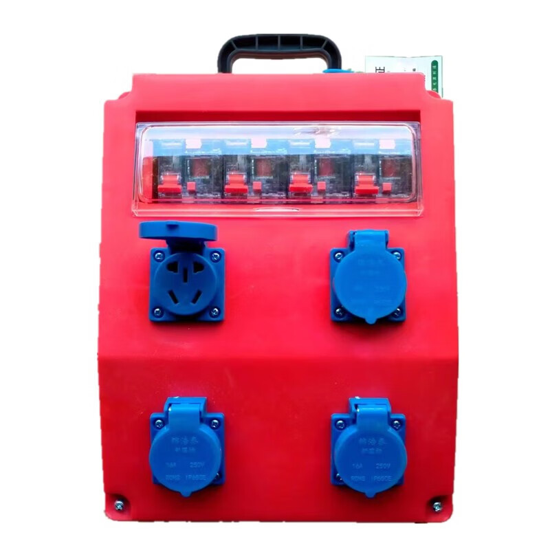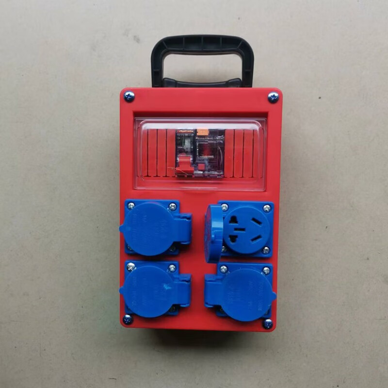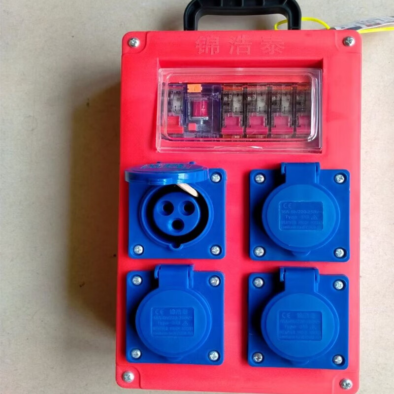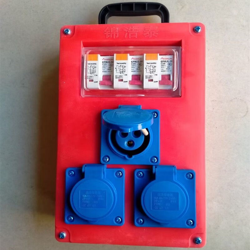 Boîte de distribution temporaire pour chantier de construction, valise, prise 220V, boîte d'alimentation mobile 380V, portable avec fuite, petite rangée unique rouge sans couvercle, 2 interrupteurs traversants à cinq trous