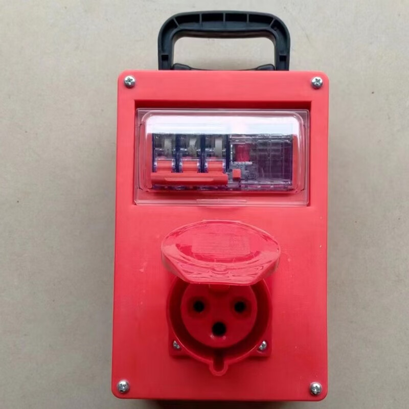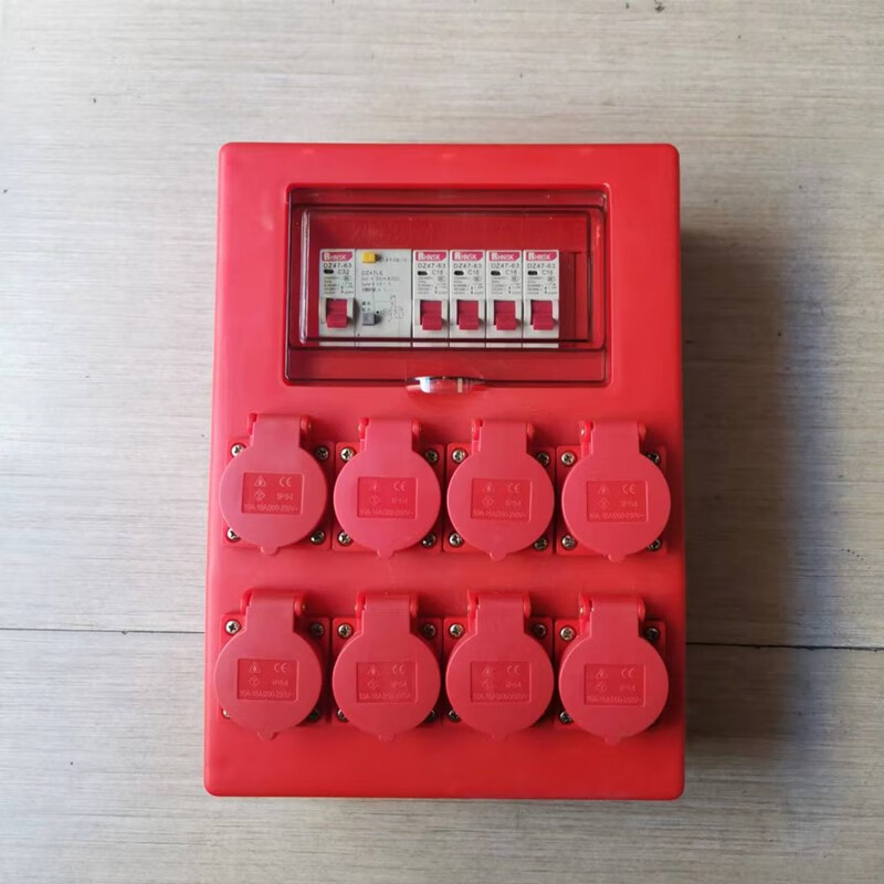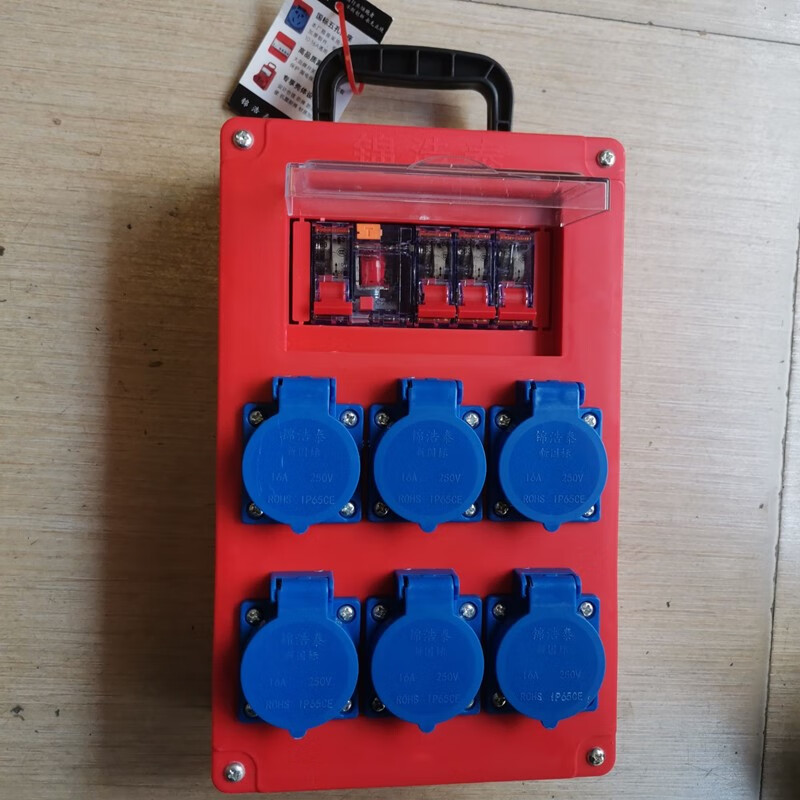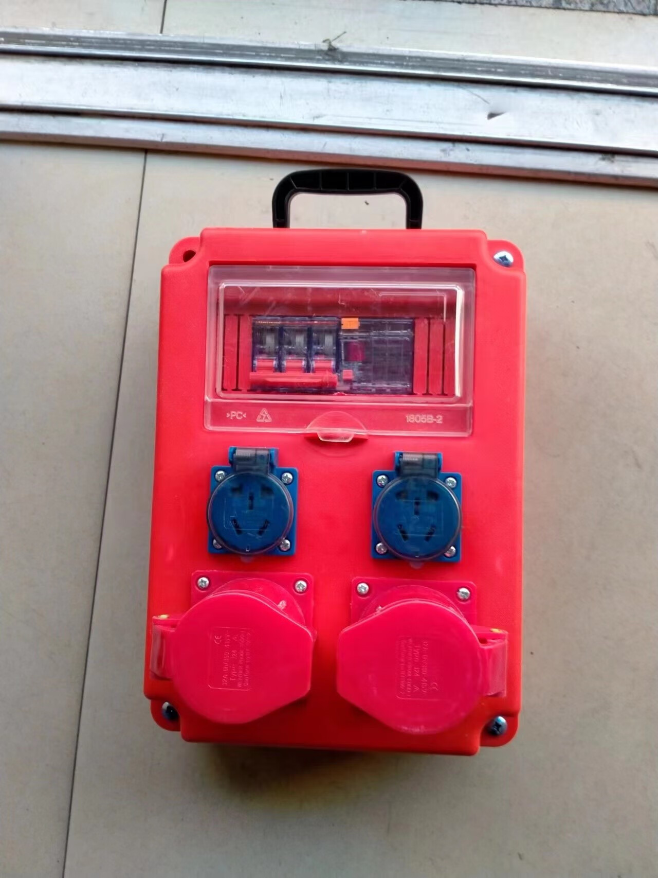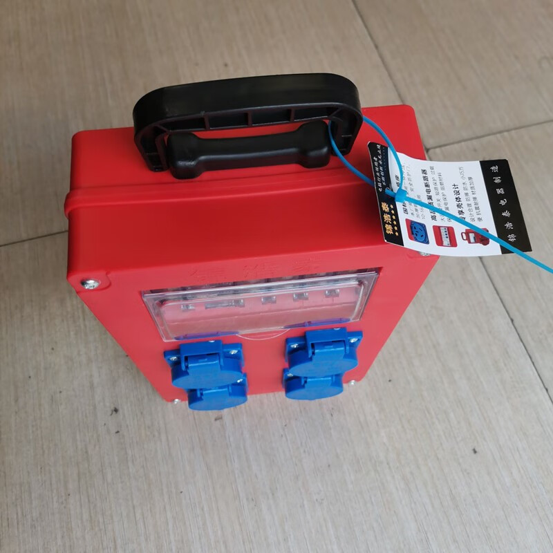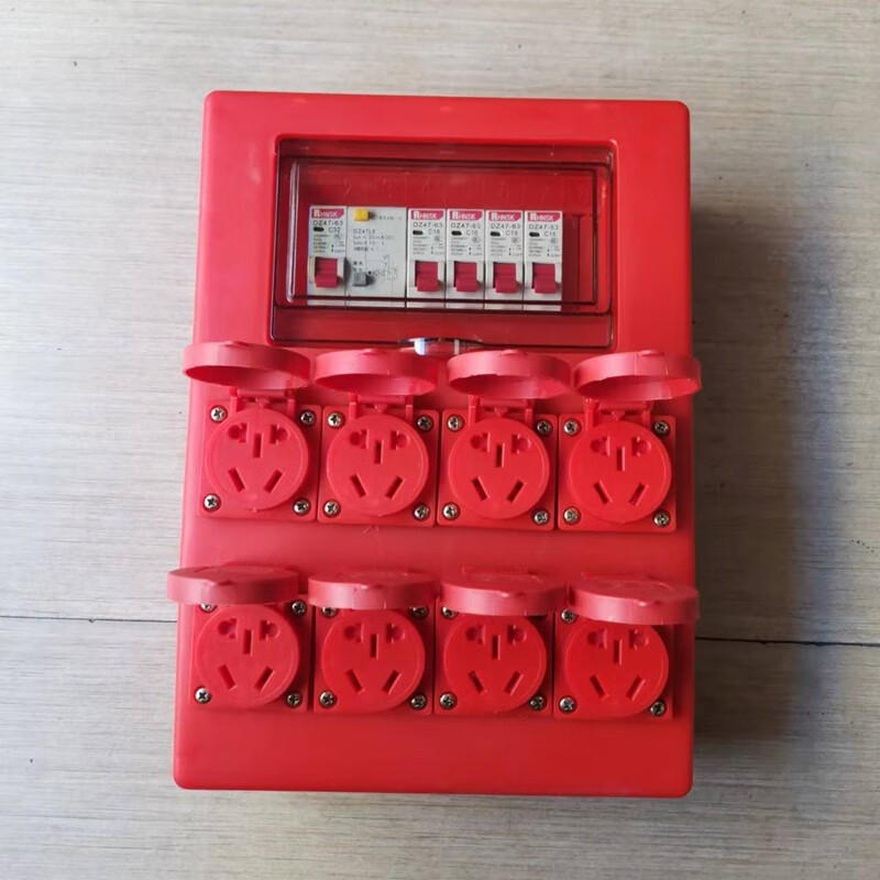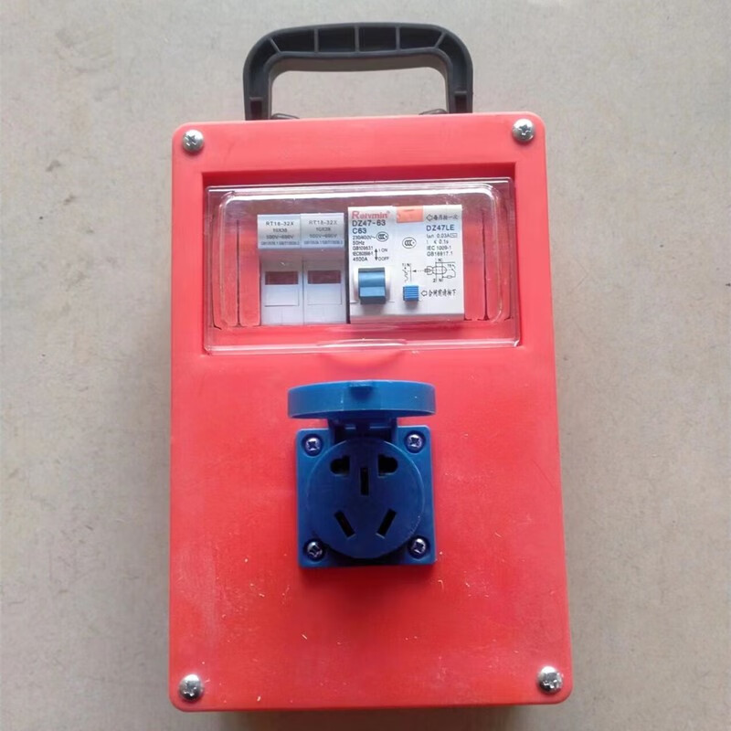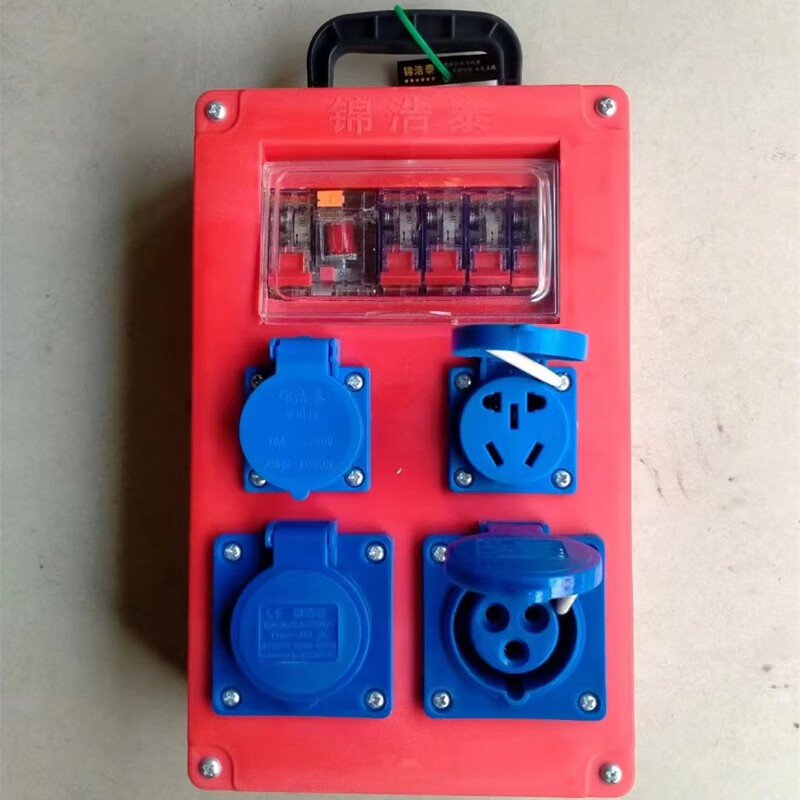 Boîte de distribution temporaire pour chantier de construction, valise, prise 220V, boîte d'alimentation mobile 380V, portable avec fuite, petite rangée unique rouge sans couvercle, 2 interrupteurs traversants à cinq trous