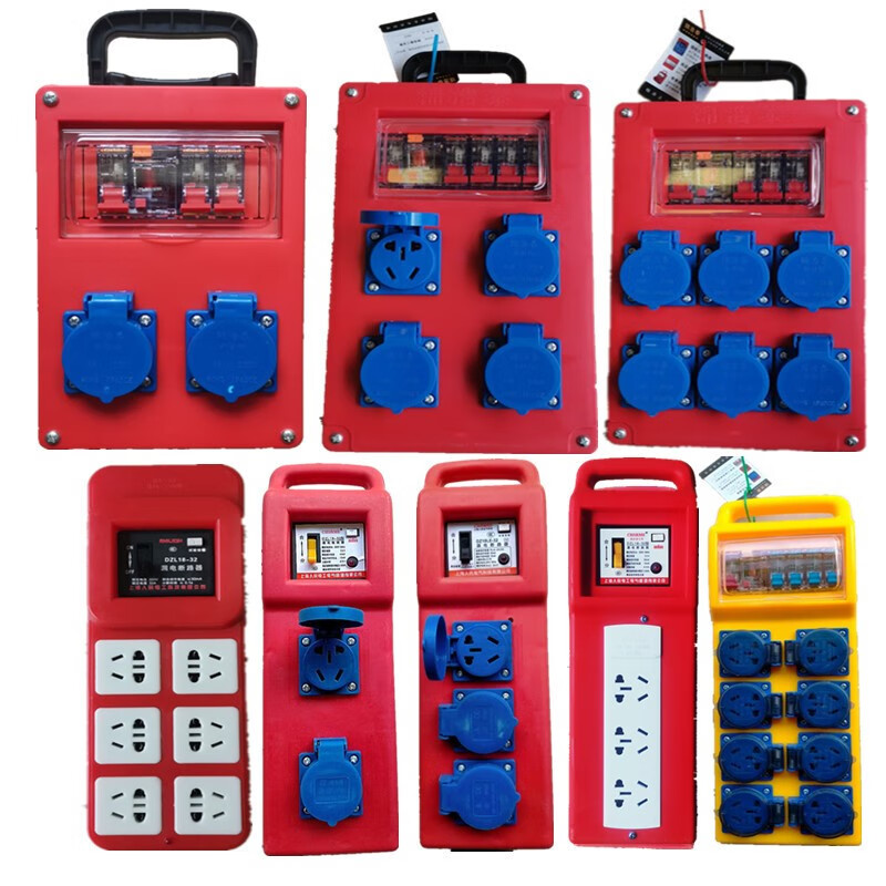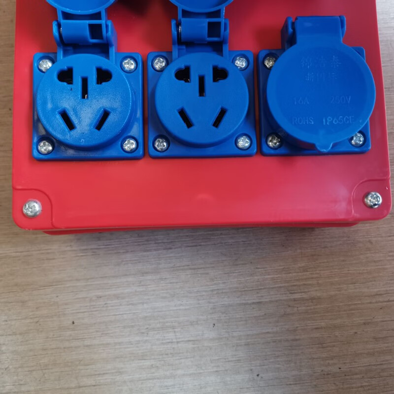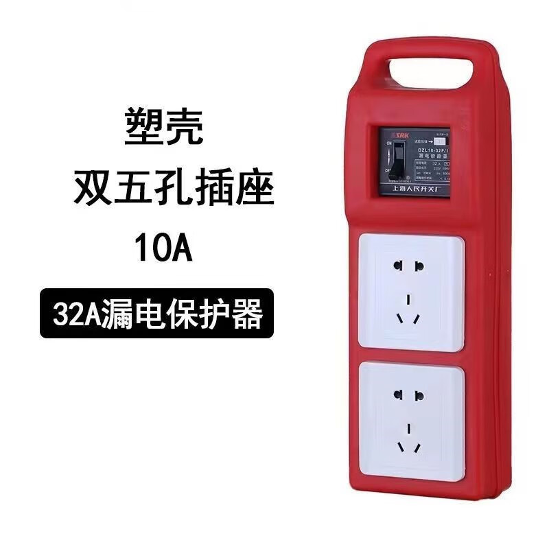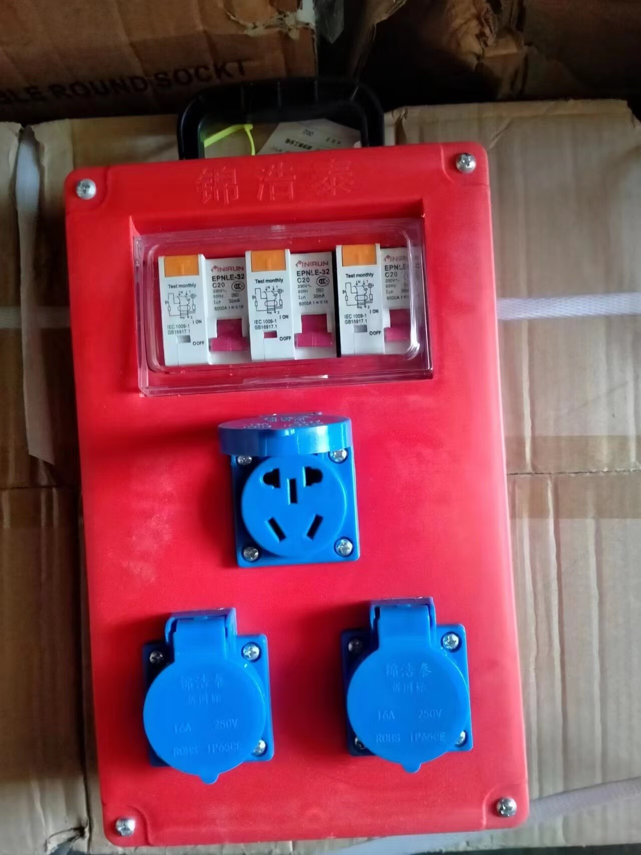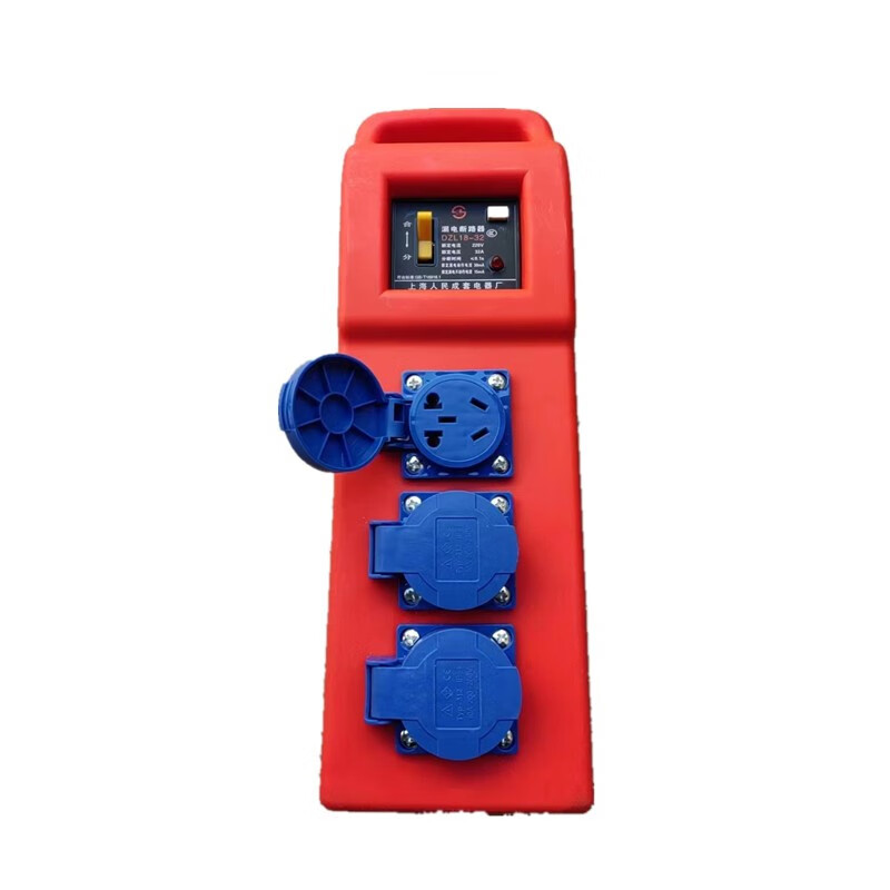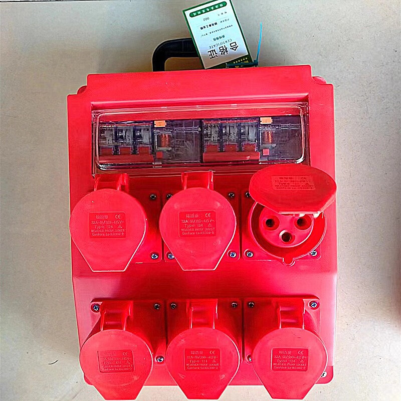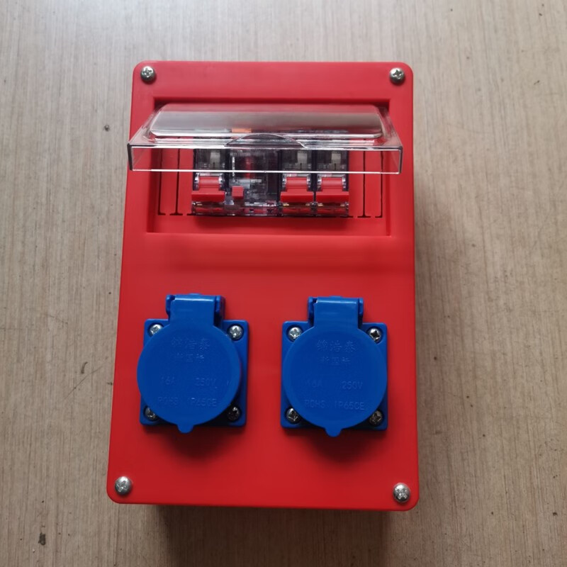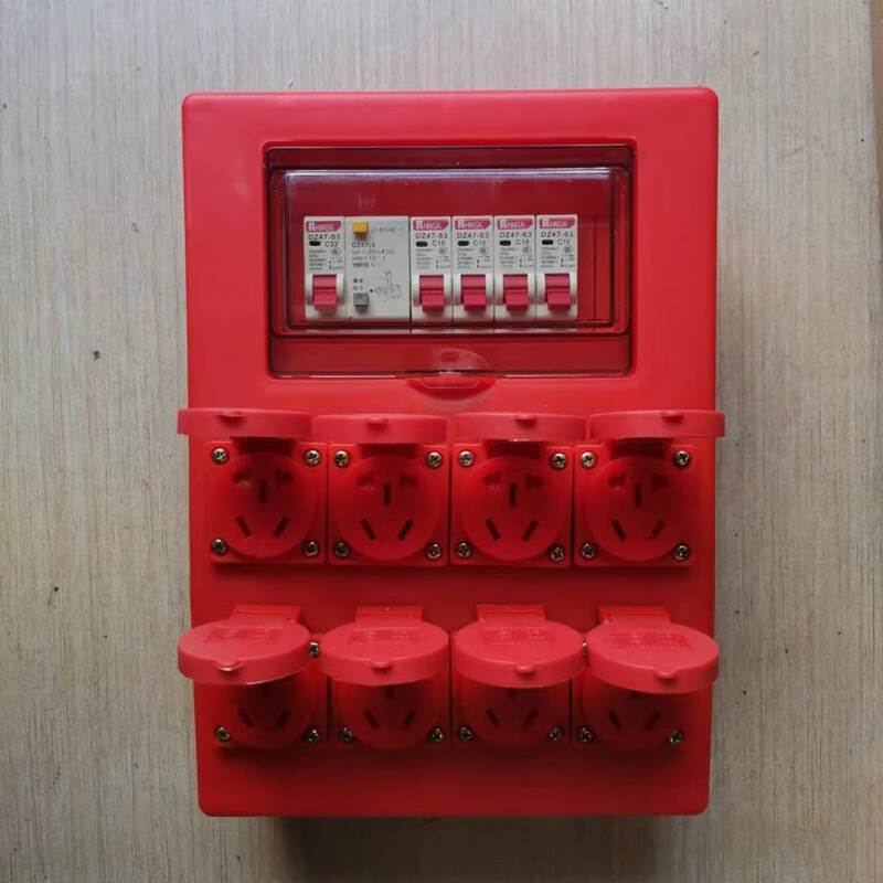 Boîte de distribution temporaire pour chantier de construction, valise, prise 220V, boîte d'alimentation mobile 380V, portable avec fuite, petite rangée unique rouge sans couvercle, 2 interrupteurs traversants à cinq trous