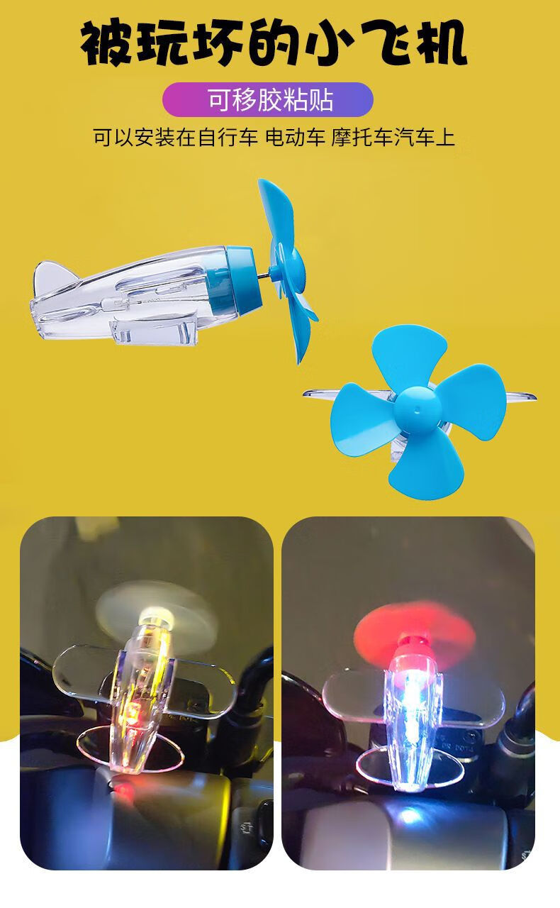 Electric vehicle light-emitting wind energy aircraft vehicle-mounted bright light wind power LED ornaments motorcycle atmosphere light light-emitting small airplane random color sent one pack