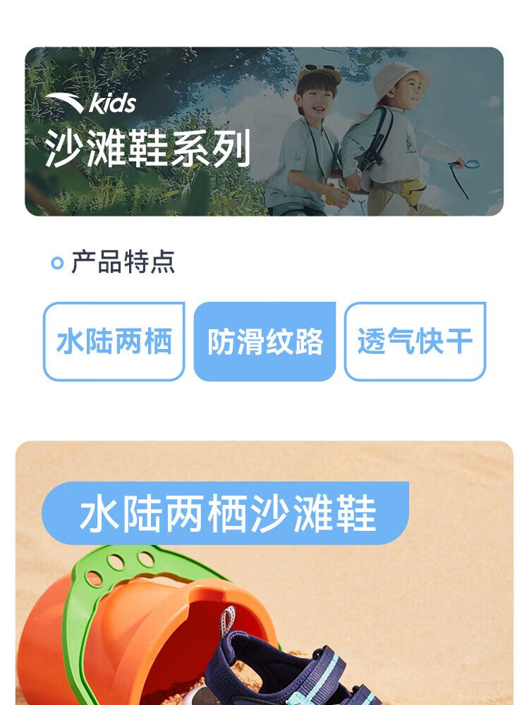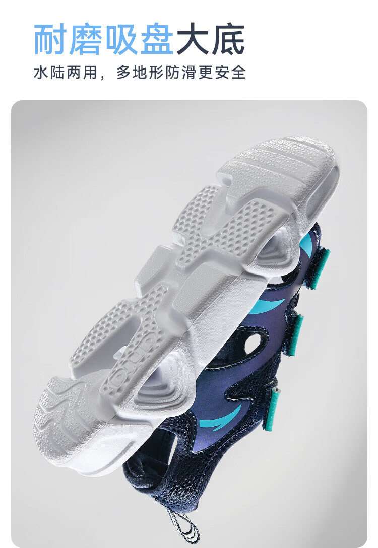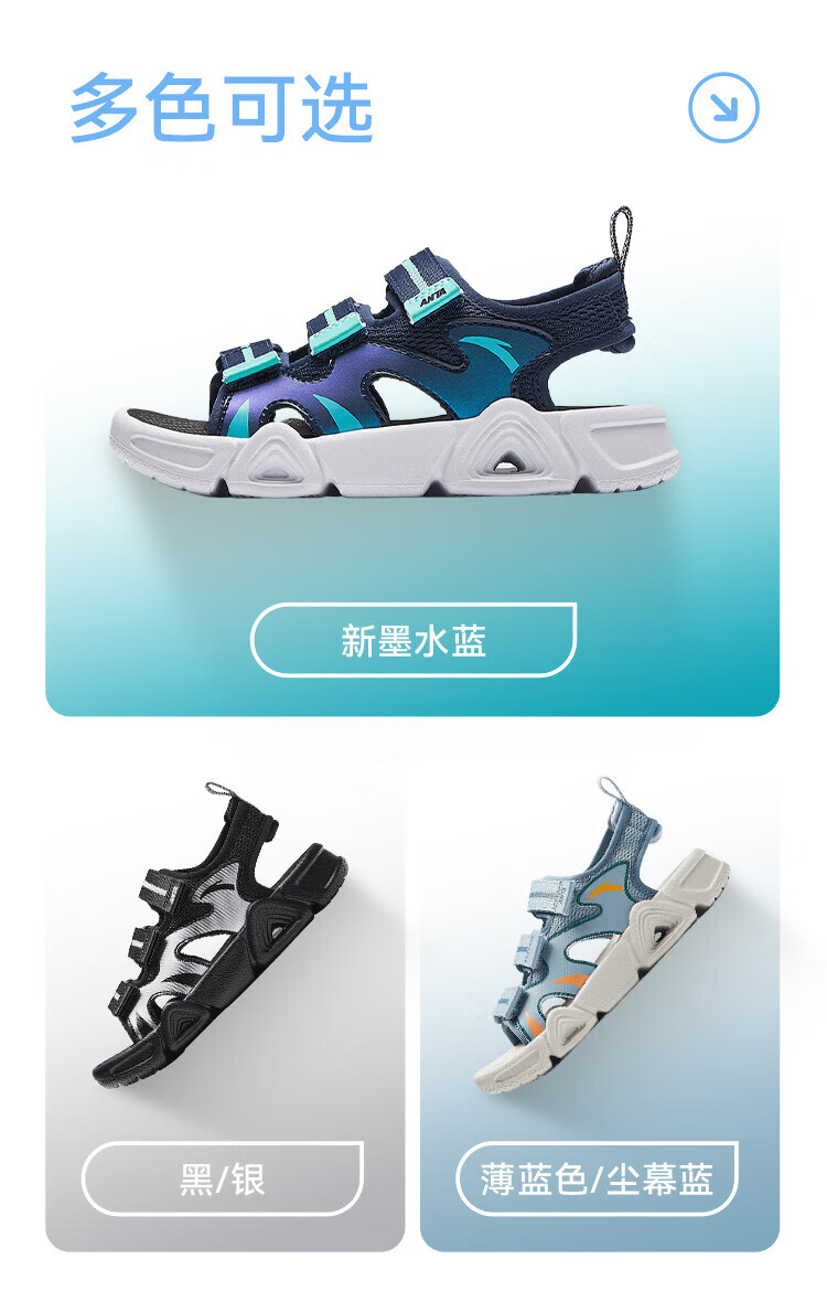 ANTA Children's Sandals Boys' Shoes 2025 Summer New Velcro Outdoor Arch Open Toe Sandals Thin Blue/Dust Curtain Blue-1 28