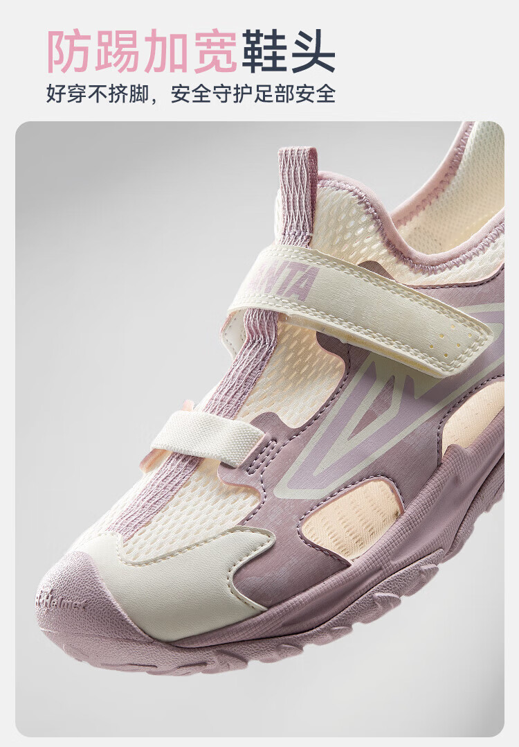ANTA Children's Sandals, Girls' Shoes, 2025 Summer New Outdoor Baotou Small Shark Anti-collision Beach Shoes Ivory White/Light Soft Pink-1 33