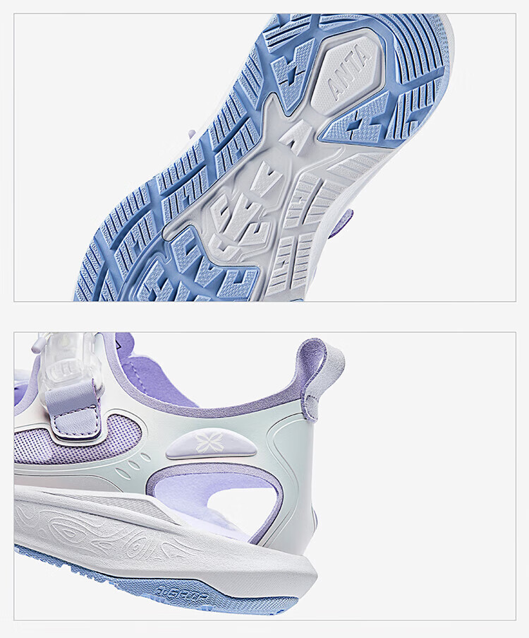Anta children's sandals, girls' shoes, 2025 summer new product Qingyu Baotou outdoor soft elastic beach shoes Anta white/Leng Lingzi-3 34