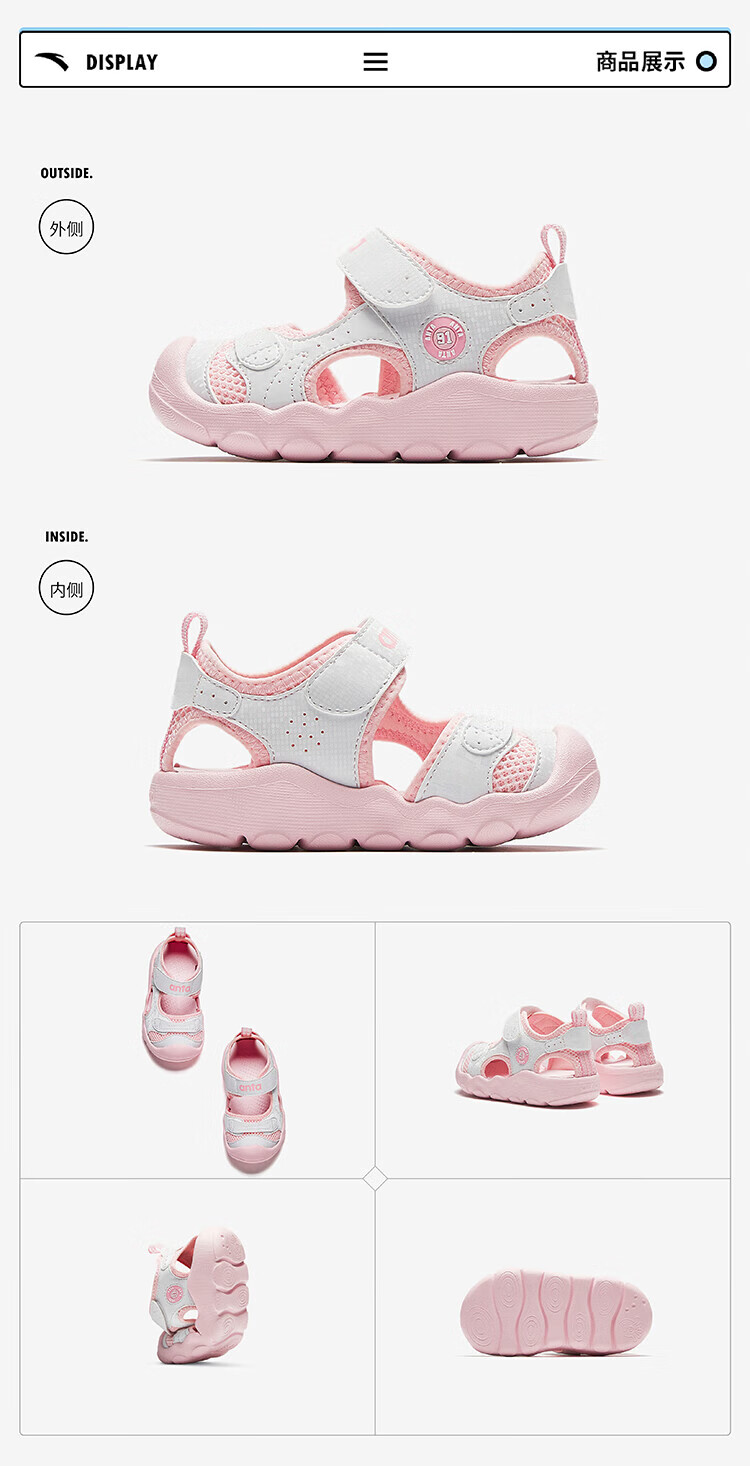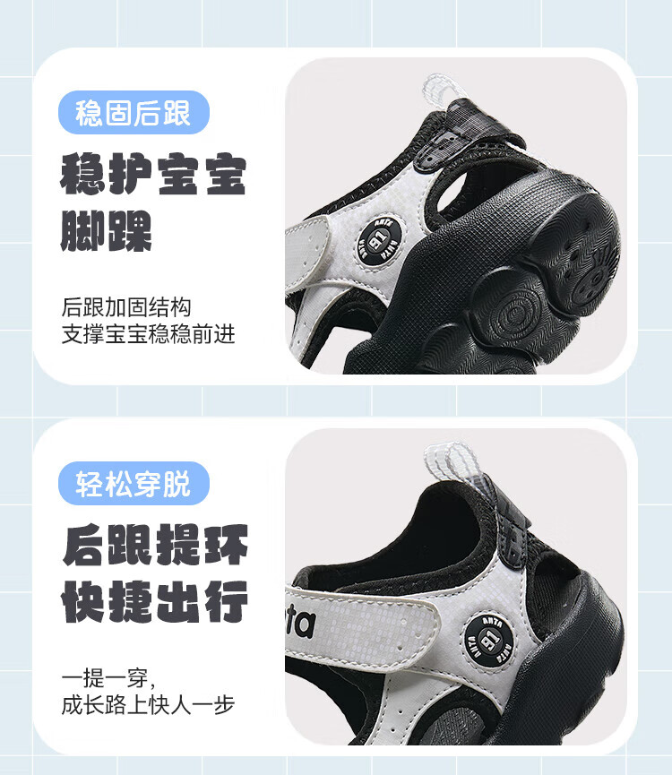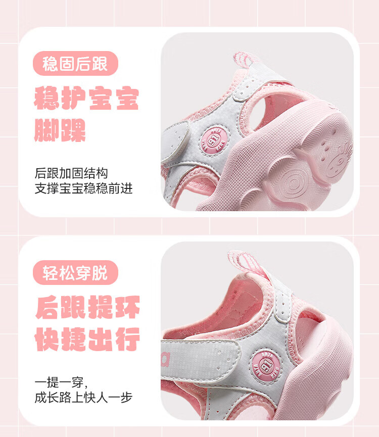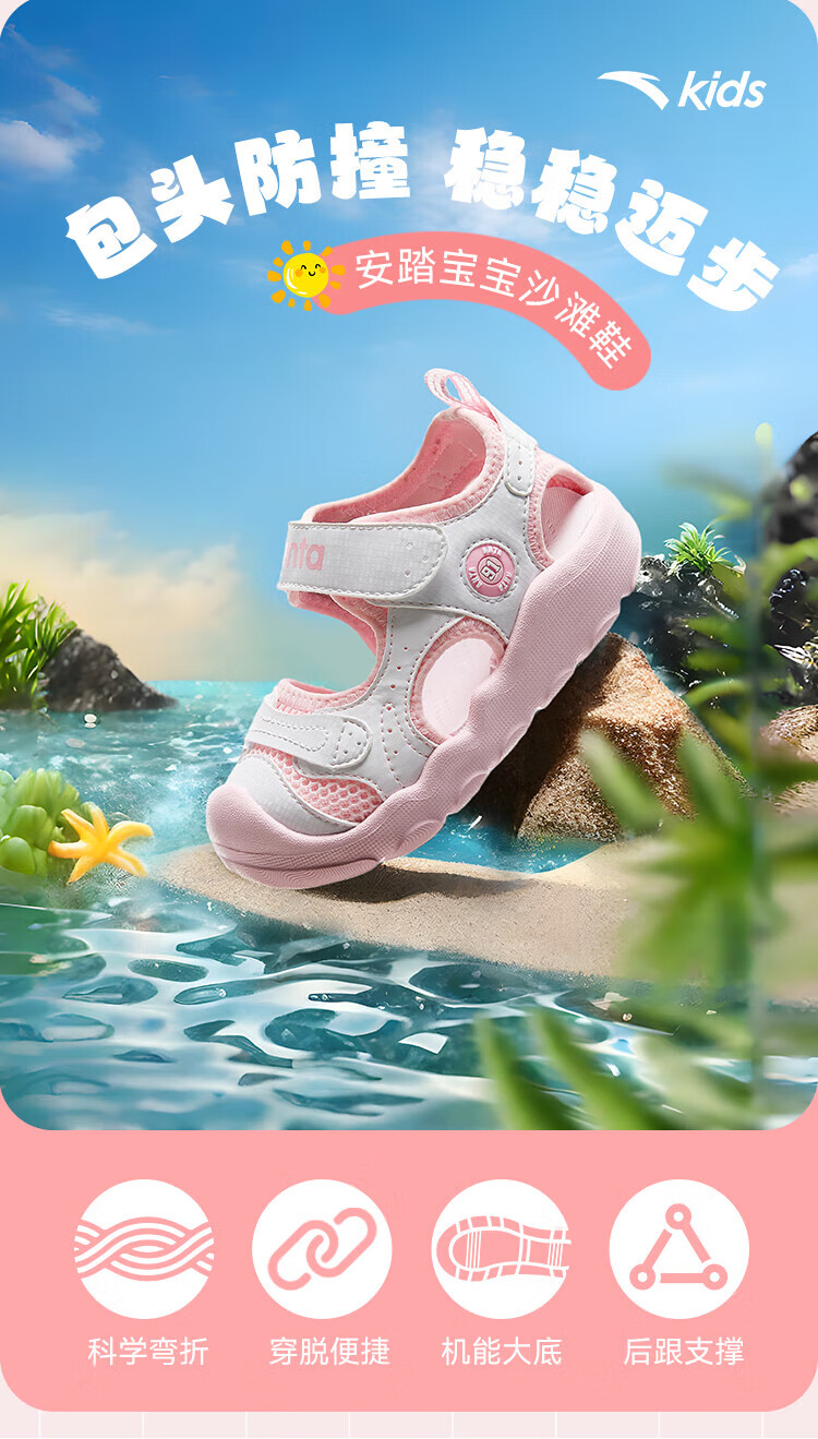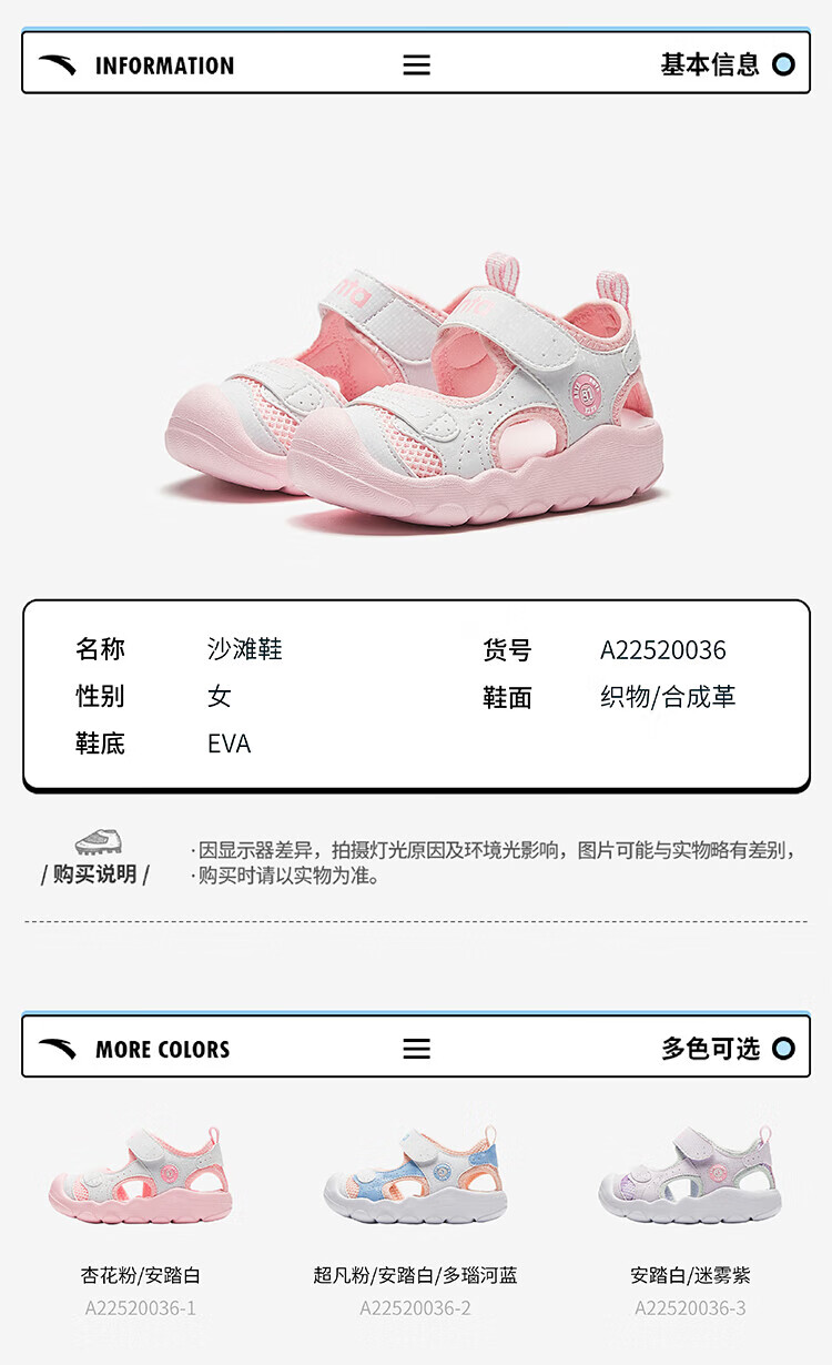 ANTA Children's Sandals Baby Shoes 2025 Summer New Velcro Toe Anti-collision Soft Elastic Beach Shoes Women Pink/ANTA White/Danube Blue-2 20