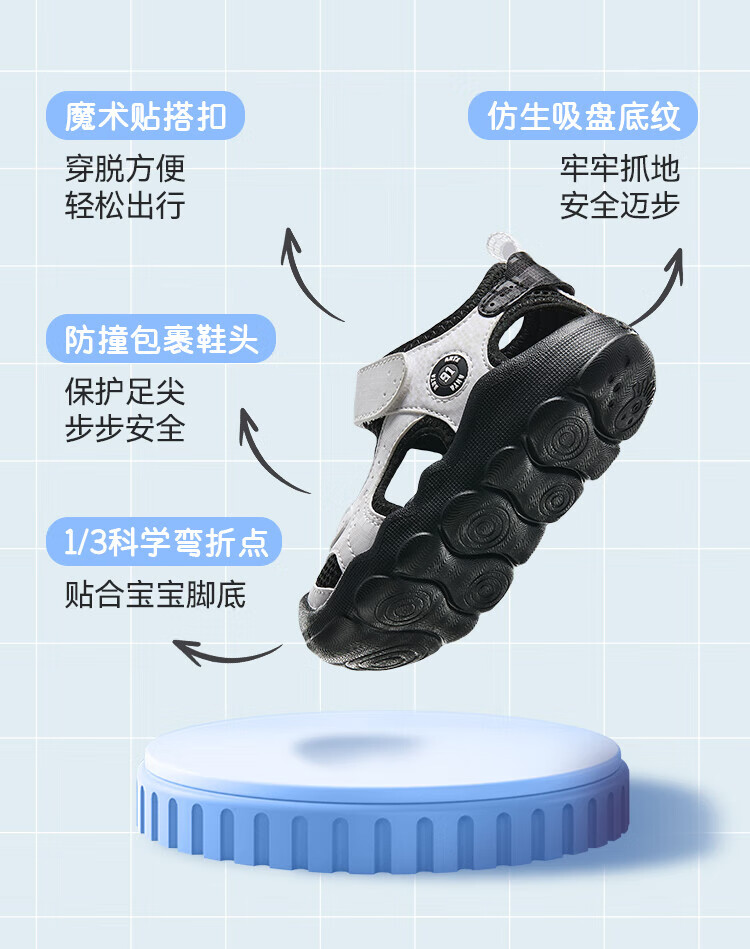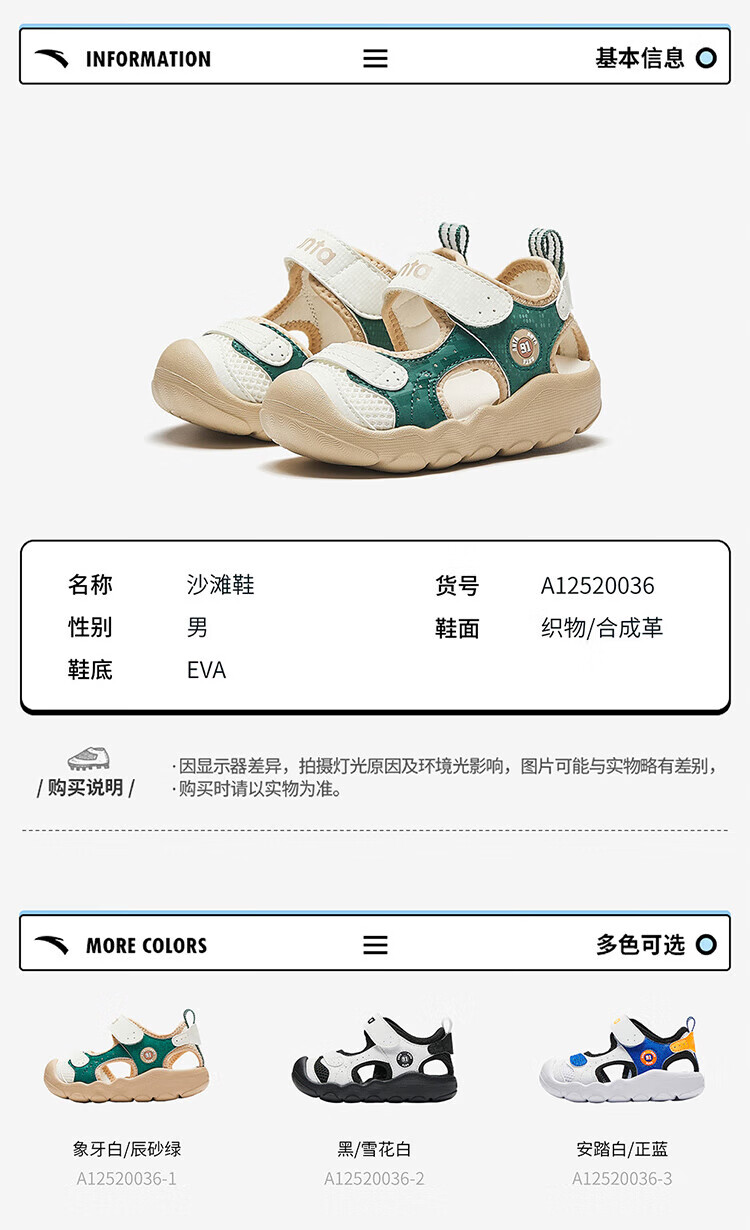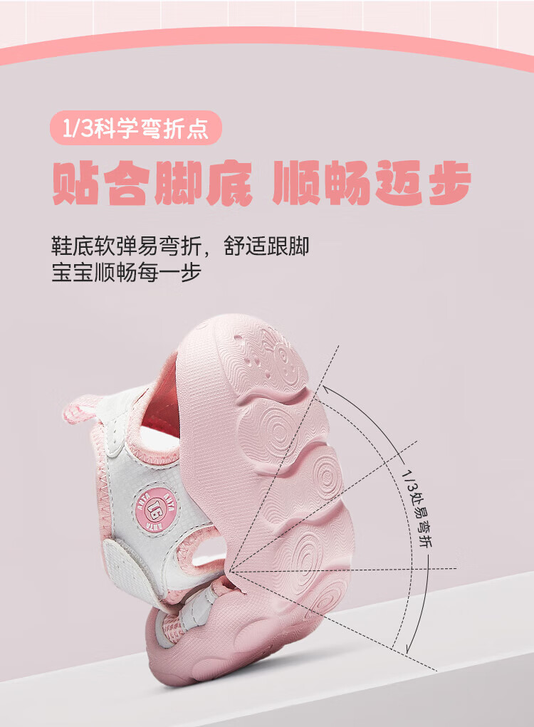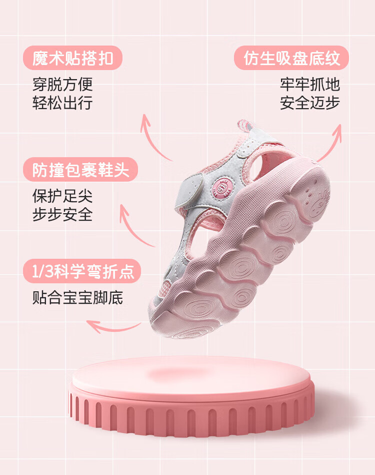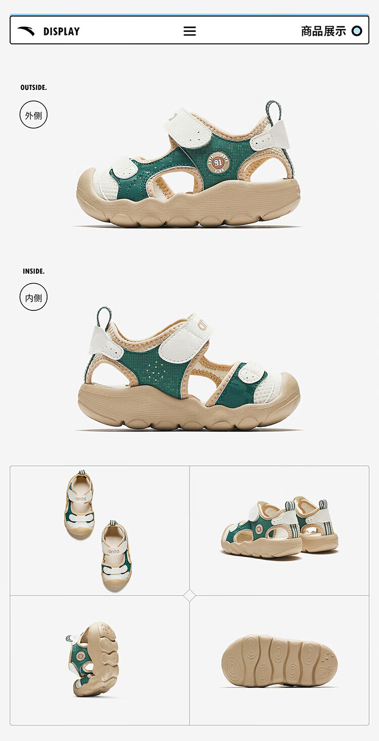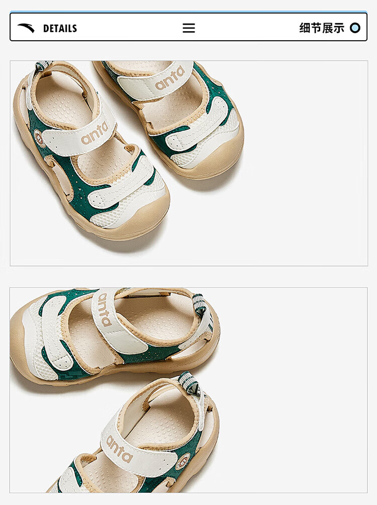 ANTA Children's Sandals Baby Shoes 2025 Summer New Velcro Toe Anti-collision Soft Elastic Beach Shoes Women Pink/ANTA White/Danube Blue-2 20