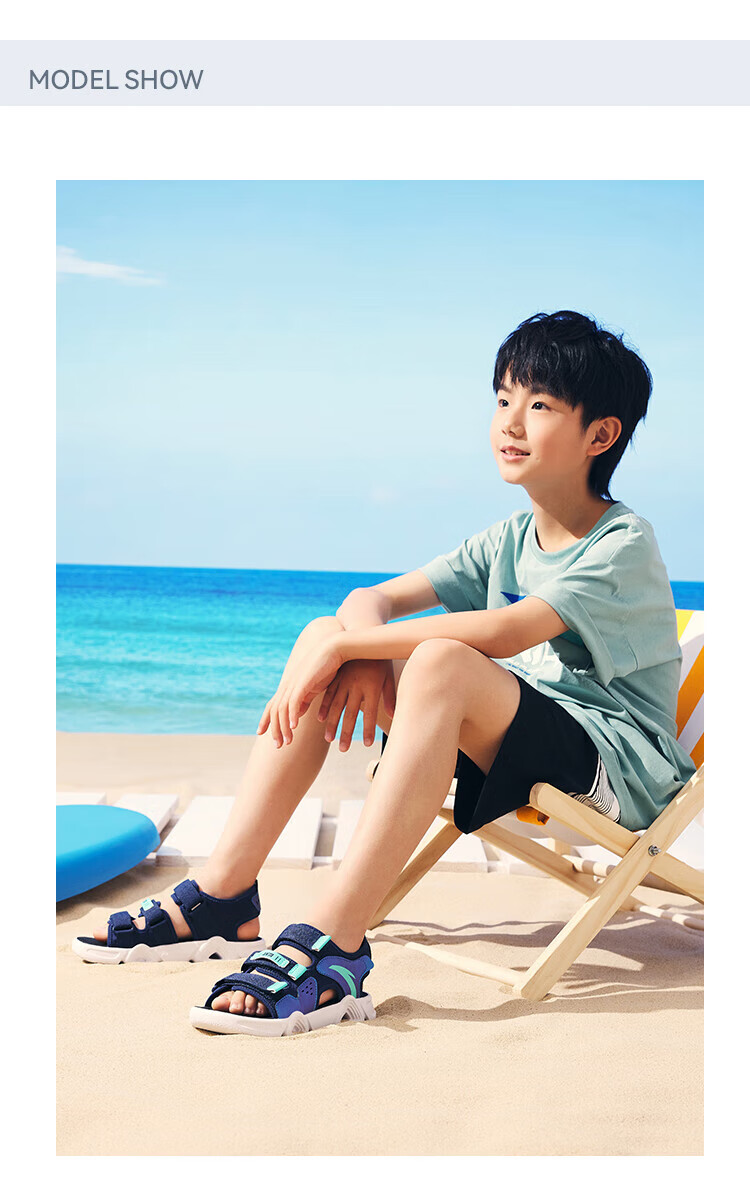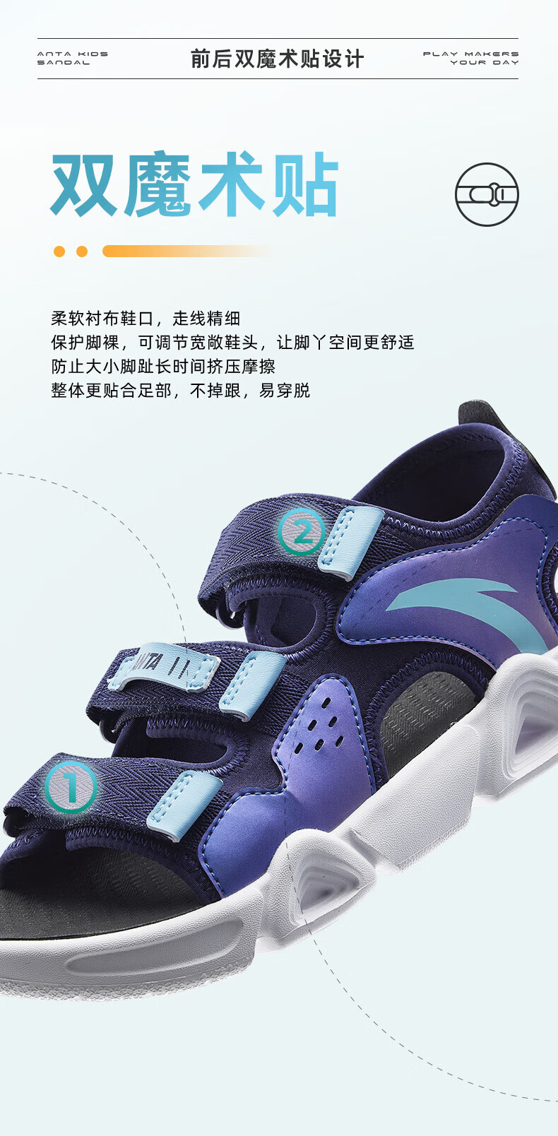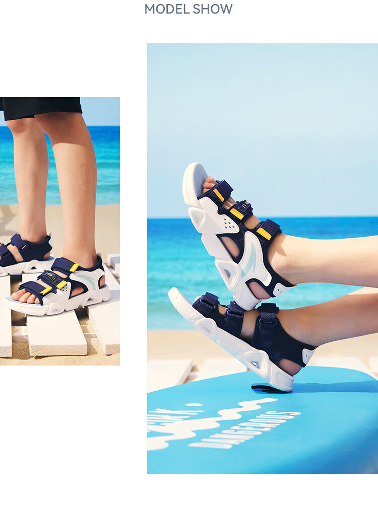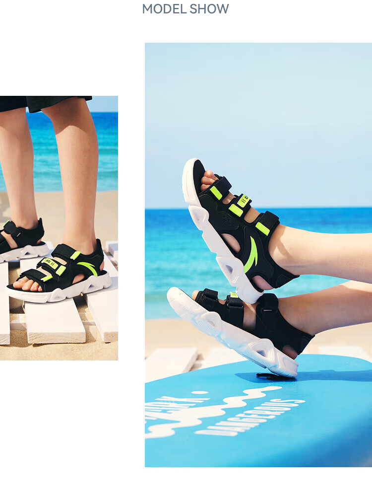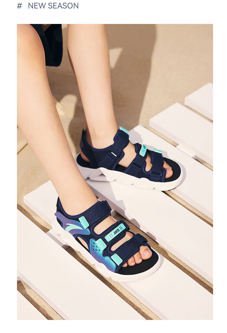 ANTA Children's Sandals Men's Beach Shoes 2025 Summer New Breathable Open Toe Comfortable Arch Sandals Men's Blue/Fluorescent Aqua 6962I-9 30