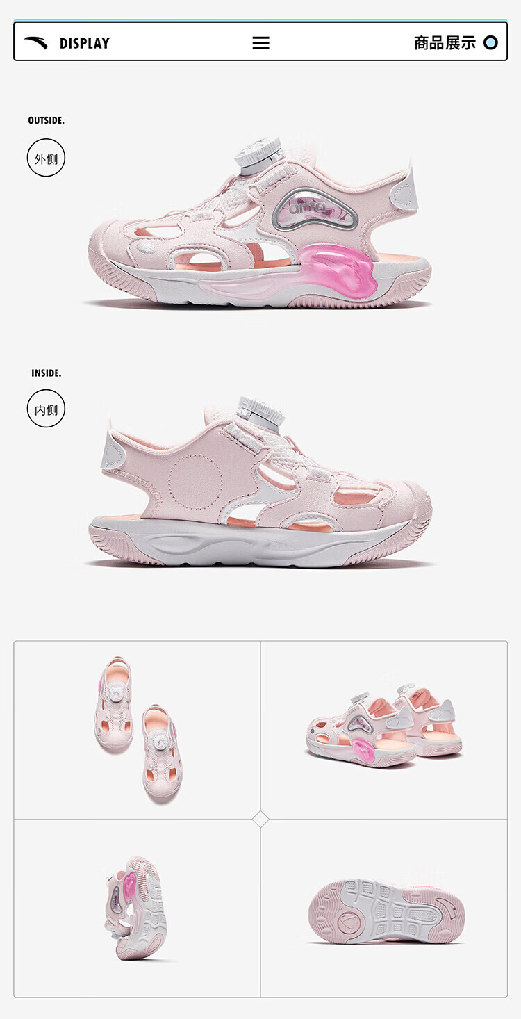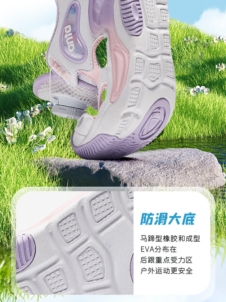 ANTA Children's Sandals Girls' Shoes 2025 Summer New Arrival Knob Buckle Outdoor Baotou Anti-collision Jellyfish Beach Shoes ANTA White/Pearl Pink/Silver-1 30