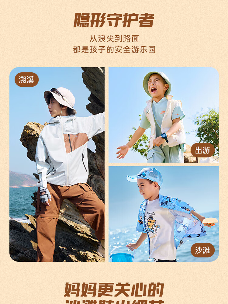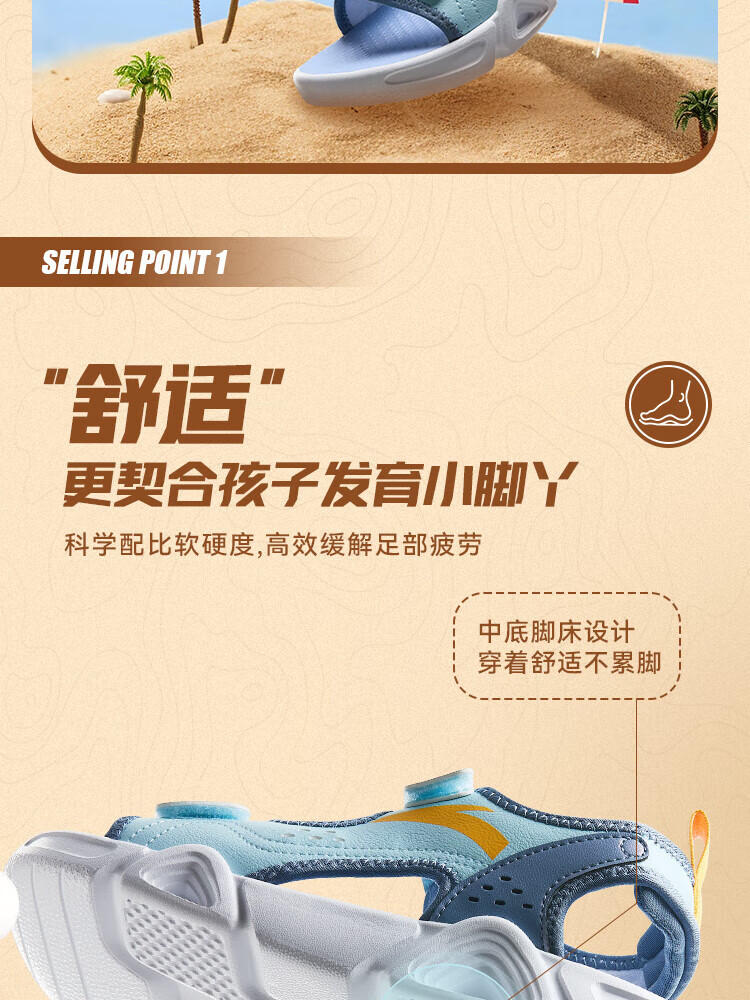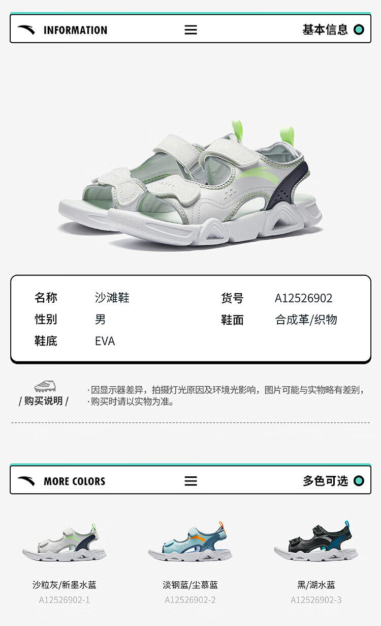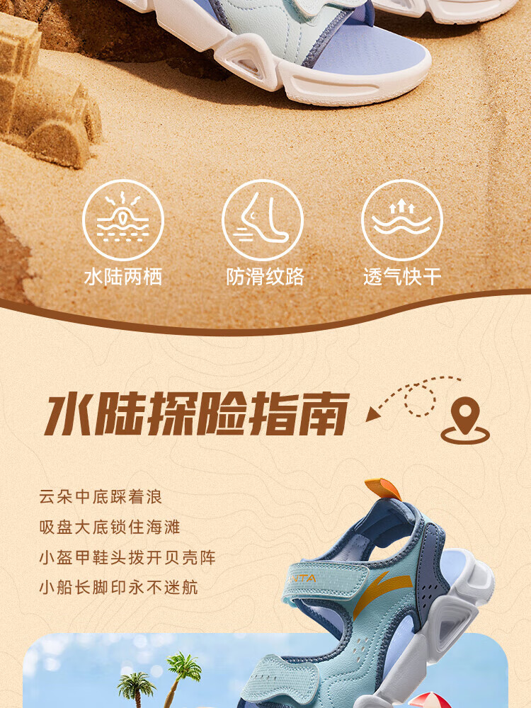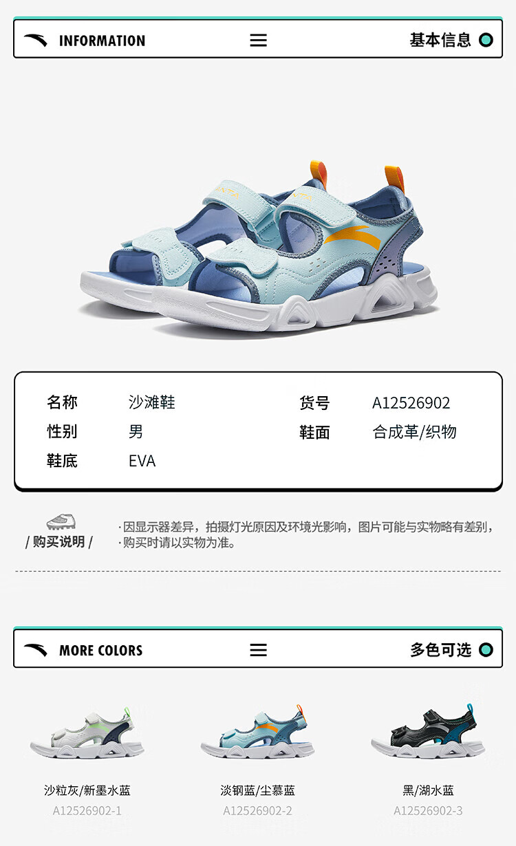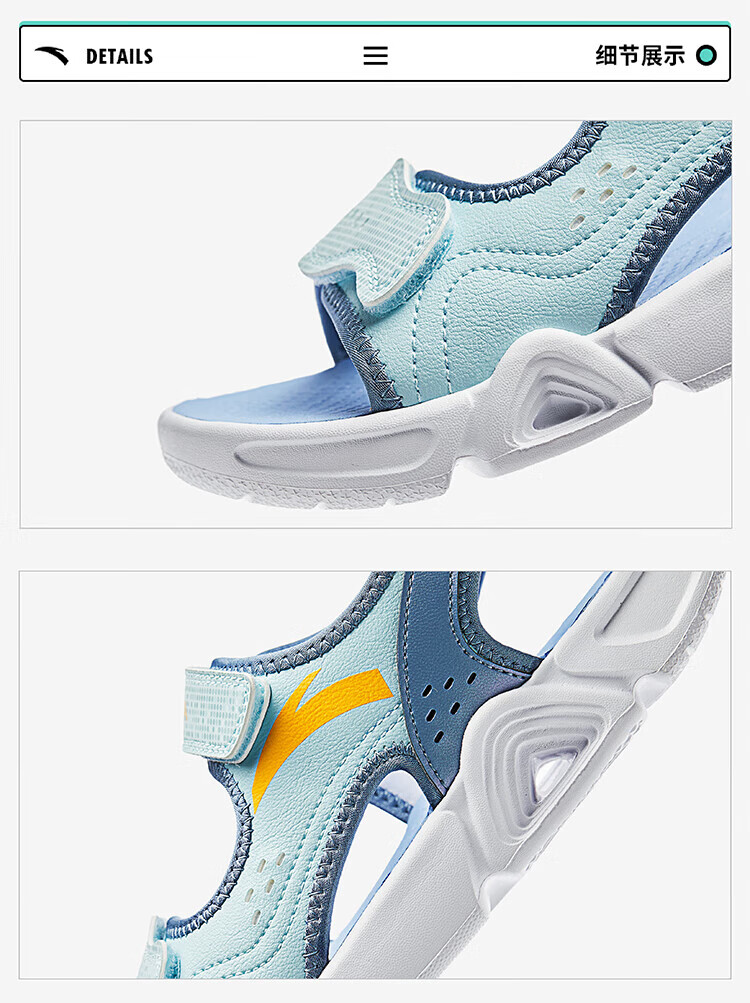 ANTA Children's Sandals Men's Big Children's Shoes 2025 Summer New Velcro Outdoor Open-Toe Soft Elastic Beach Shoes Black/Lake Blue-3 40
