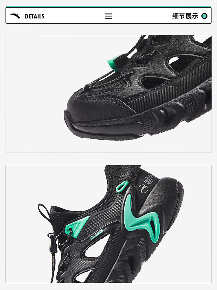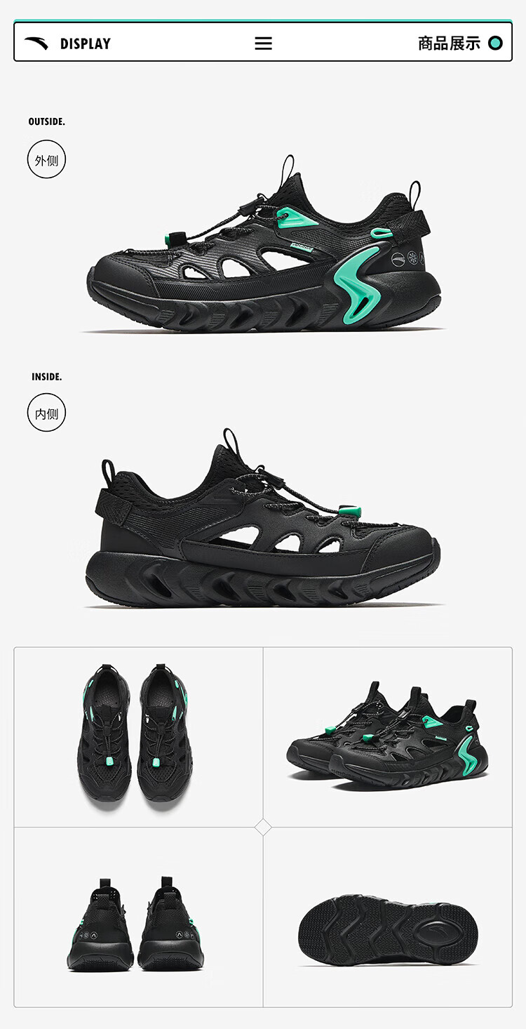 ANTA Children's Sandals Men's Big Children's Shoes 2025 Summer New Kawagoe Outdoor River Tracing Shoes Soft Elastic Breathable Beach Shoes Black-2 40