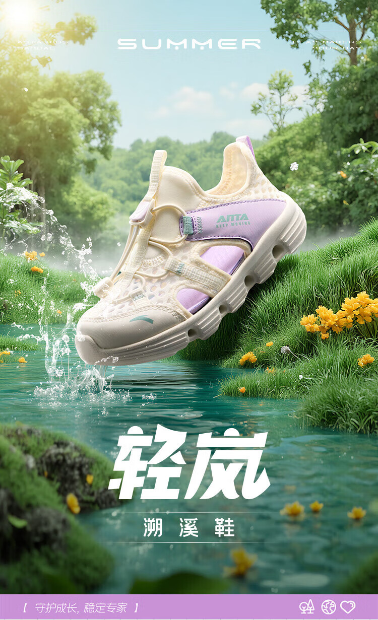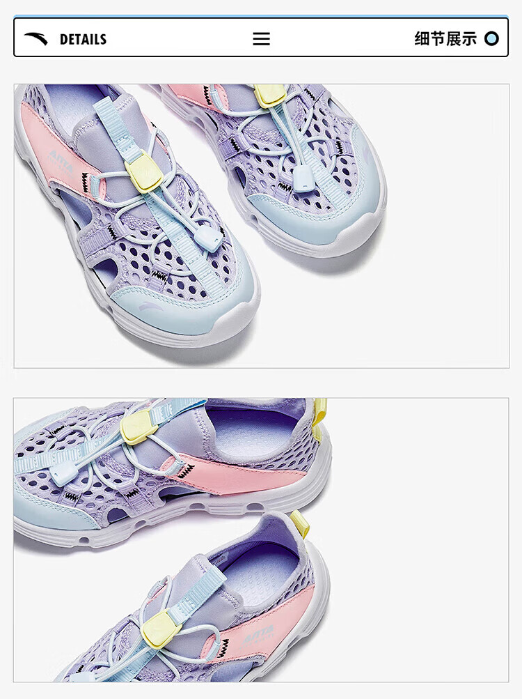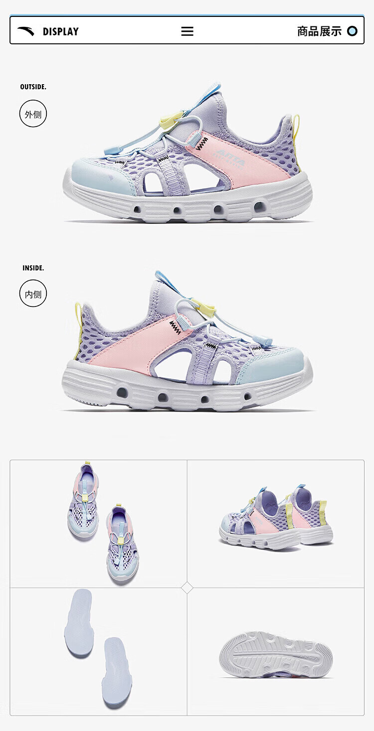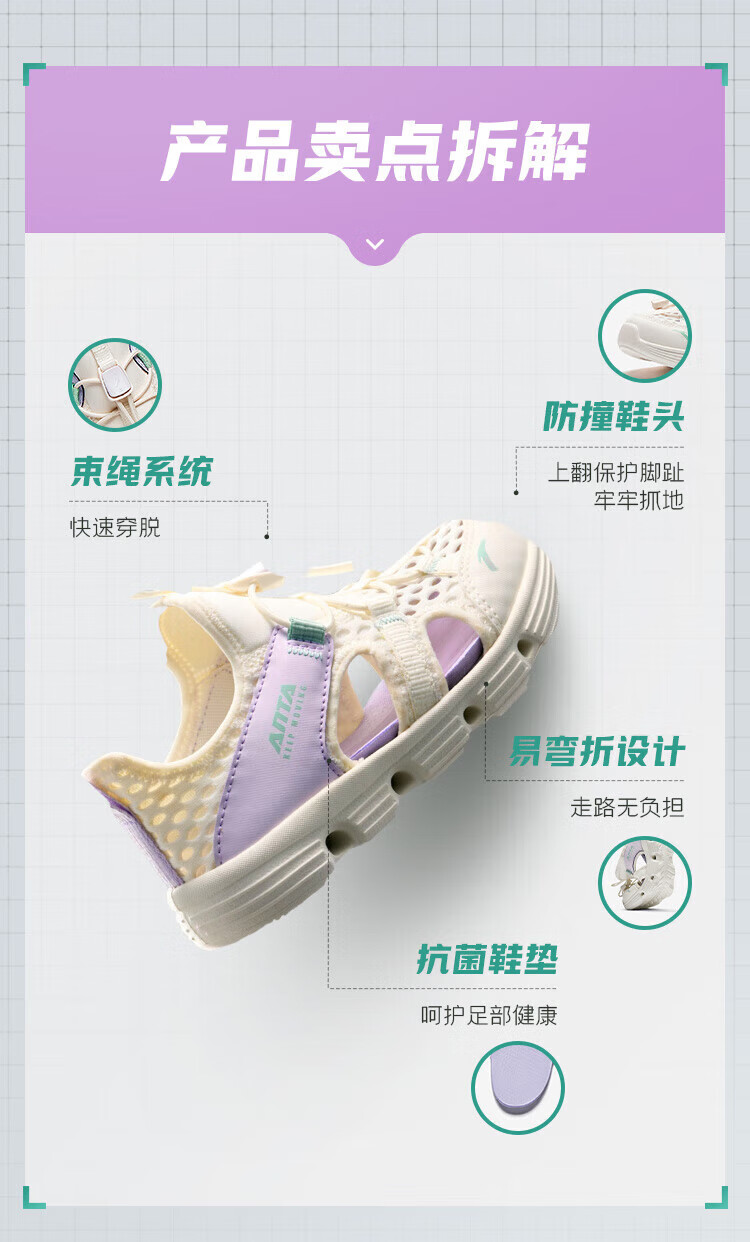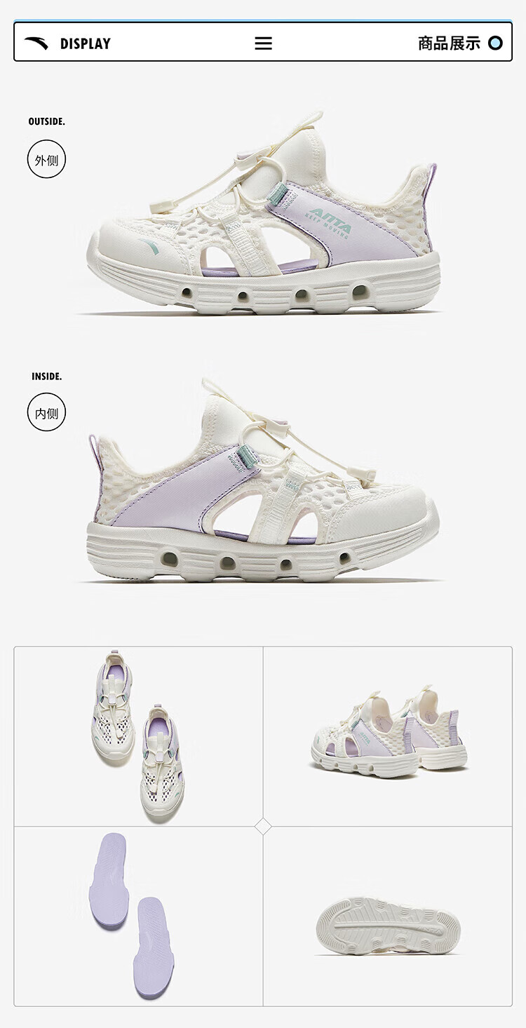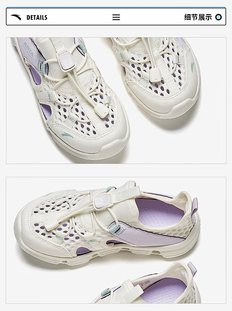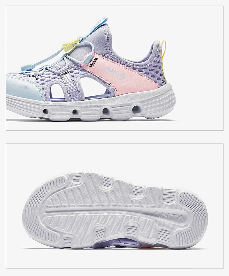 ANTA Children's Sandals Girls' Shoes Children's 2026 Summer New Baotou Outdoor Amphibious River Tracing Shoes Beach Shoes Ivory White/Mist Purple-4 31