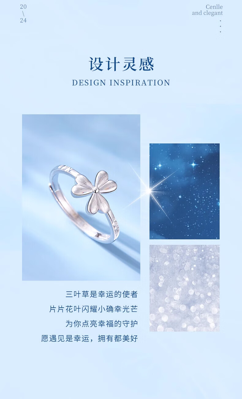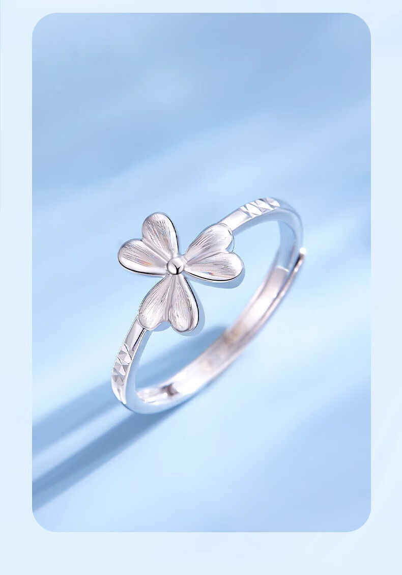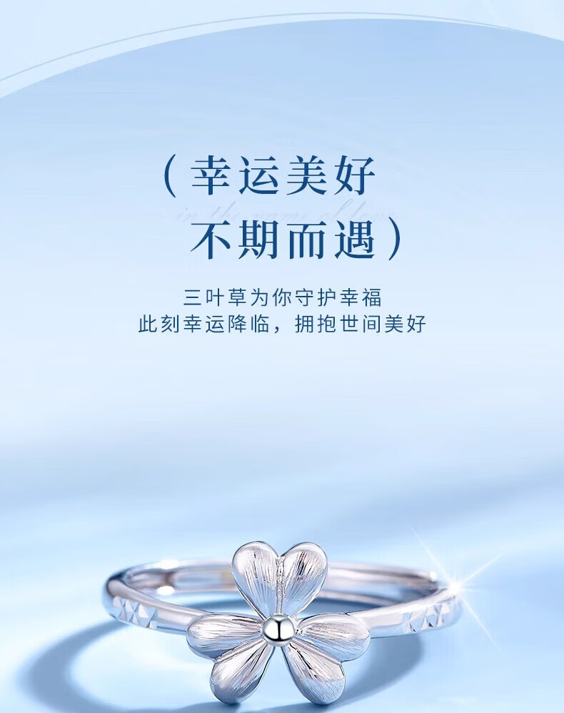 Lao Fengxiang PT950 Clover platinum ring for women new live platinum Valentine's Day birthday gift for girlfriend and wife Clover platinum ring about 2.9g
