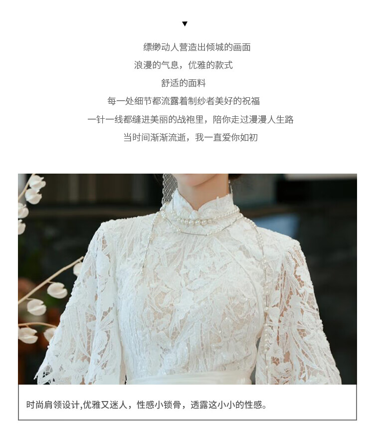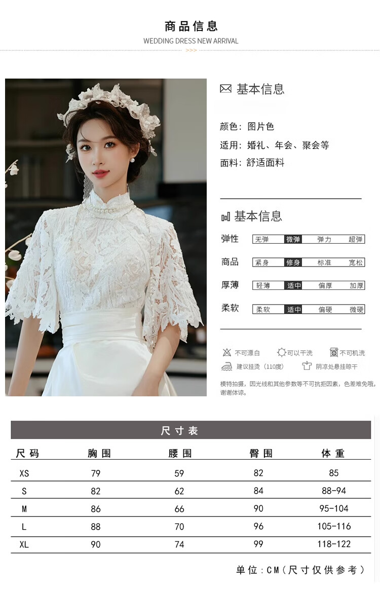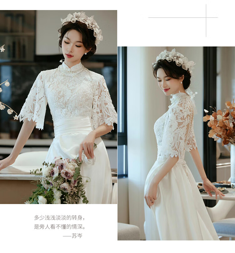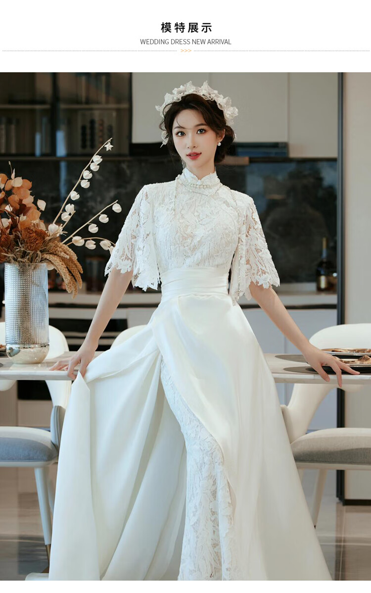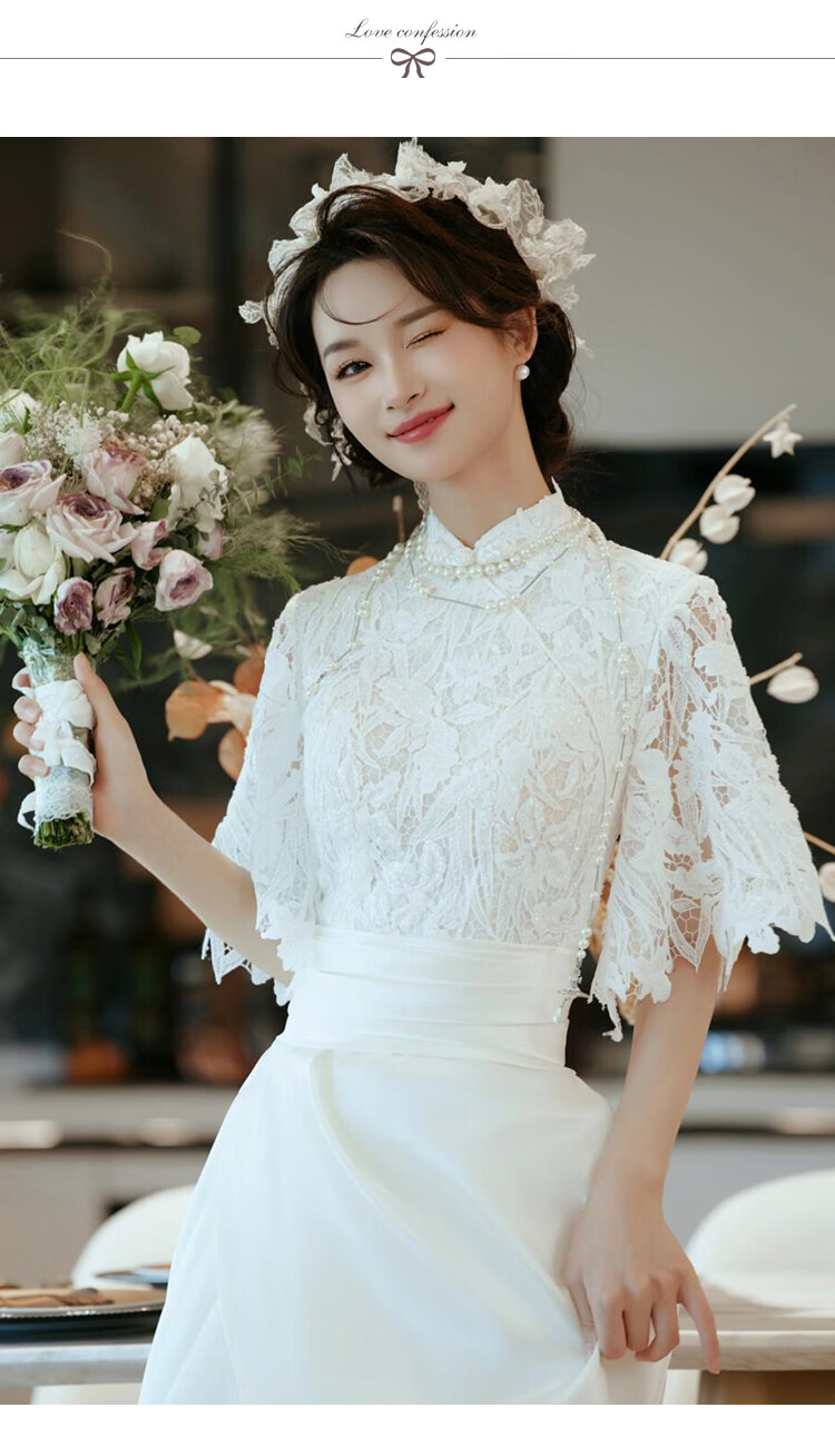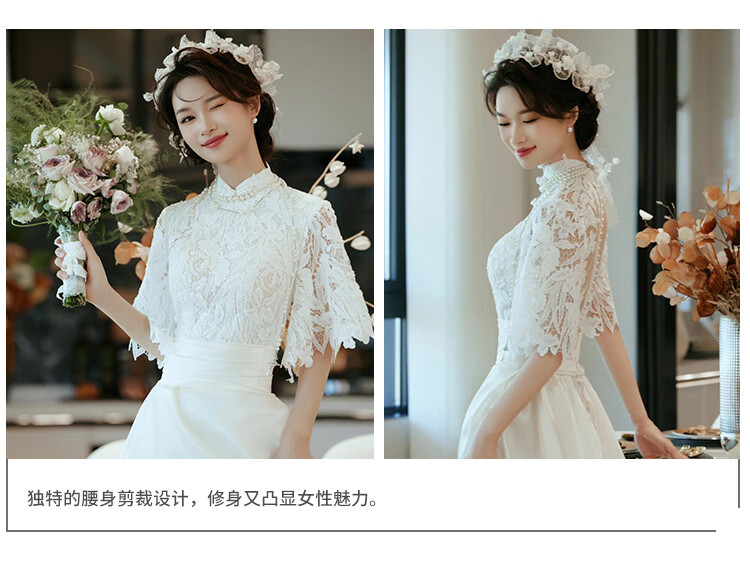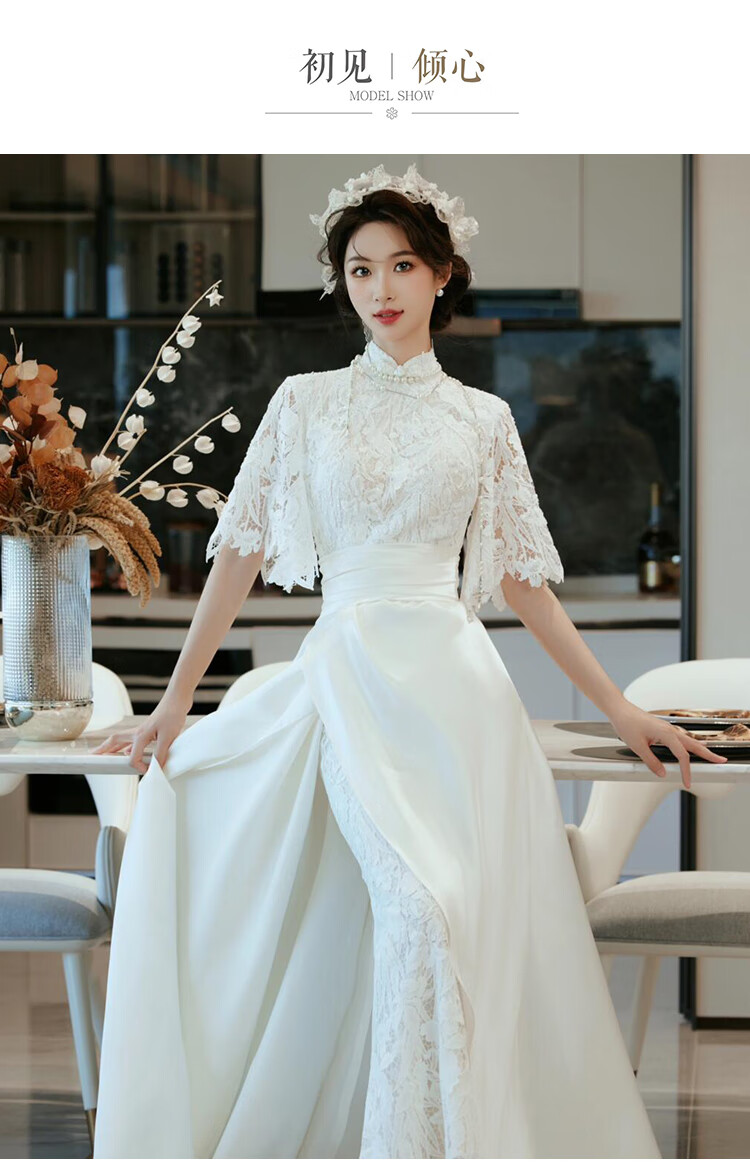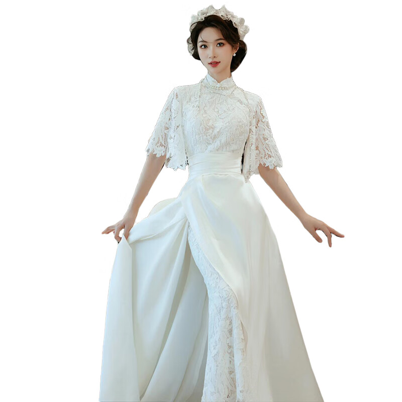 Seasonal cheongsam wedding dress, new Chinese style lace evening dress, niche satin retro improved bridal temperament, engagement and welcome out, white XL