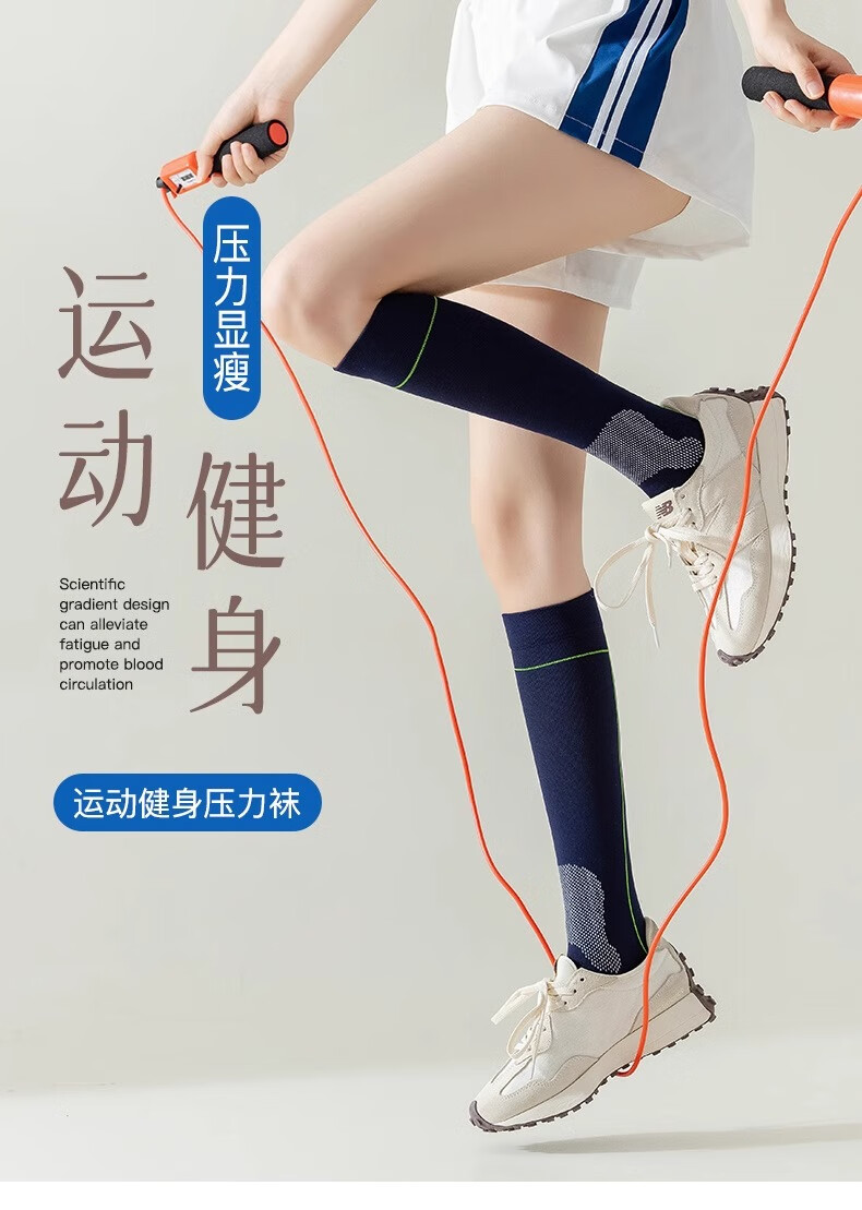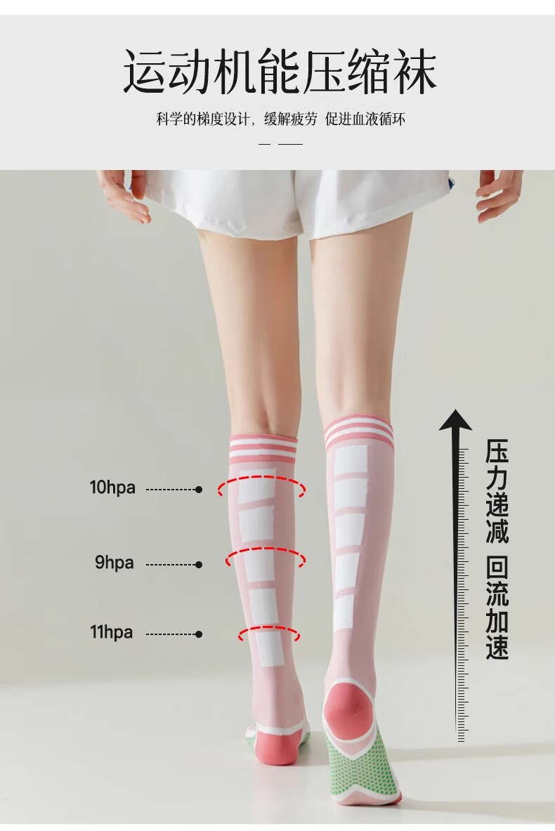 Ni Light Pressure Sports Socks Women's Fitness Medium Socks Professional Running Jumping Rope Long Compression Socks Yoga Slim Leg Calf Socks Navy + Pink + Green One Size