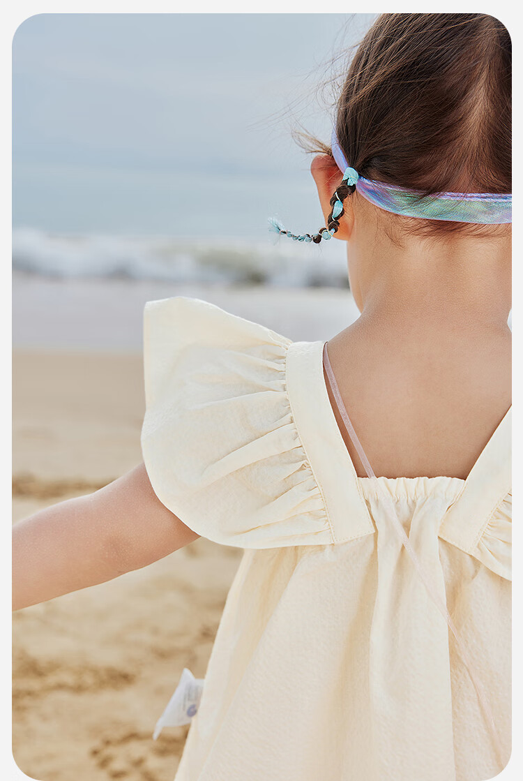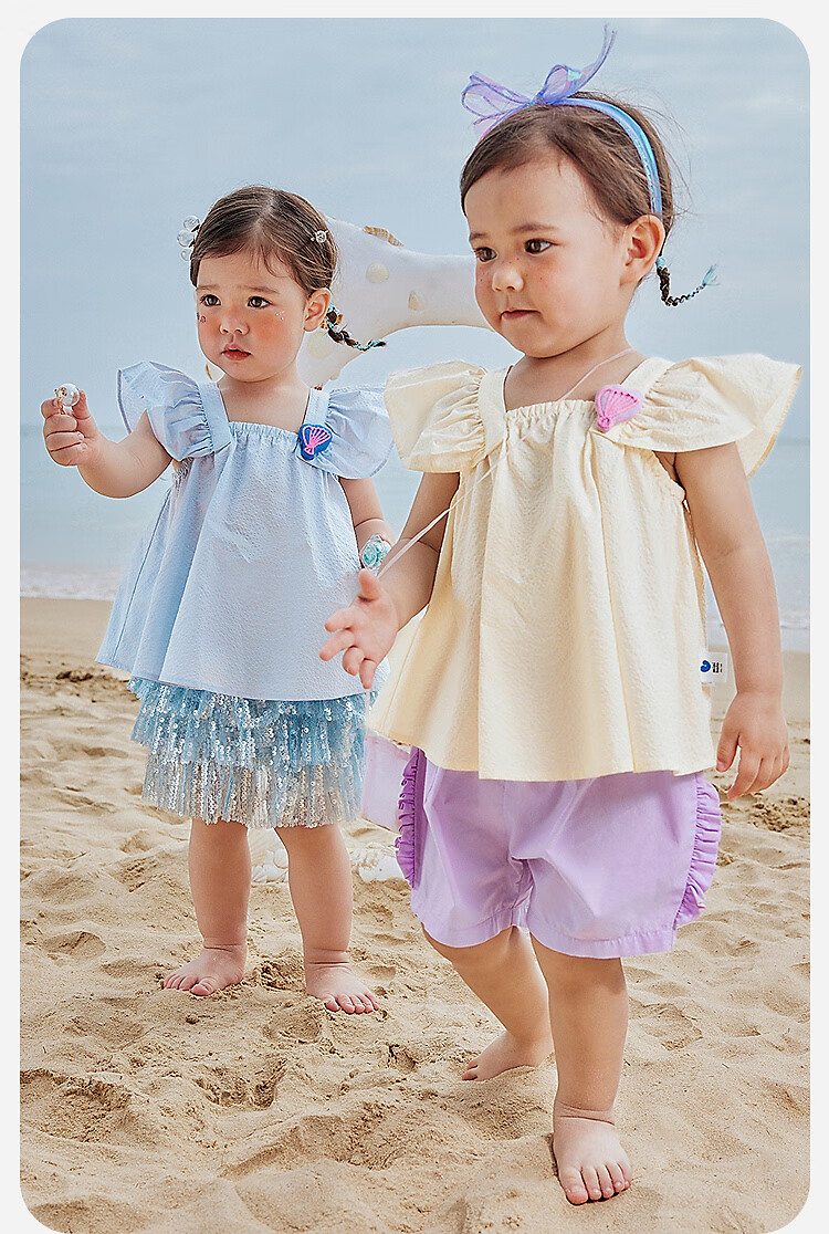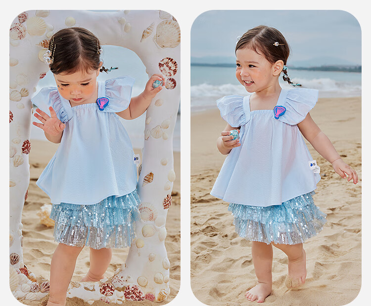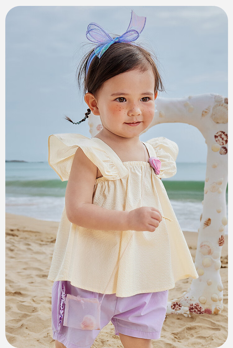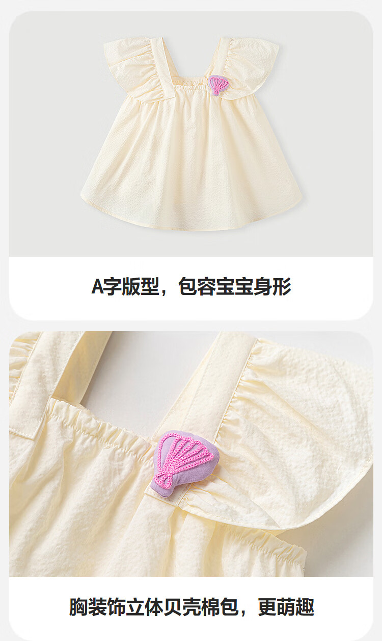 Mini Balabala, the same style in the mall, girls' short-sleeved shirt, summer baby square neck flying sleeve sweet top, milk white 10501 80