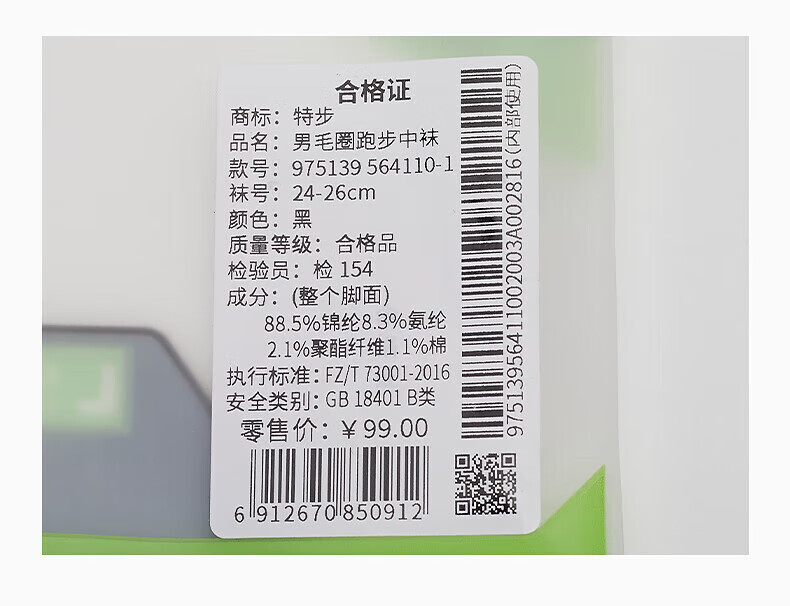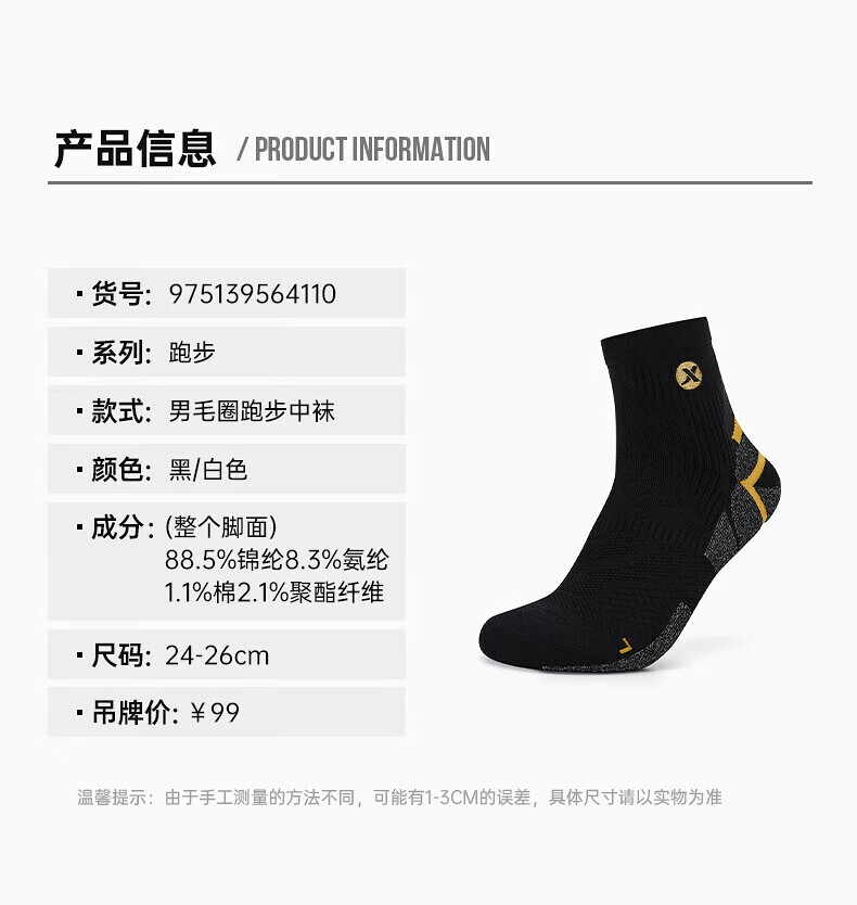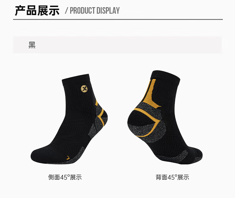 XTEP store same style fast socks for men 2025 spring new terry mid-calf sports running socks black one size