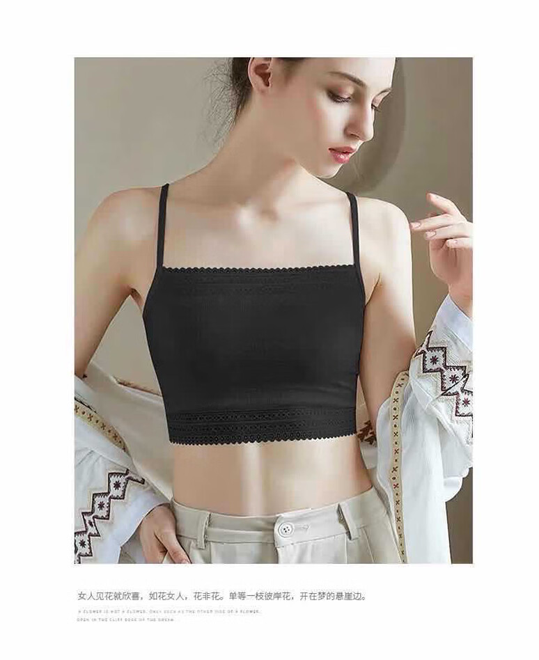 Yunshun Lace Tube Top Camisole Anti-exposure Breast Covering Underwear Women's Wrapped Breast Beautiful Back Bottoming Shirt Inside Thin Summer Anti-Exposed Tube Top Camisole Black XL Recommended 95-120Jin Jin is equal to 0.5 kg