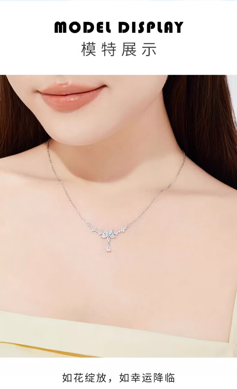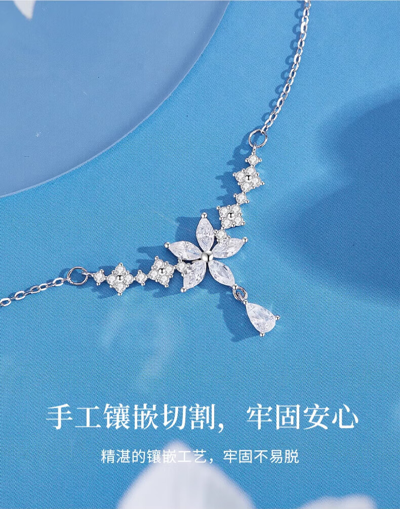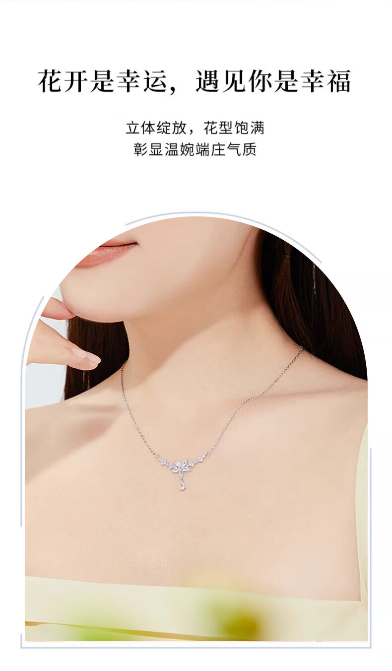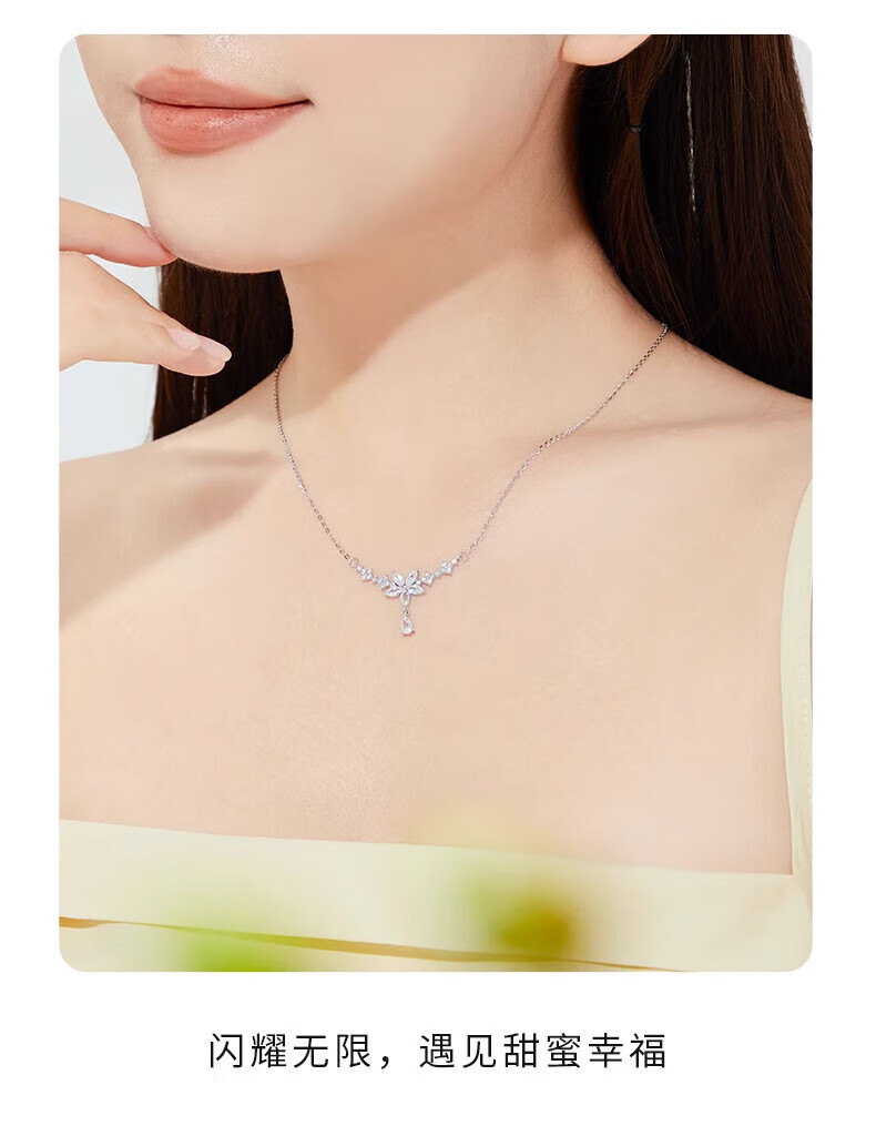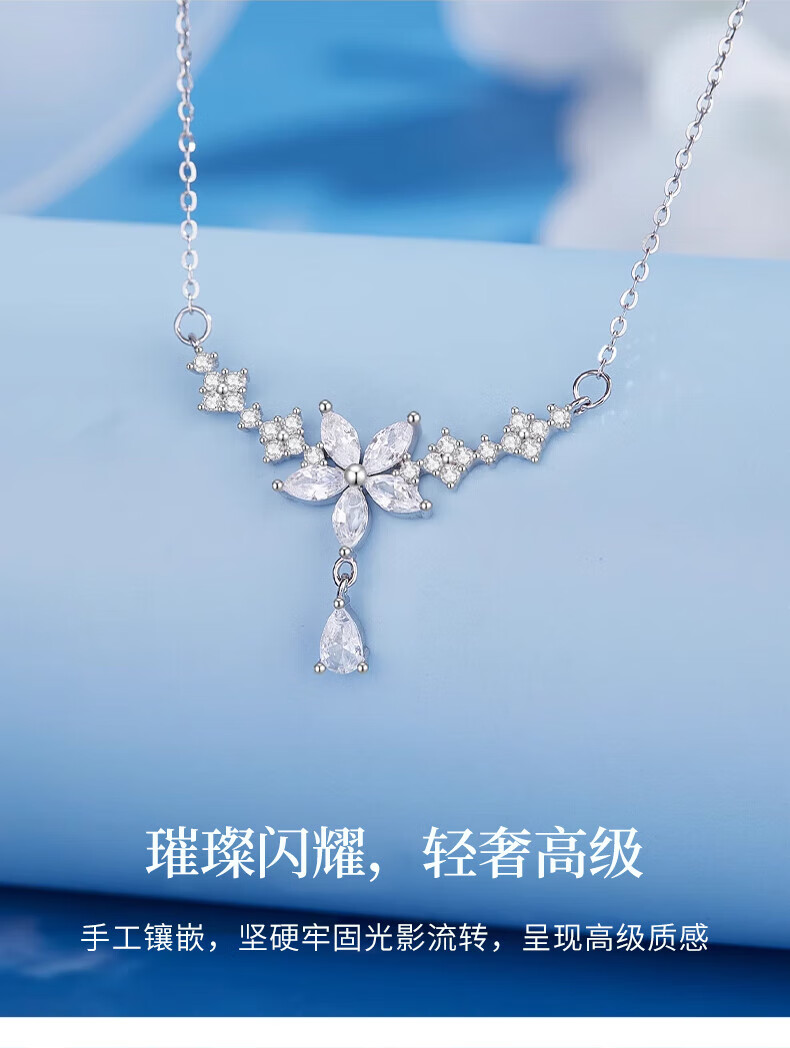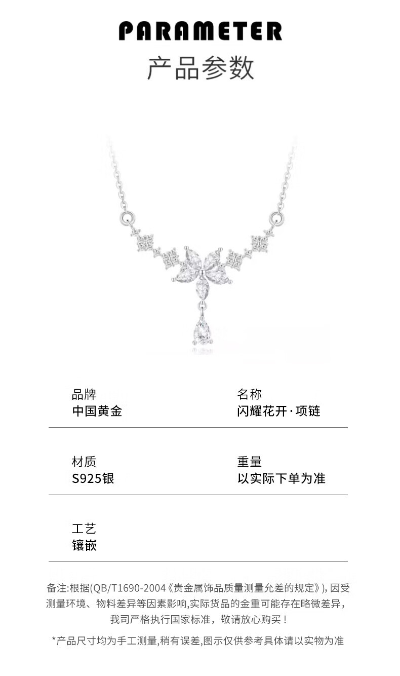 CHINA GOLD 925 silver necklace for women 2025 new high-end light luxury small Valentine's Day birthday gift for girlfriend and wife Shining flower necklace Zhongjin gift box