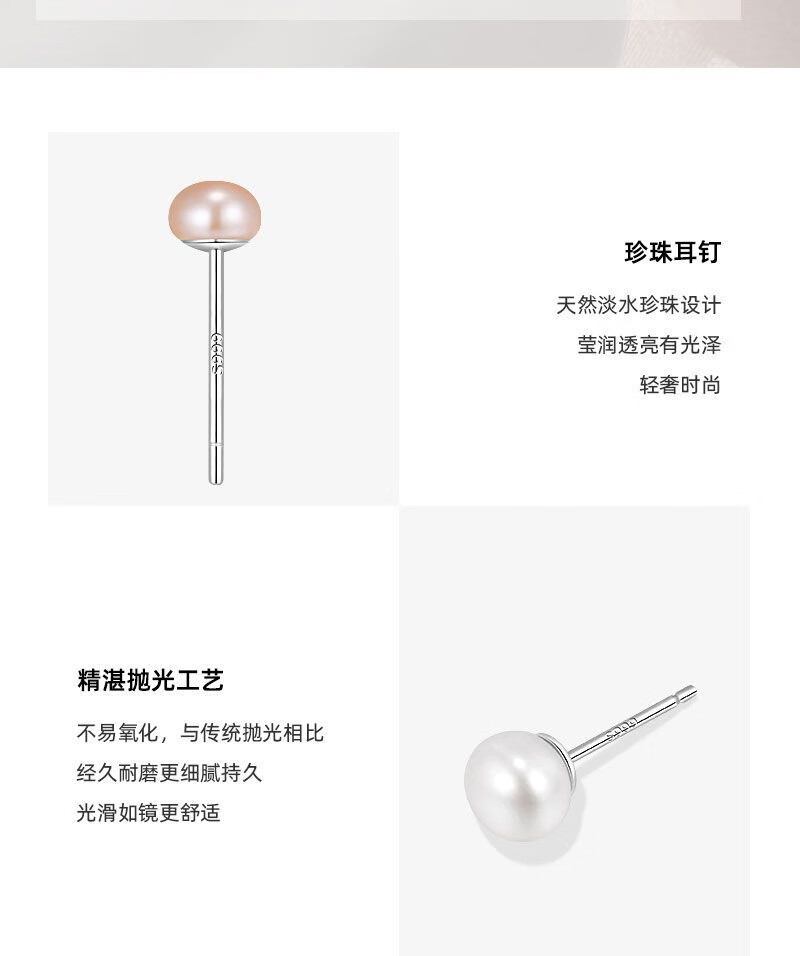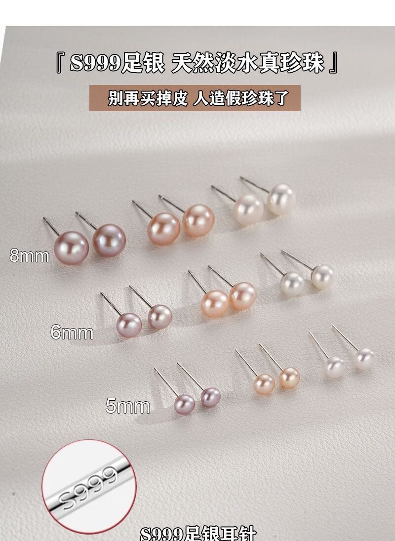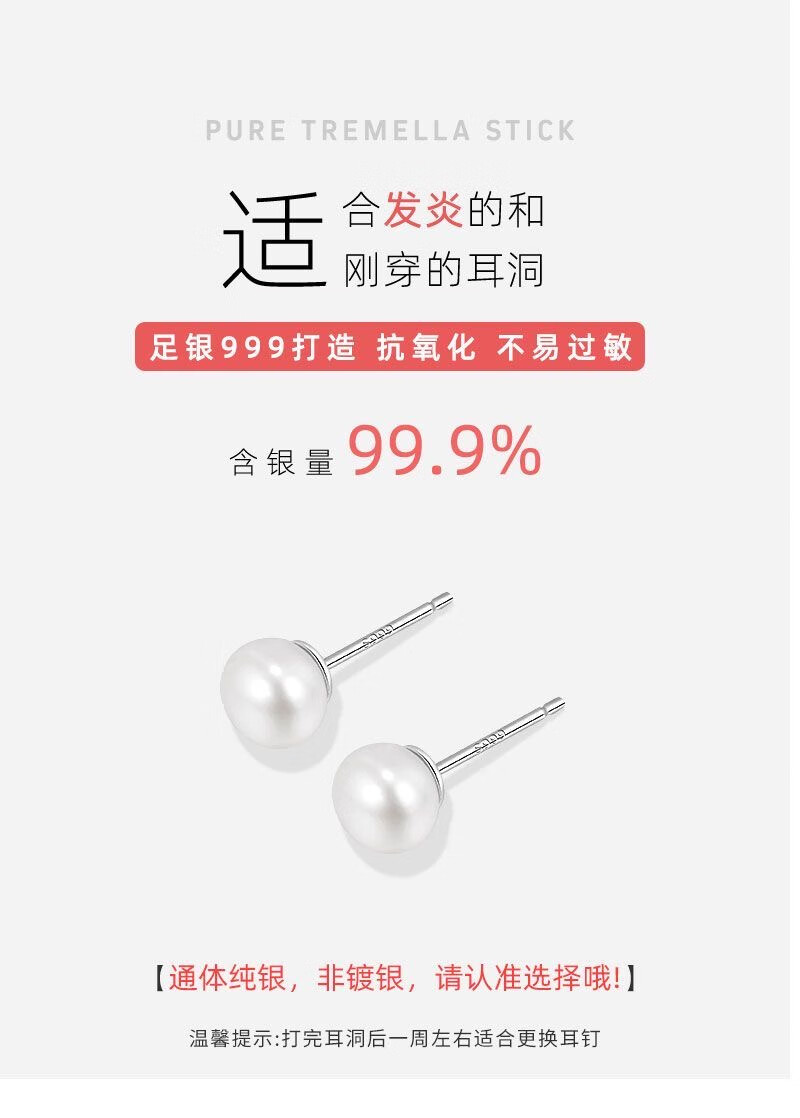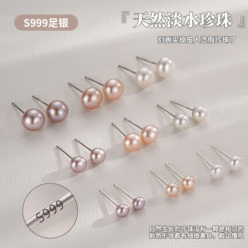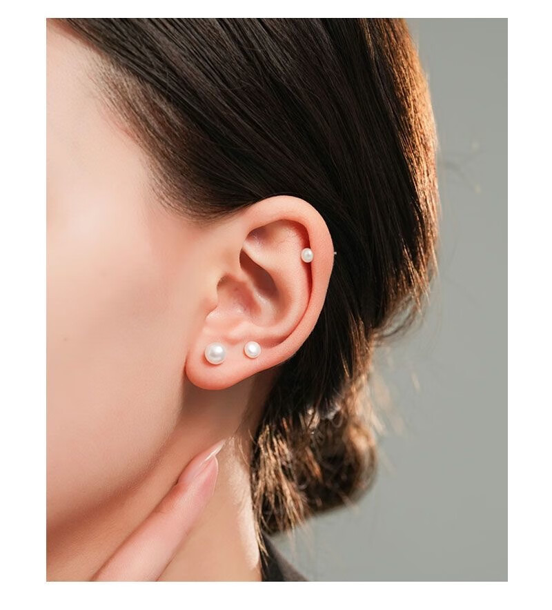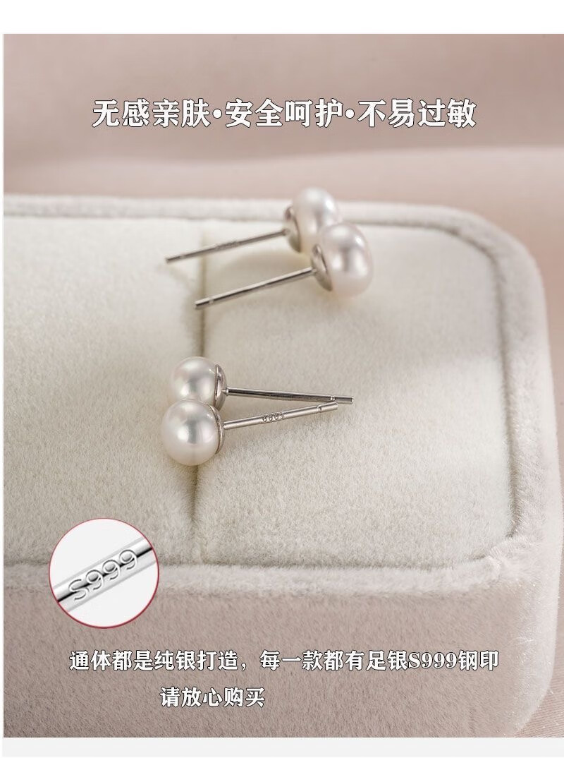 Natural freshwater real pearl earrings S999 sterling silver earrings, earrings for pierced ears, high-end, exquisite and versatile white natural freshwater pearls 4mm pair
