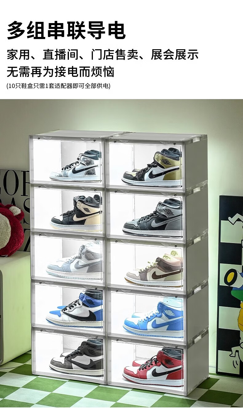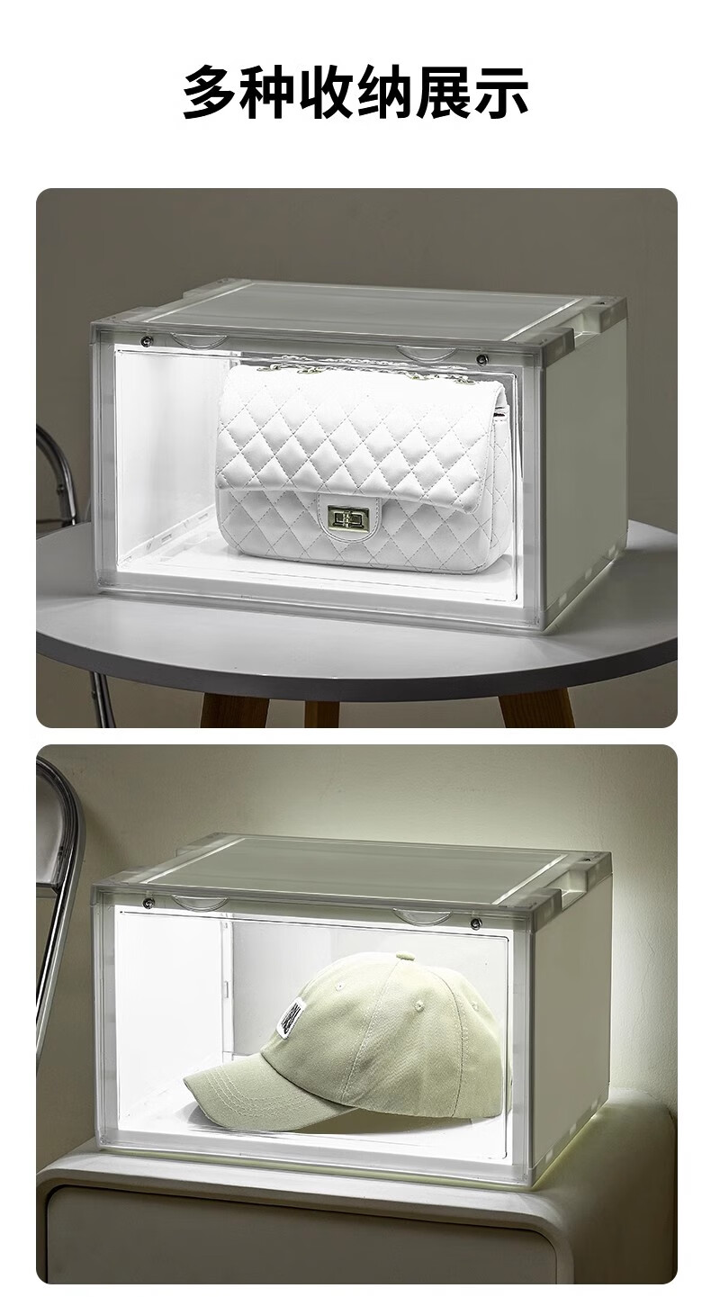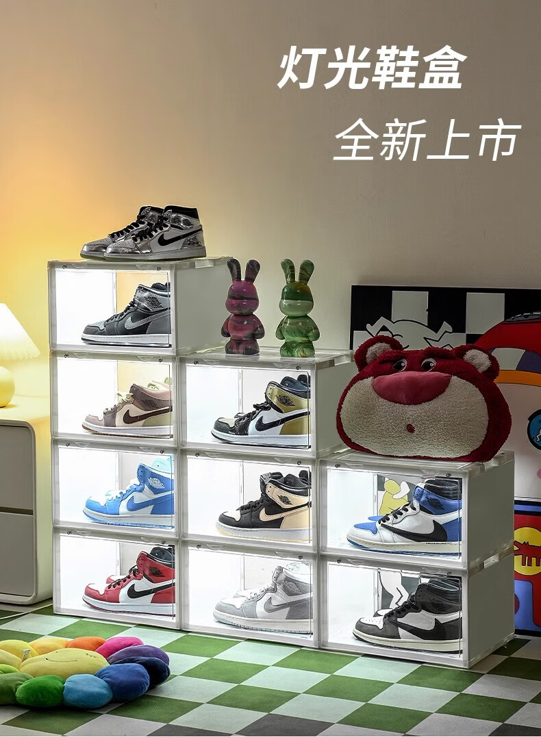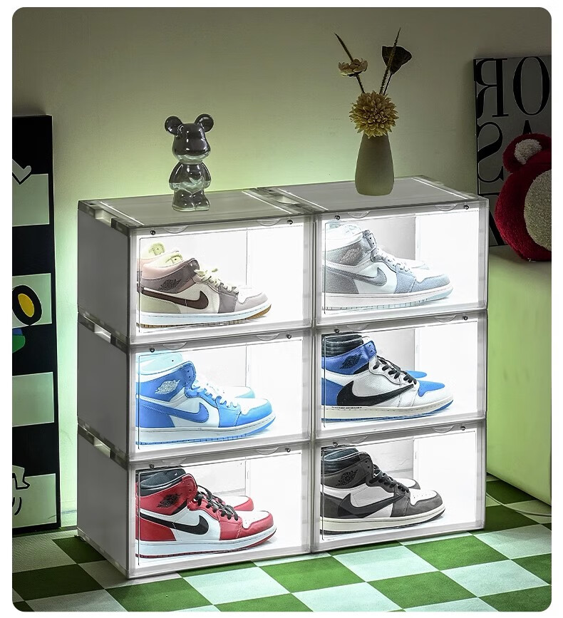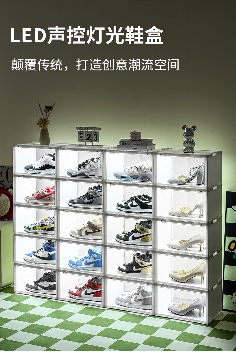JD Logistics Transparent Shoe Box LED Voice-activated Luminous Acrylic Transparent Magnetic Sneaker Storage Display Box LED Side Door Model 1 Pack
