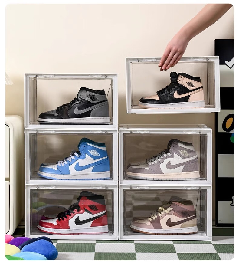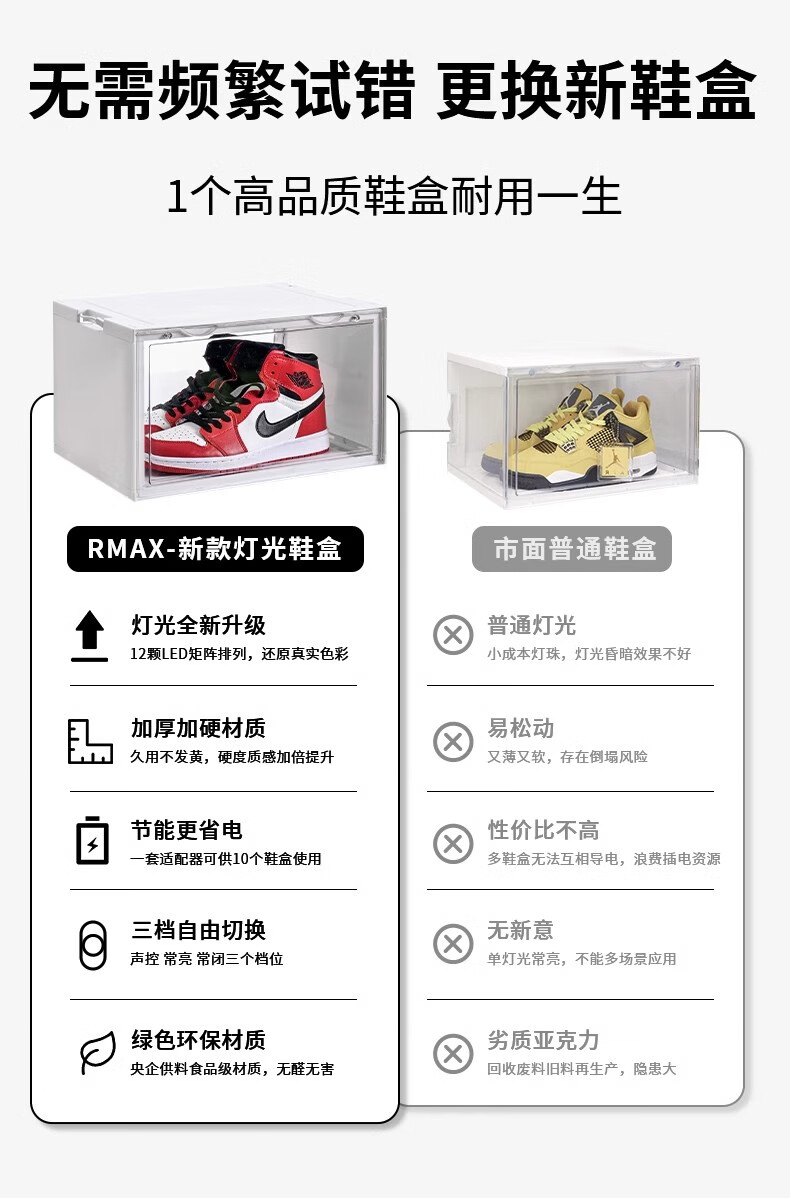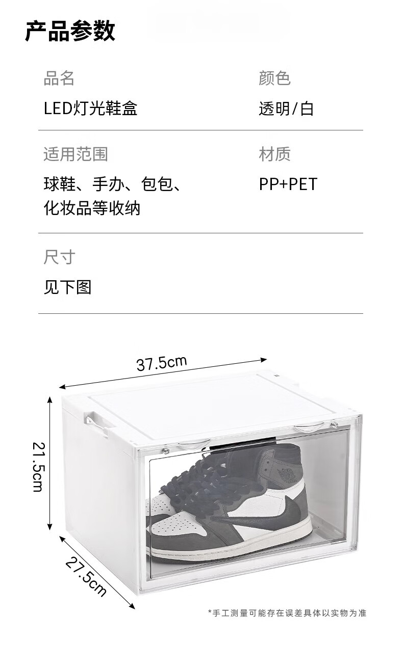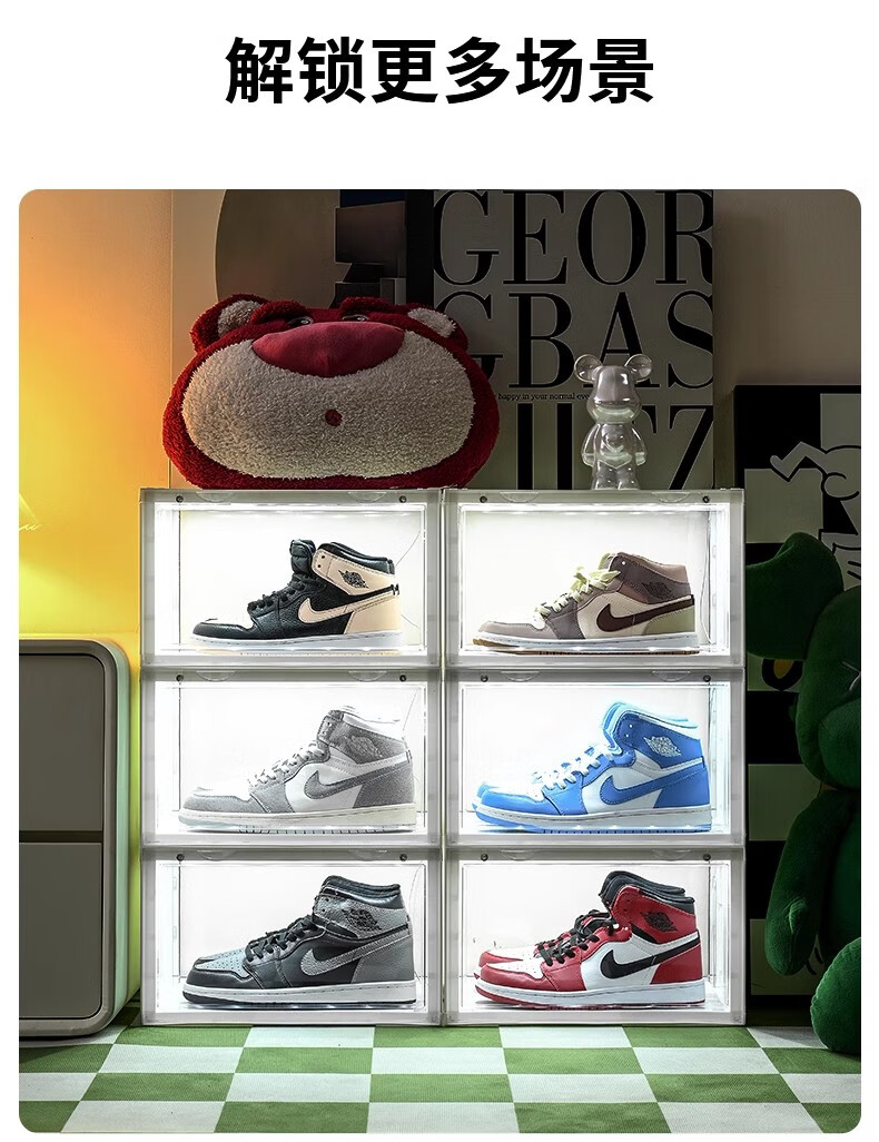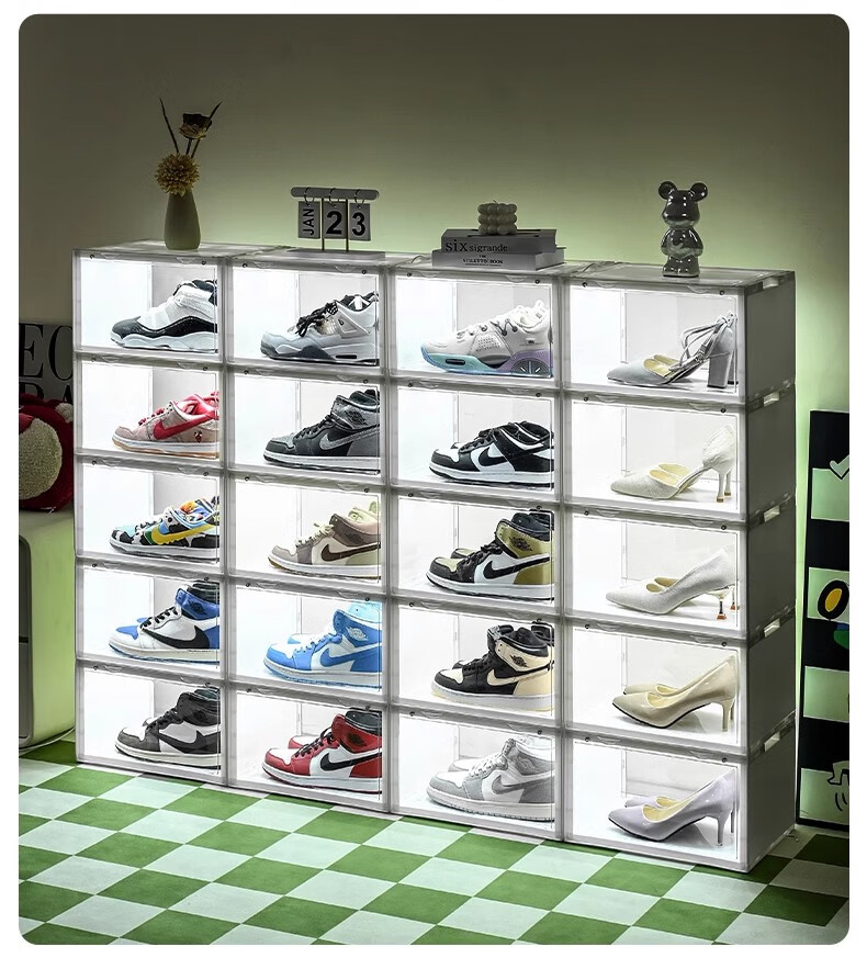 JD Logistics Transparent Shoe Box LED Voice-activated Luminous Acrylic Transparent Magnetic Sneaker Storage Display Box LED Side Door Model 1 Pack