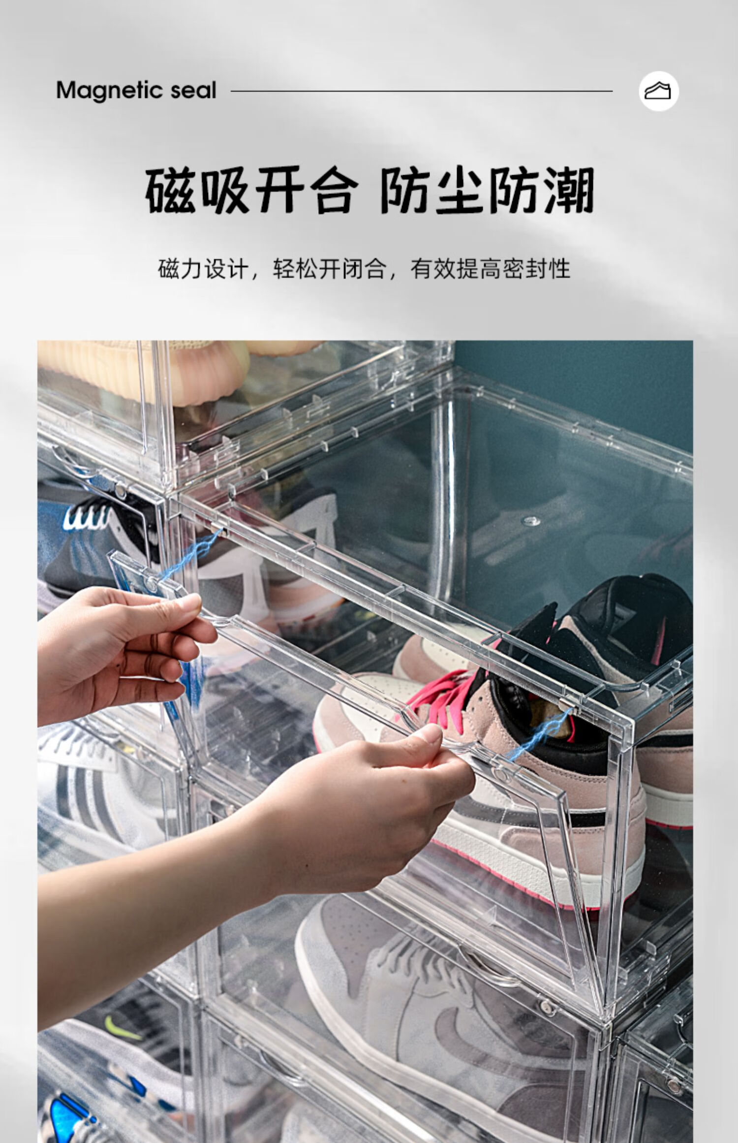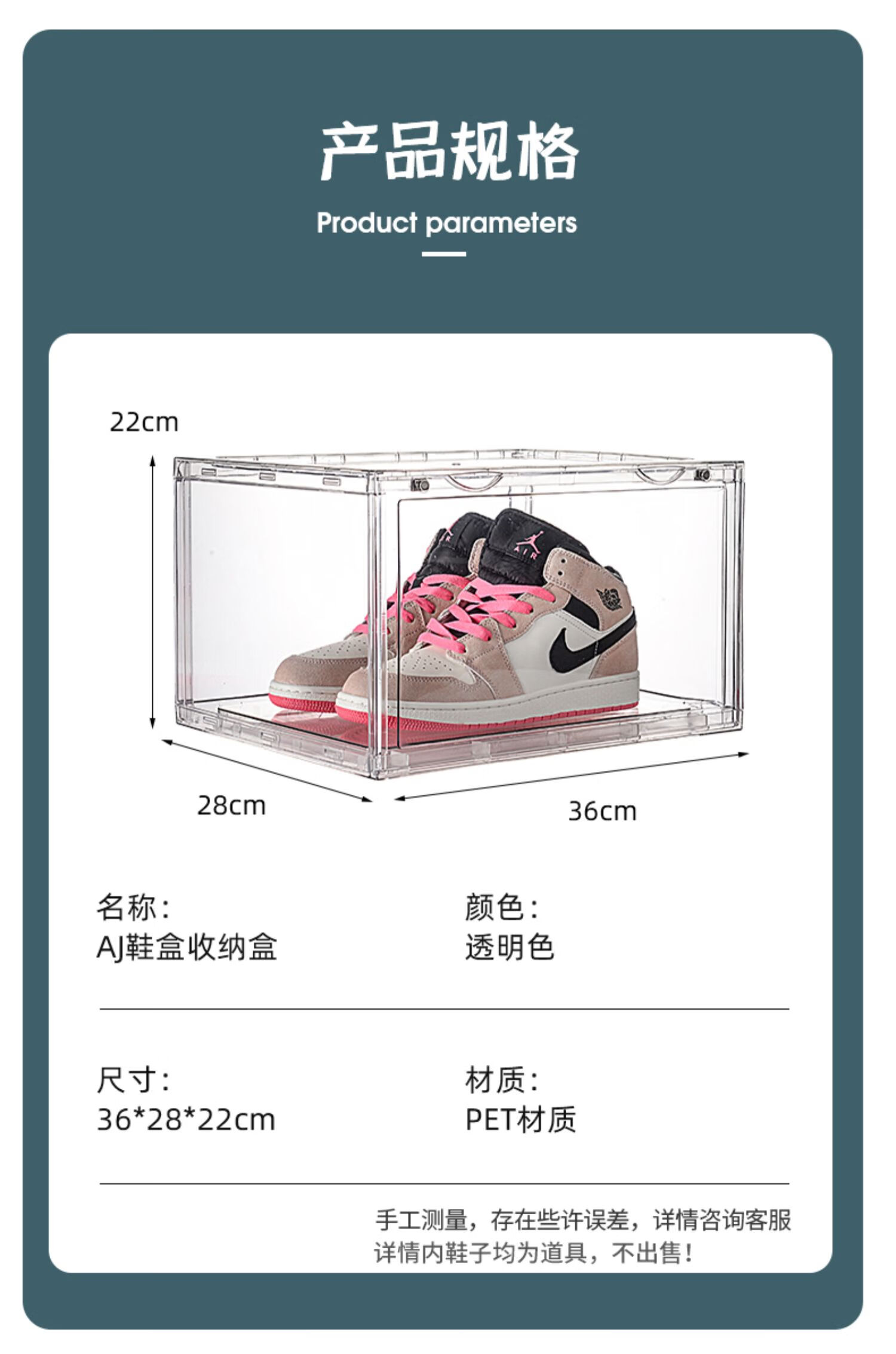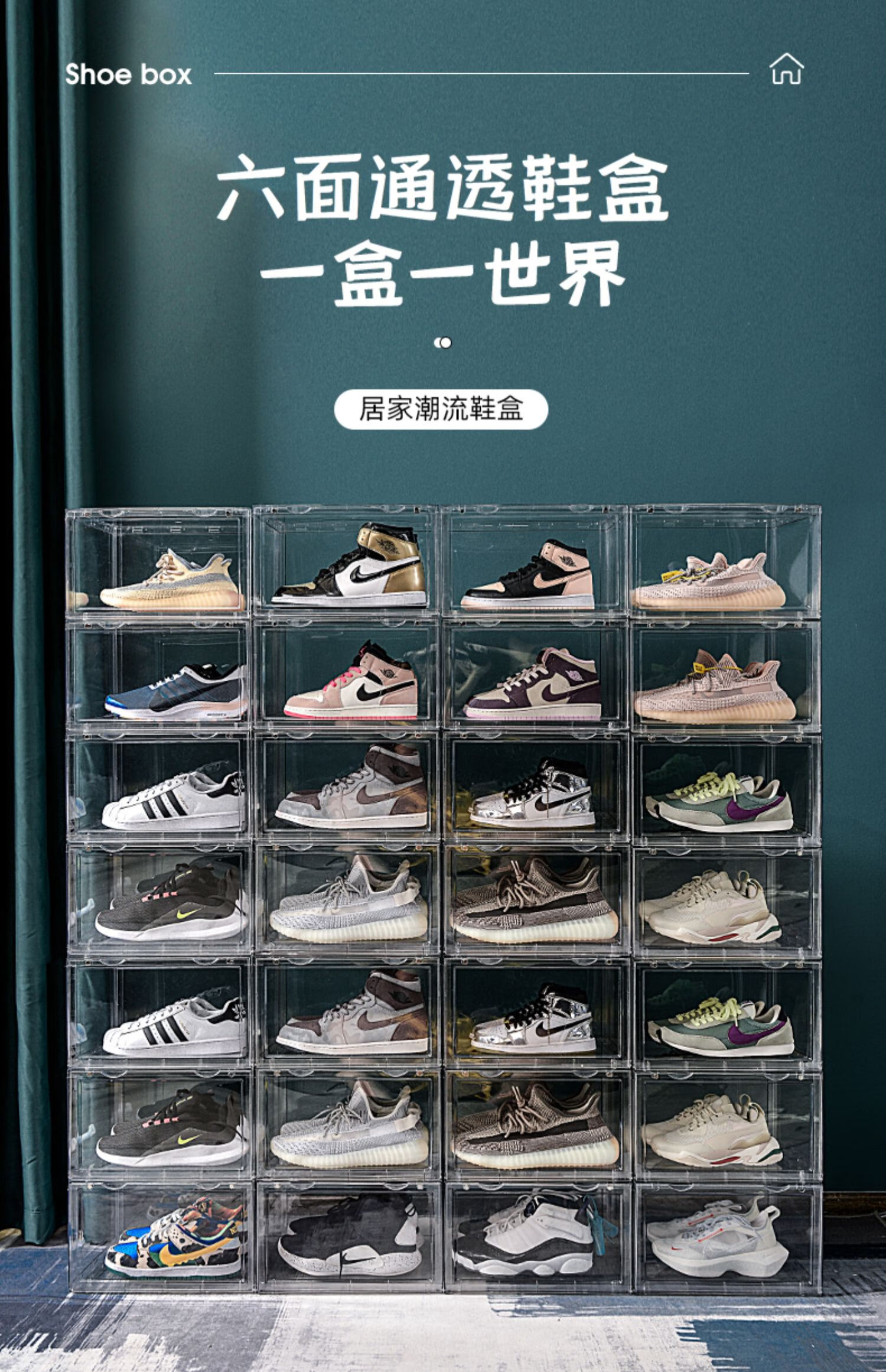 Export quality PET transparent shoe storage and organization box, sports shoe cross-border storage and dust-proof display cabinet, side-opening style, 6 pieces, single weight 1.3KG