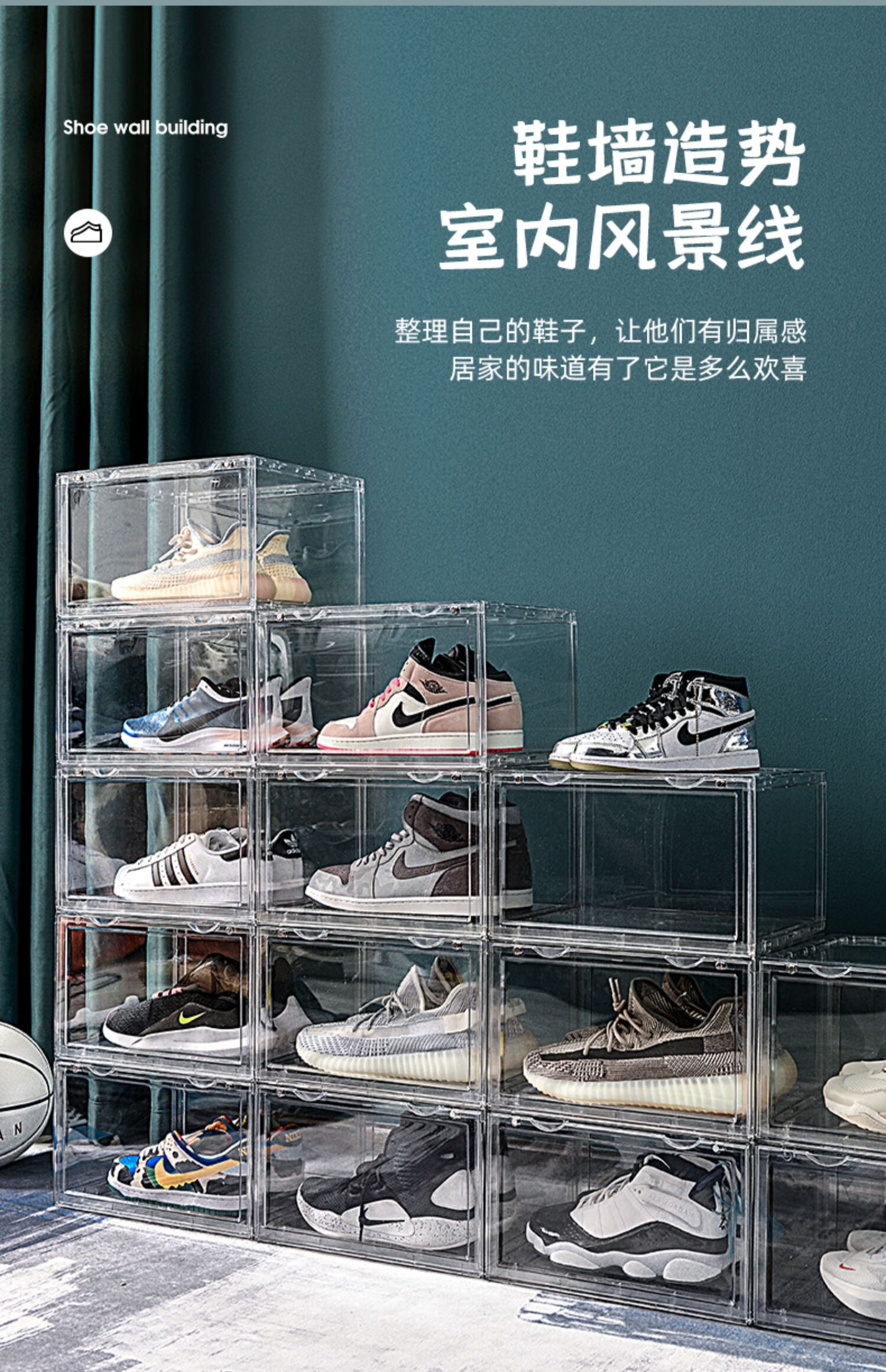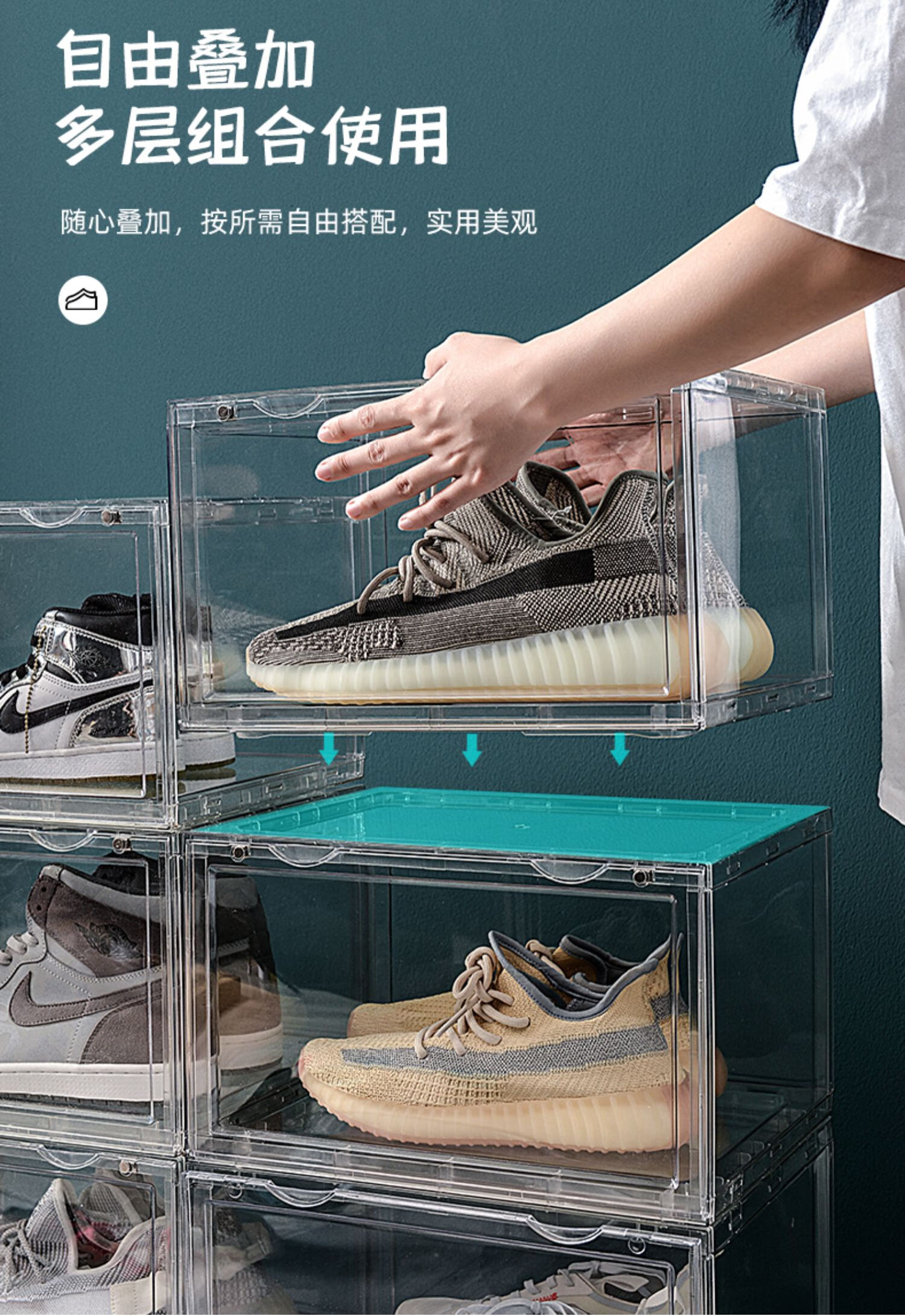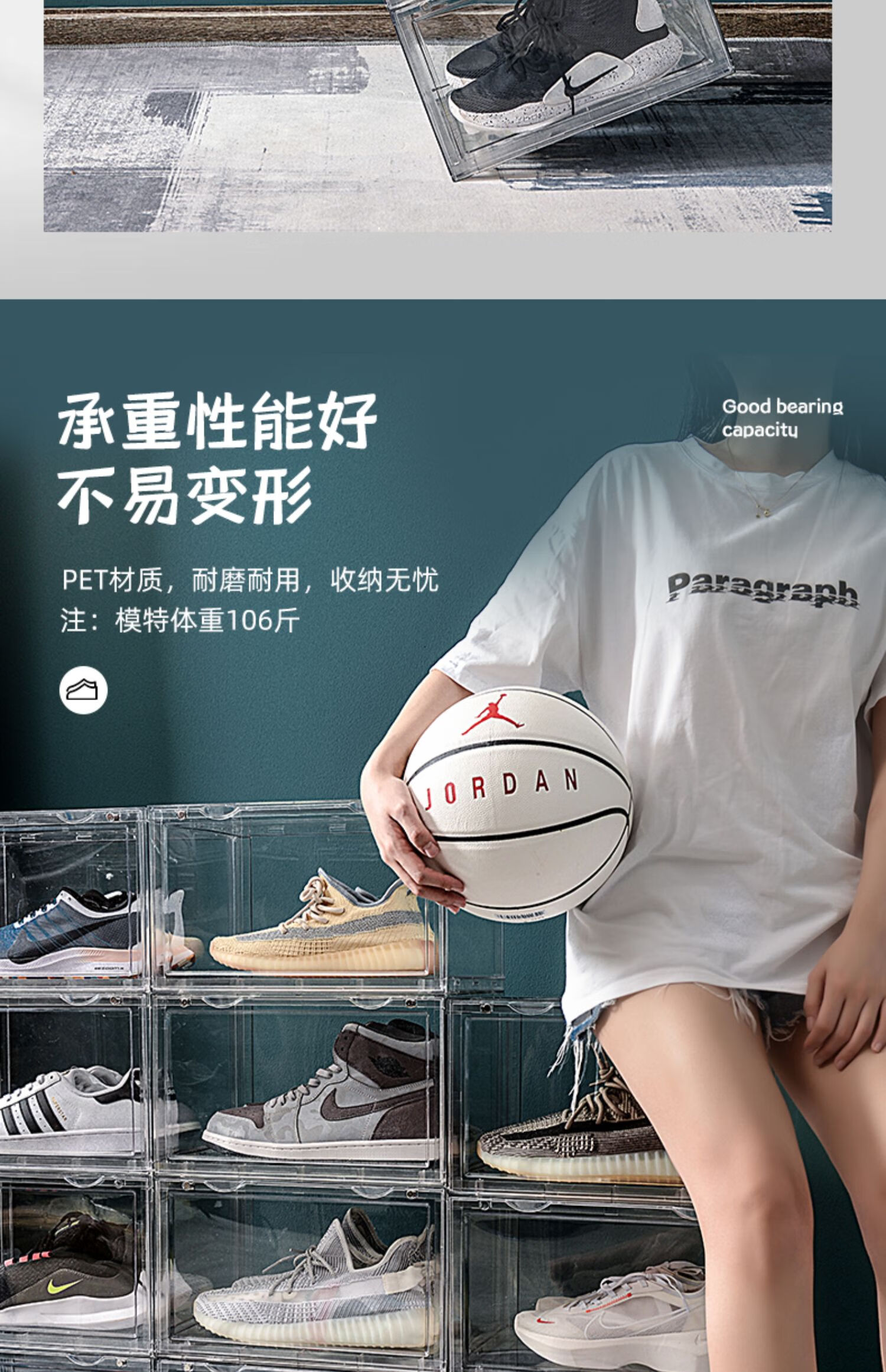 Export quality PET transparent shoe storage and organization box, sports shoe cross-border storage and dust-proof display cabinet, side-opening style, 6 pieces, single weight 1.3KG