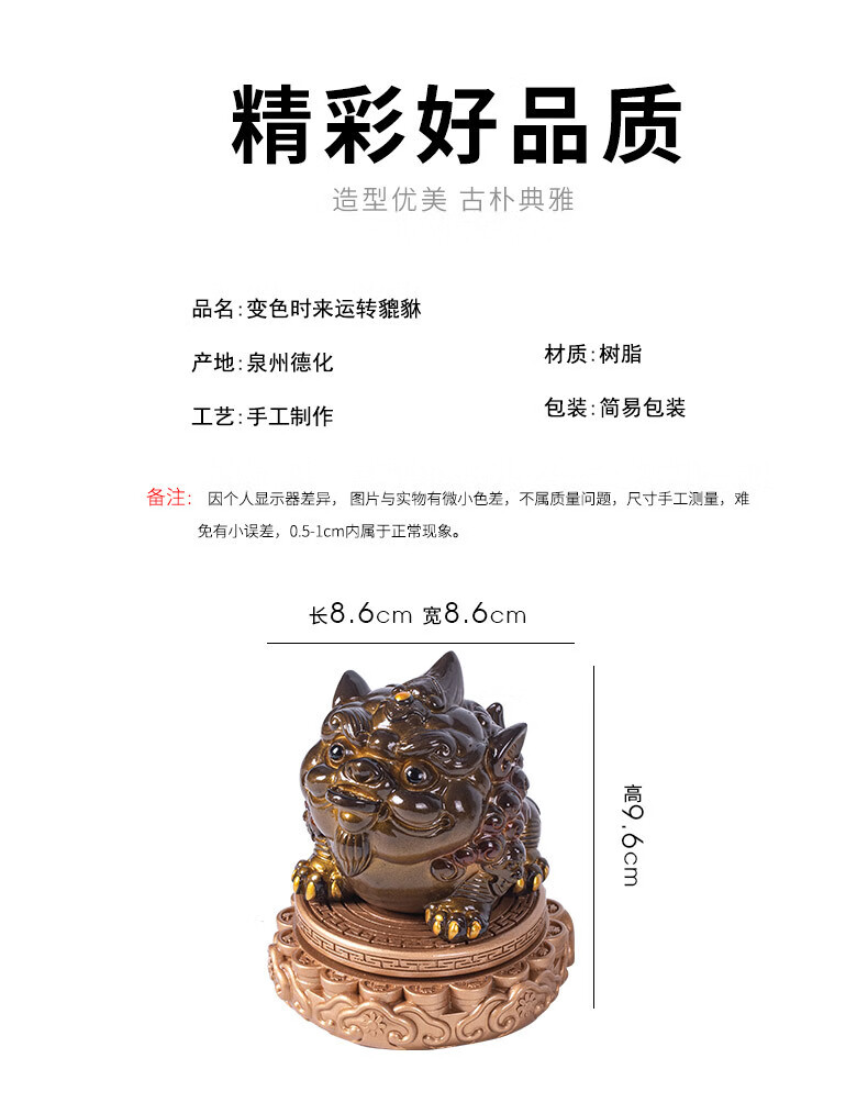 Pixiu color-changing tea pet ornaments can be used to raise fortune, play tea ceremony, Kung Fu tea set decorations, golden-time comes and turn Pixiu (color-changing)