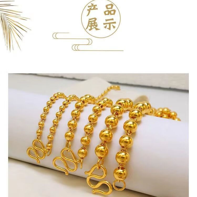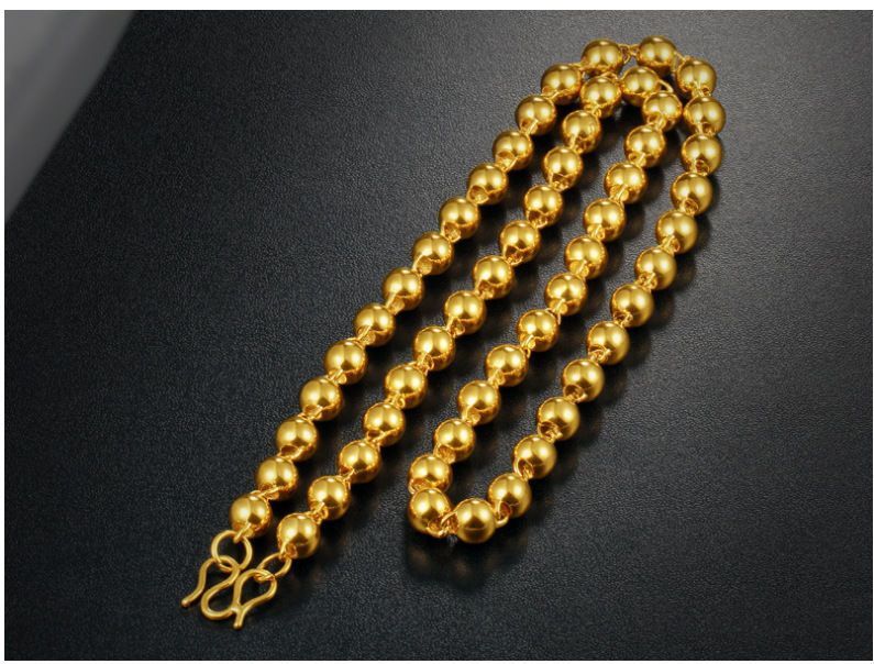 DRJEFUN new Vietnamese sand gold solid light bead necklace for men and women, non-fading glossy round beads transfer bead gold store, sand gold 10 mm thick, 60 cm long, 190 grams solid, sand gold exquisite gift box