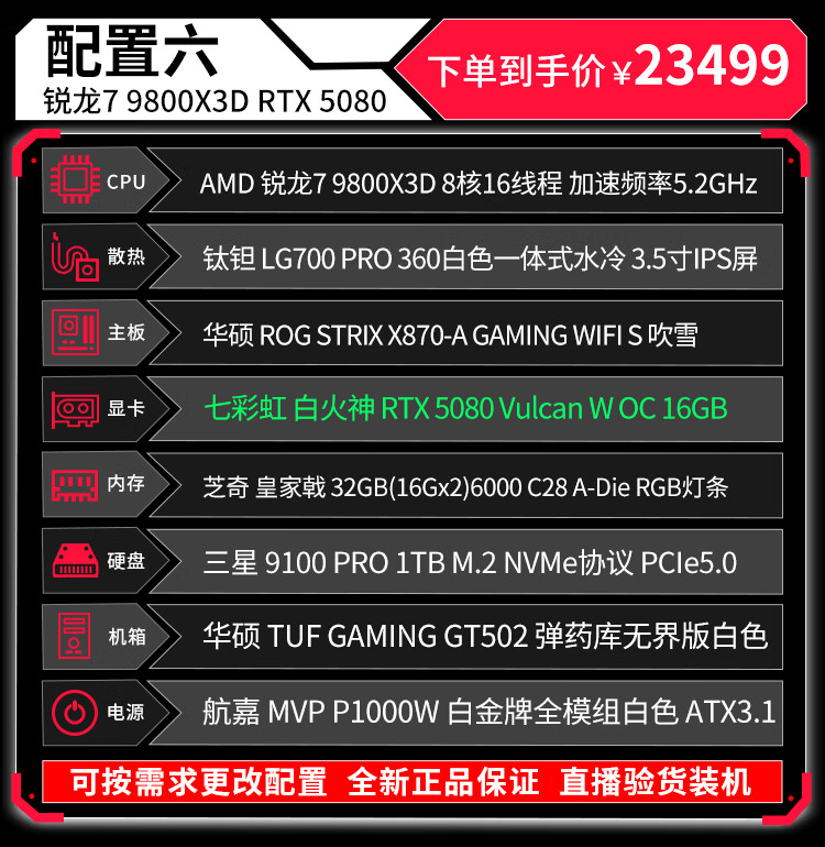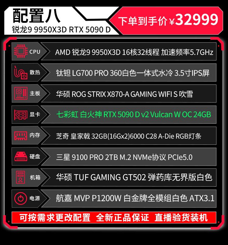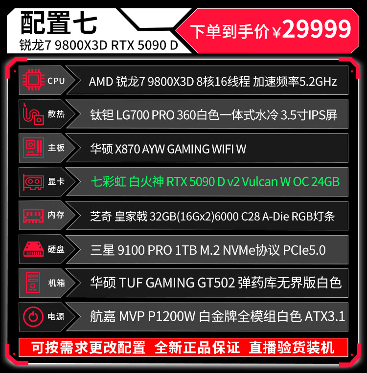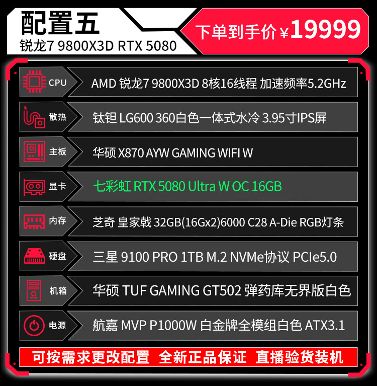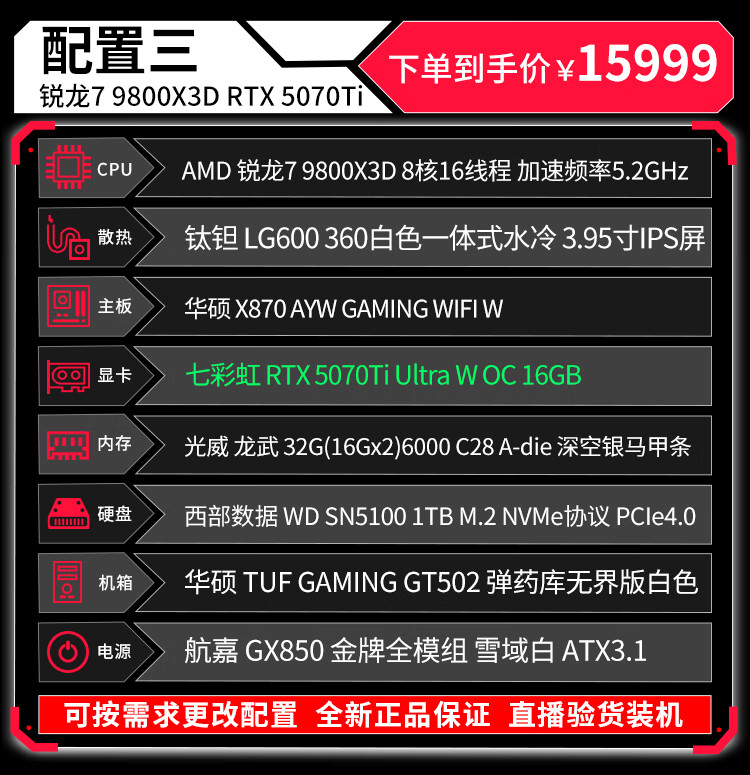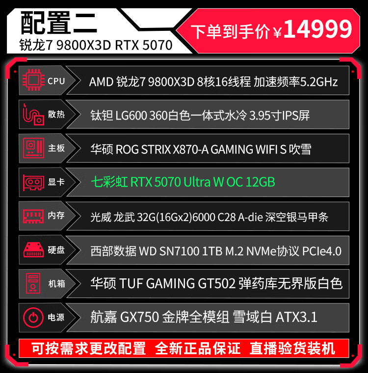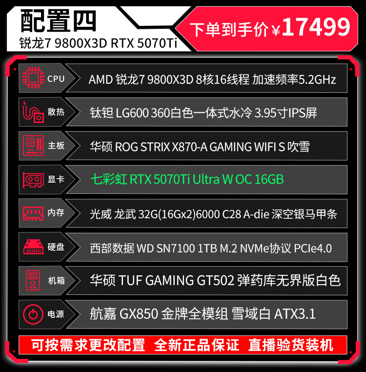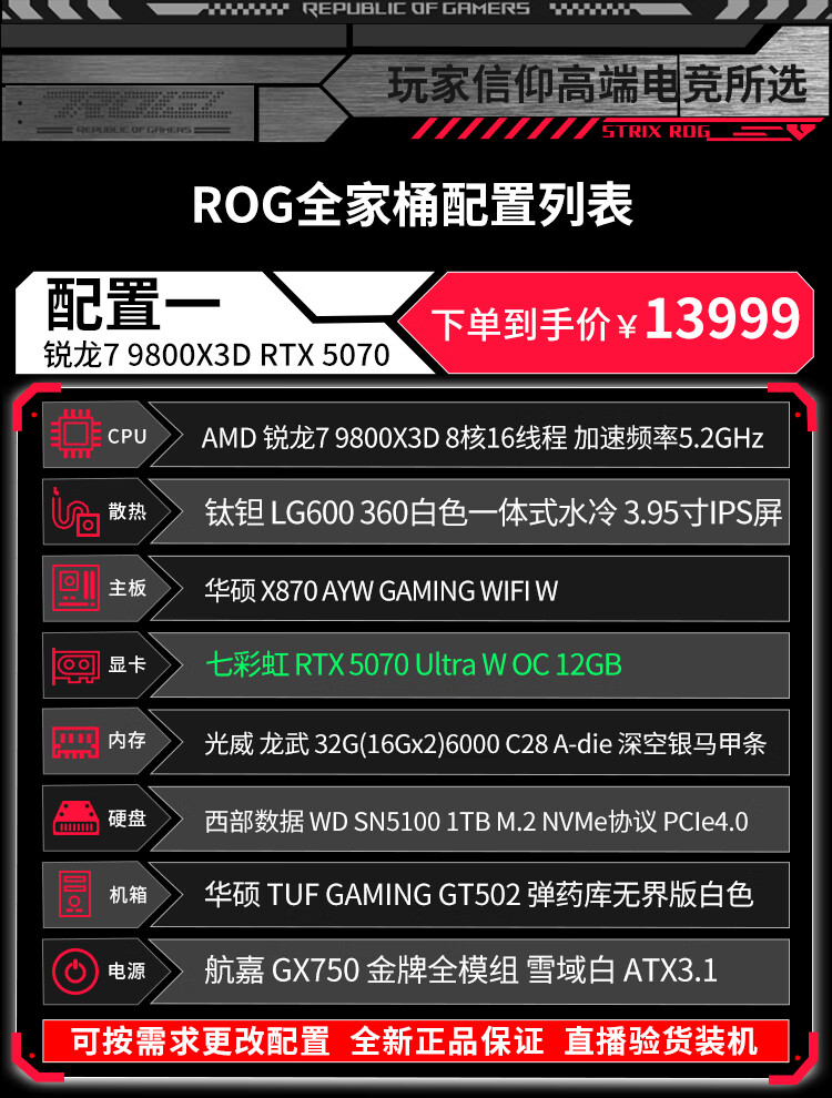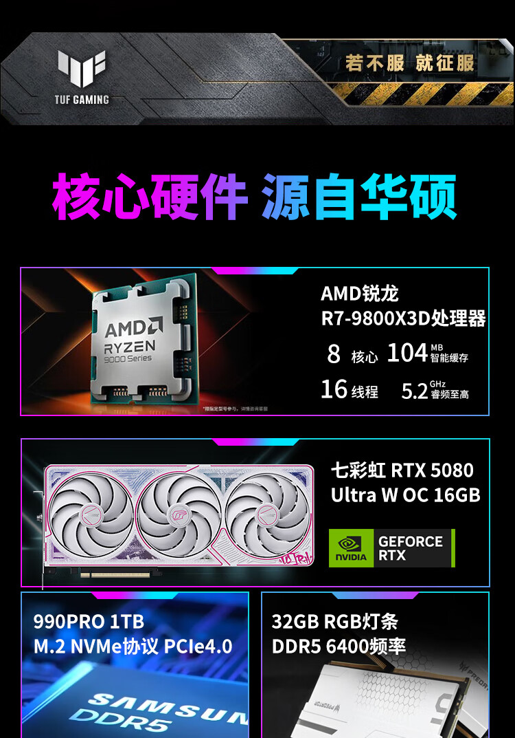 ASUS magazine GT502 column-free sea view room white host 9800X3D 5070Ti 5080 5090D white Vulcan graphics card game thousand frames e-sports DIY assembly computer 1 R7 9800X3D+RTX5070