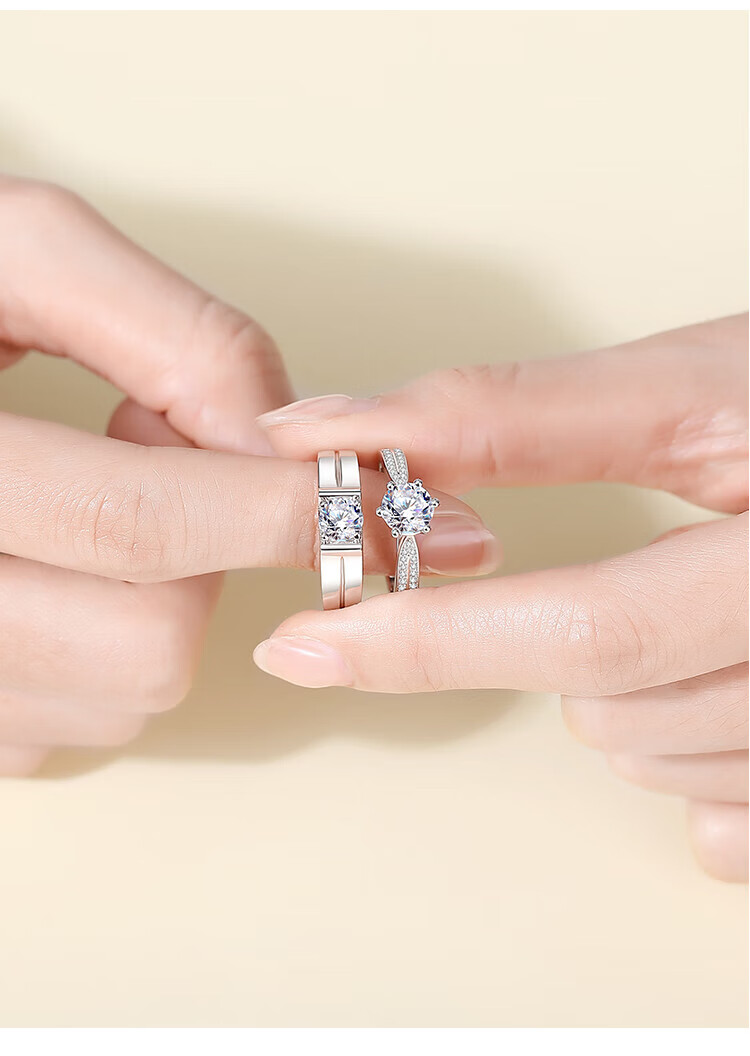 Grace Girl Platinum Half Country Cultured Diamond Ring 1 Carat Diamond Ring Proposal and Birthday Gift for Girlfriend and Wife Platinum Half Country Moissanite Diamond Pair Ring 30 Points/D Color/VVS