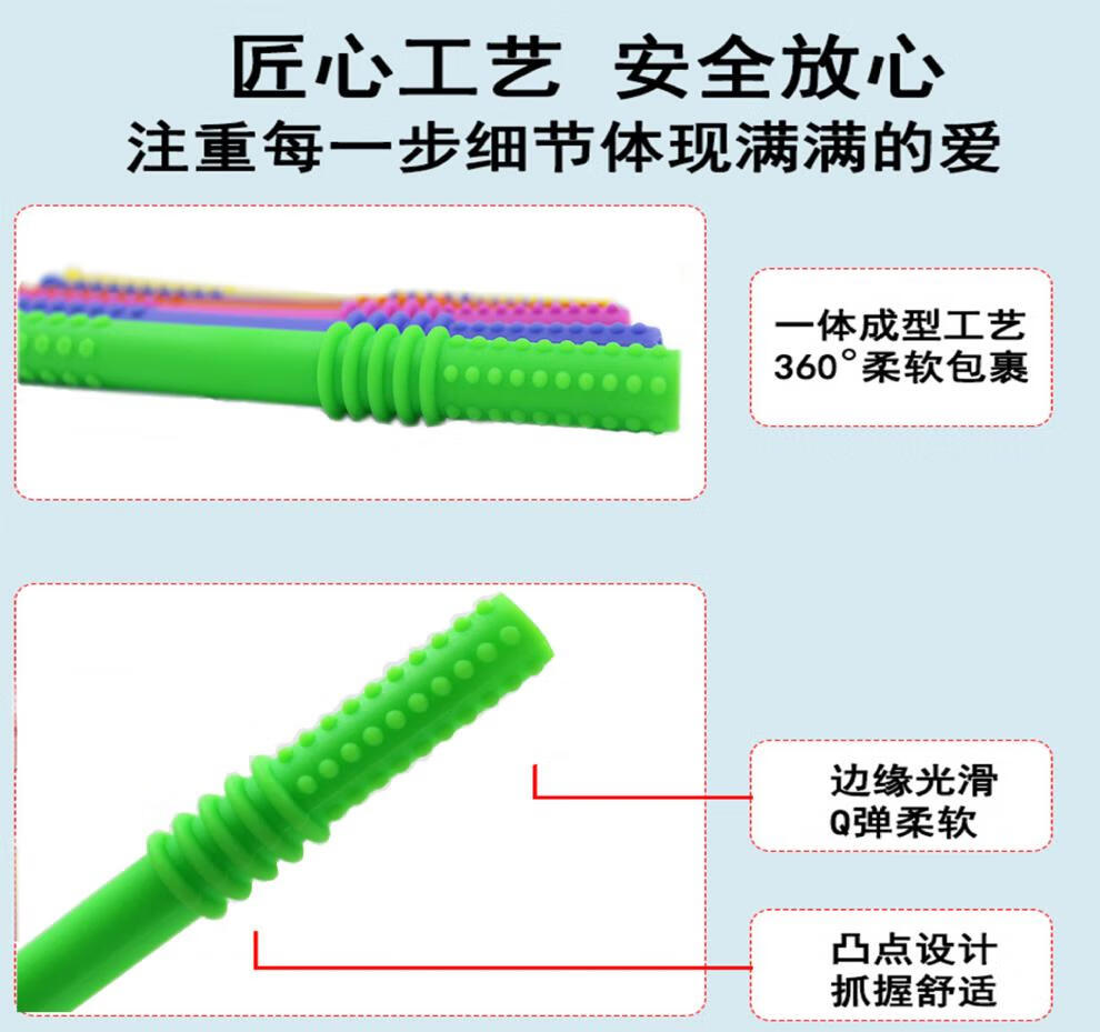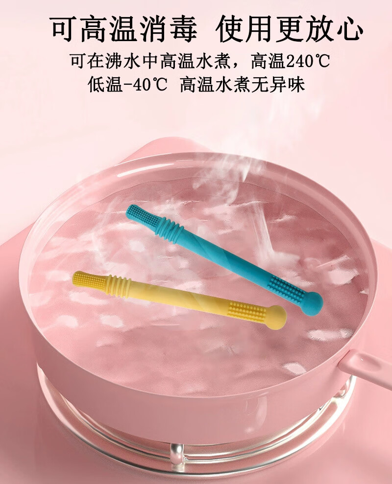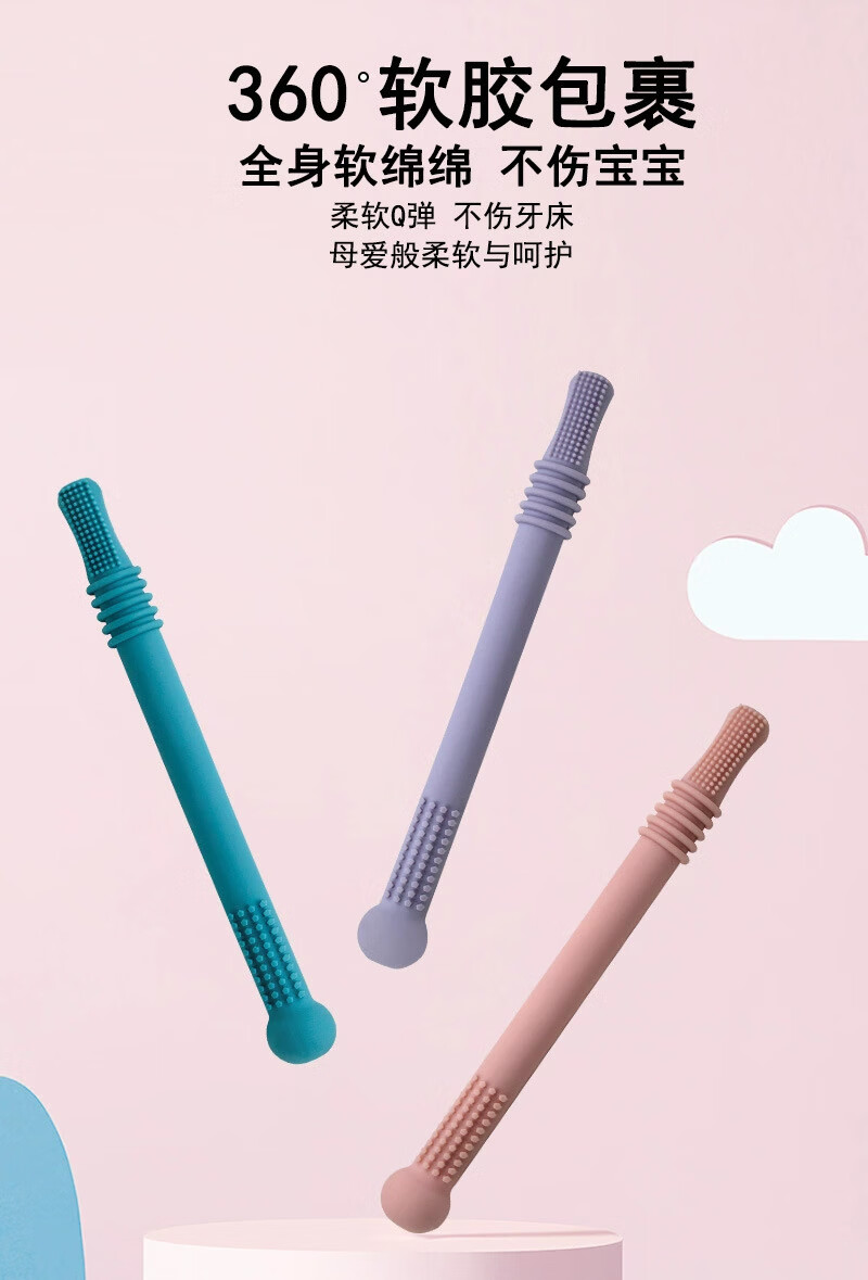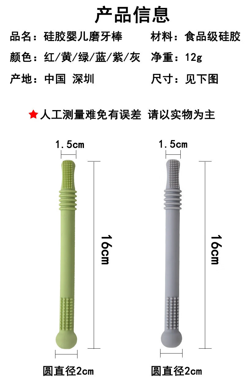 OUOETY baby teether baby anti-eating hand food silicone teething soothing molar stick bite fun gray