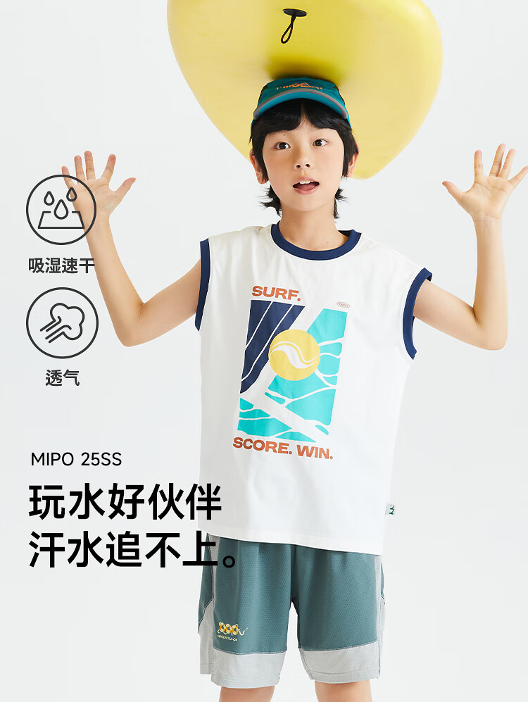 Mipo children's 25 summer sports vest, quick-drying, cool, antibacterial, breathable, elastic, boys' outdoor sports inner wear, green 160