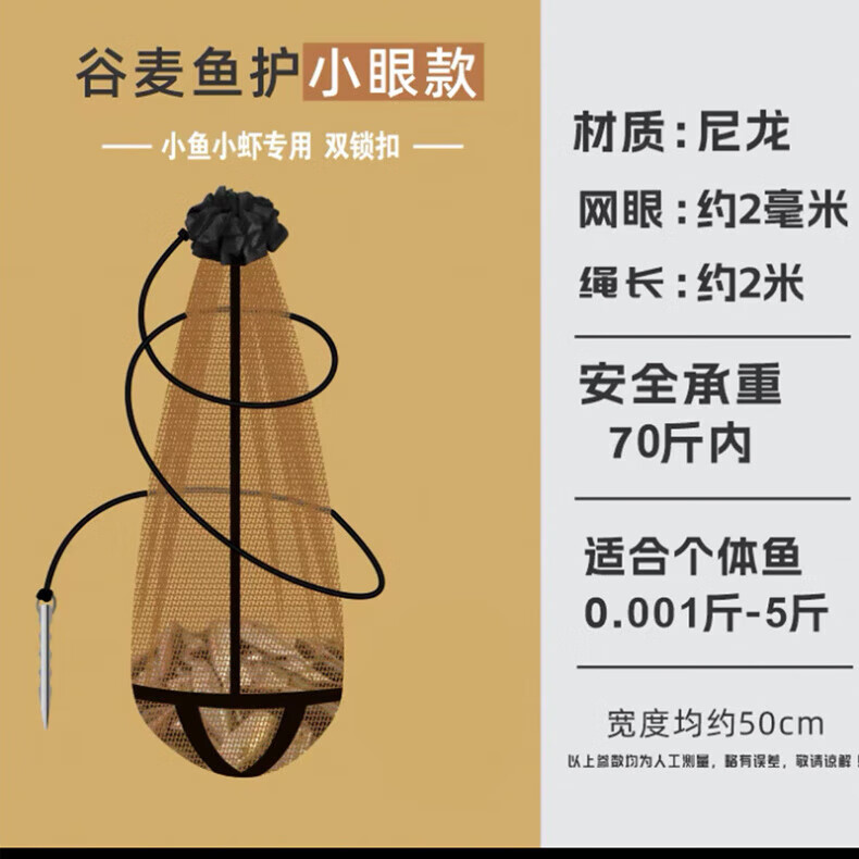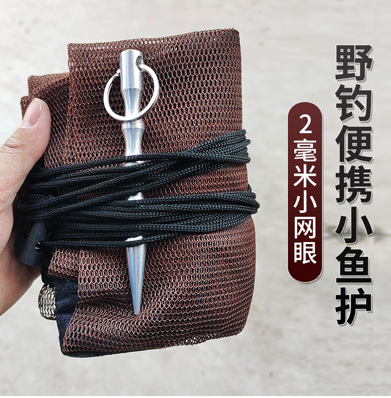 Portable small nano mini fish protection bag, quick-drying anti-hanging fish net bag, foldable storage fish basket, 50cm 0.5m, with rope + ground plug, net length 0.5m