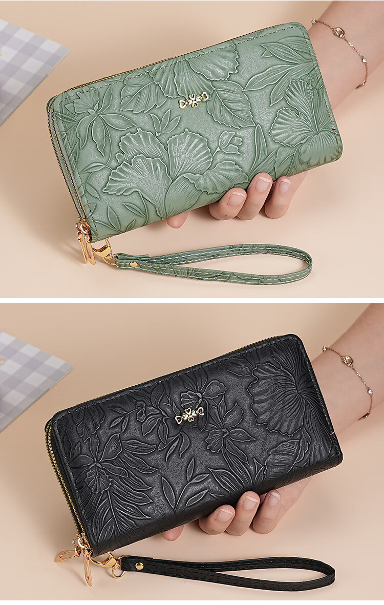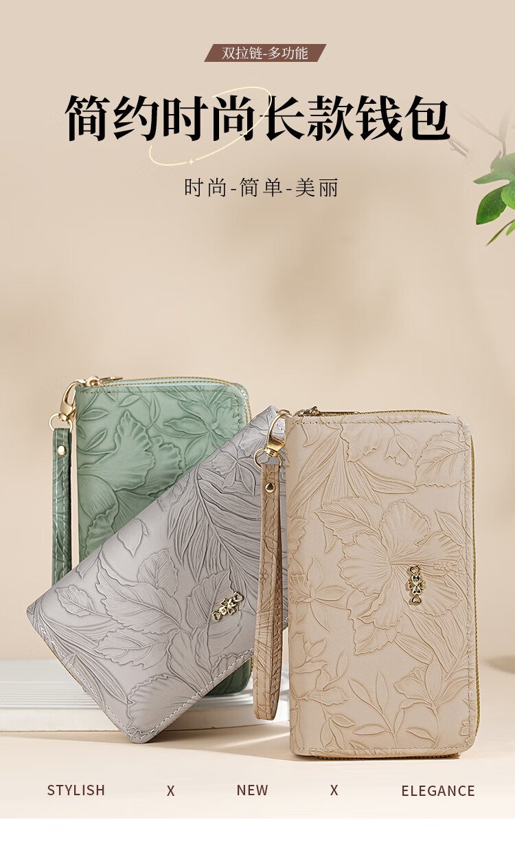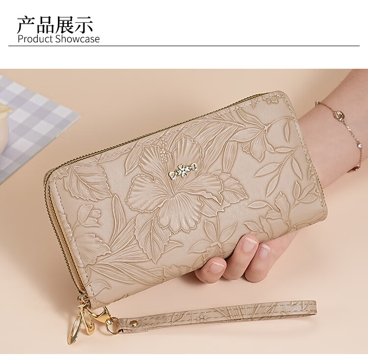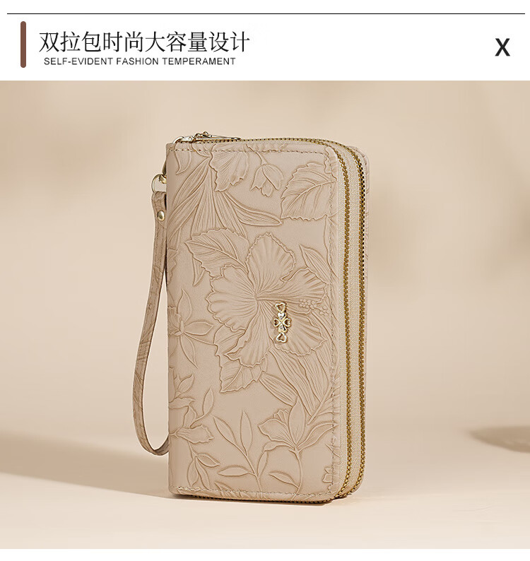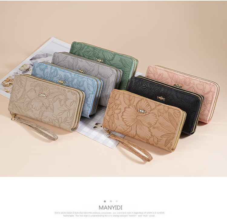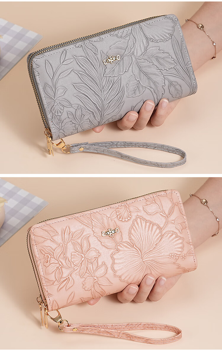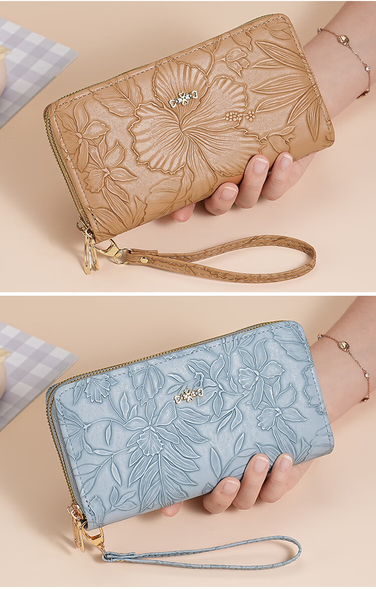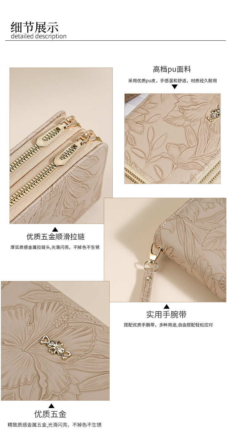 Yunluo Fashion Long Large Capacity Clutch Women's Retro Flower Double Zipper for Mom Portable Wallet Coin Purse Khaki Material