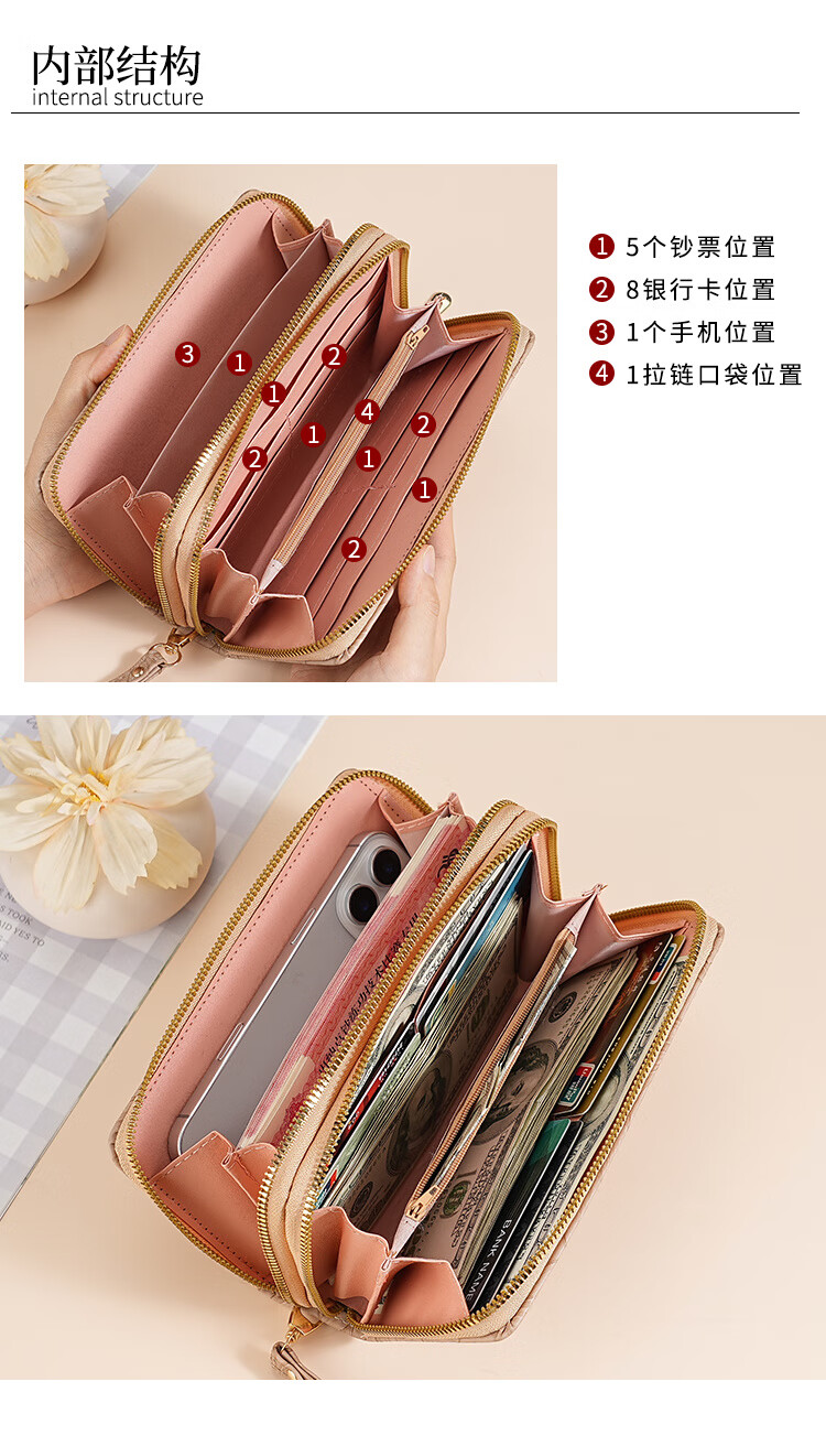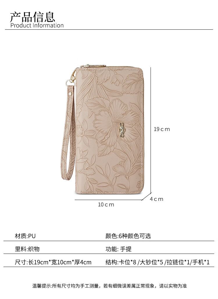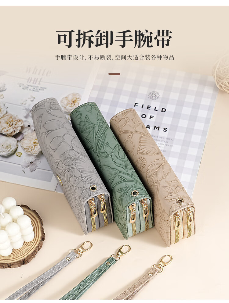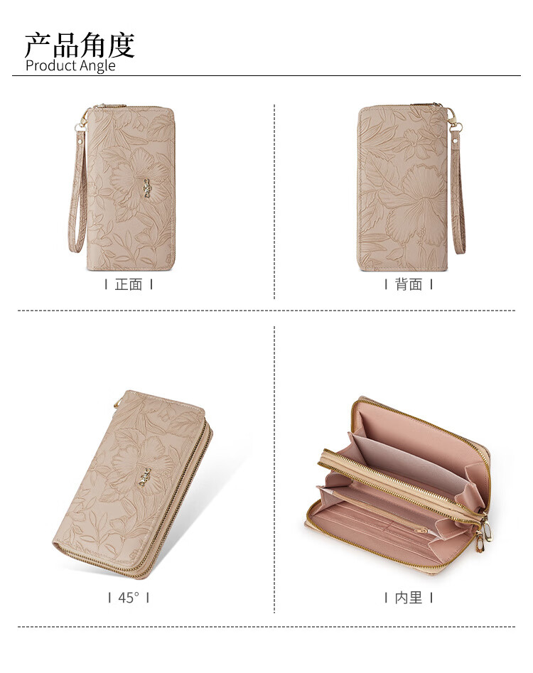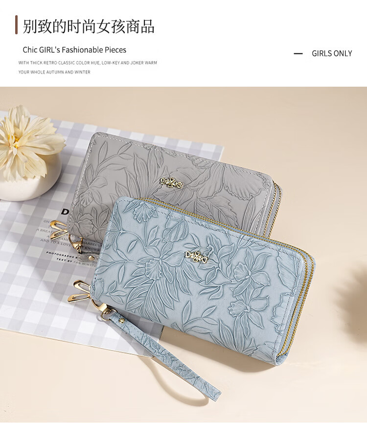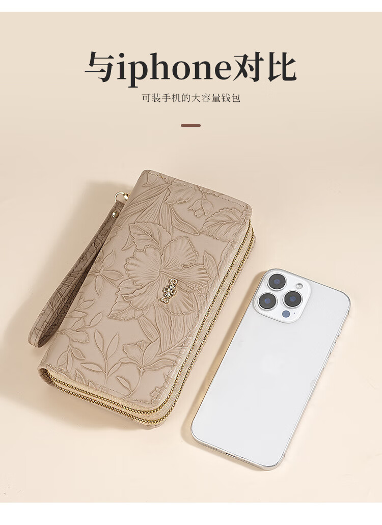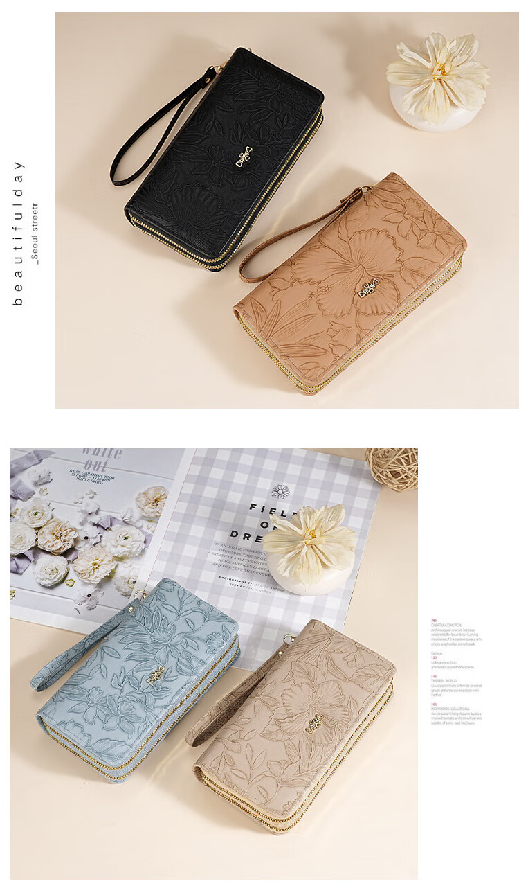 Yunluo Fashion Long Large Capacity Clutch Women's Retro Flower Double Zipper for Mom Portable Wallet Coin Purse Khaki Material