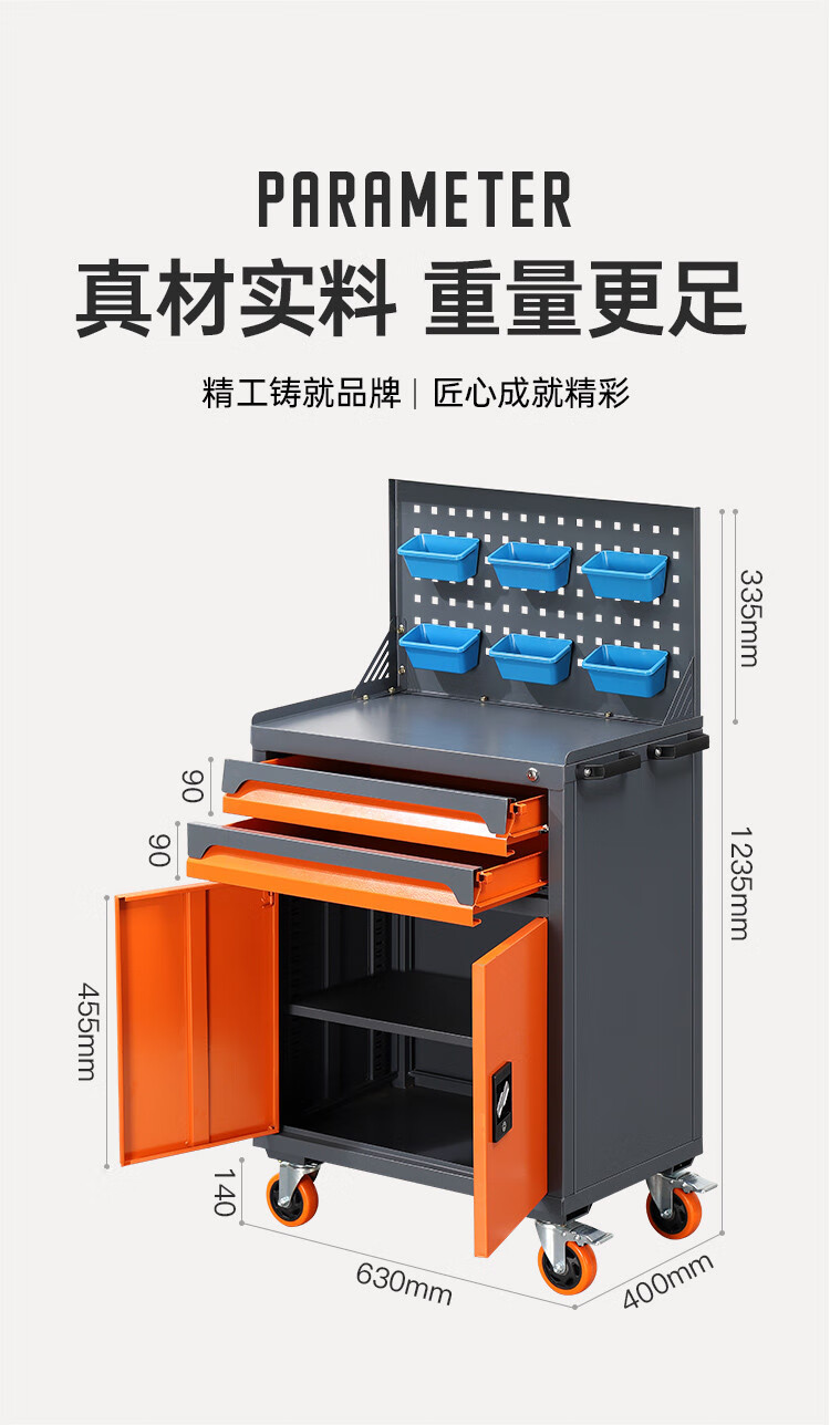 Wen Yijia Workshop Factory Auto Repair Multi-Function Tool Cart Cabinet Hardware Repair Trolley Box Drawer Mobile Heavy Duty Gray Orange Multi-Function Tool Cart Cabinet Super Strong