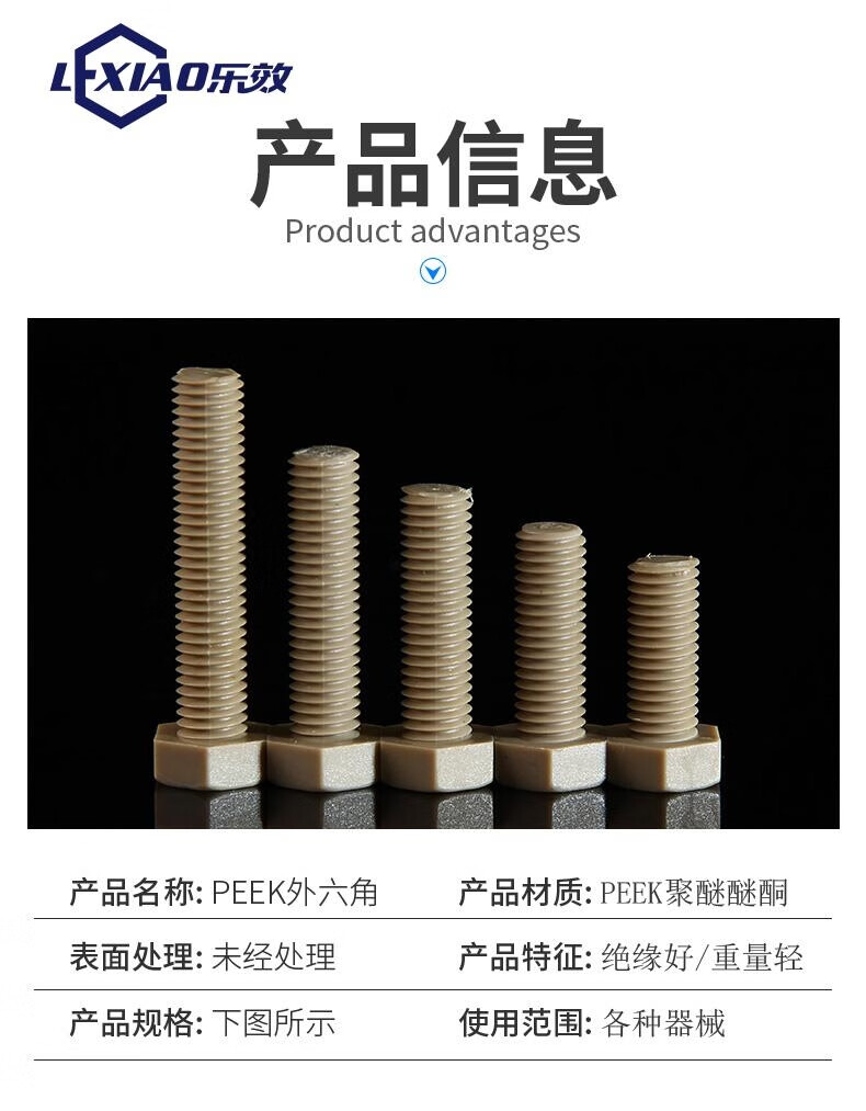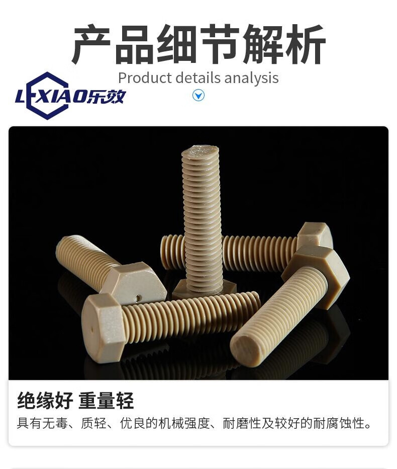 Lexiao PEEK high-strength plastic external hexagonal screws M2M3M4M5M6M8 insulated strong acid and alkali resistant and high temperature resistant bolts M4*20 (Quantity 10)