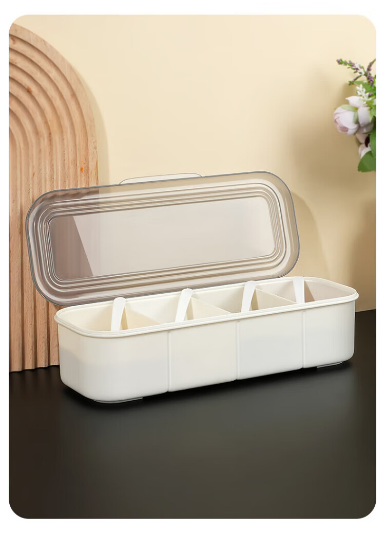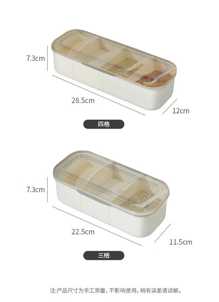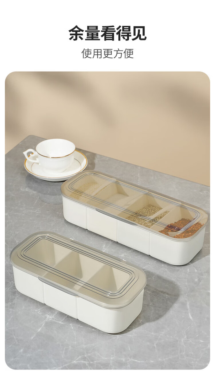 Zhenxi divided spice box spice storage box with spoon kitchen household salt shaker MSG sugar pepper seasoning box storage multi-grid cream white four-grid spice storage box-with spoon