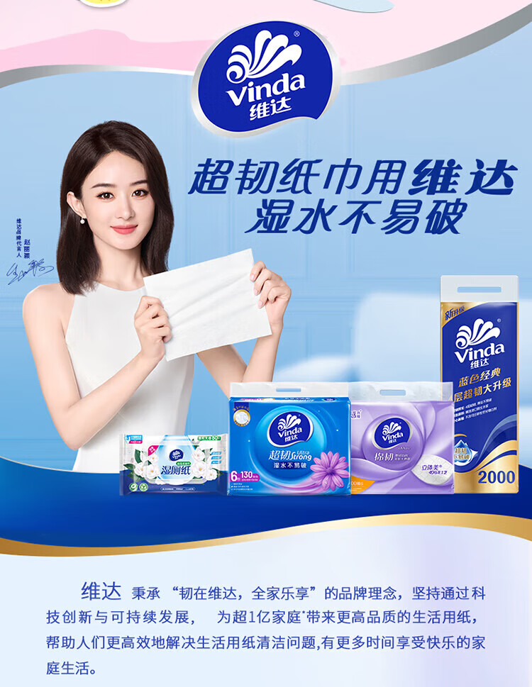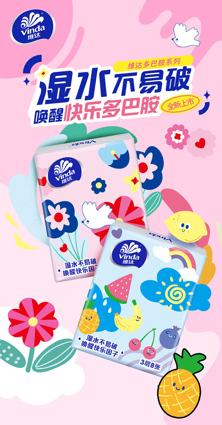 Vinda handkerchief paper, Wuhuang Wanshui joint model, 3 layers, 8 pieces of facial tissue, double toughness, unscented tissue paper packet, portable Vinda handkerchief paper, 3 layers, 8 pieces*10 packs