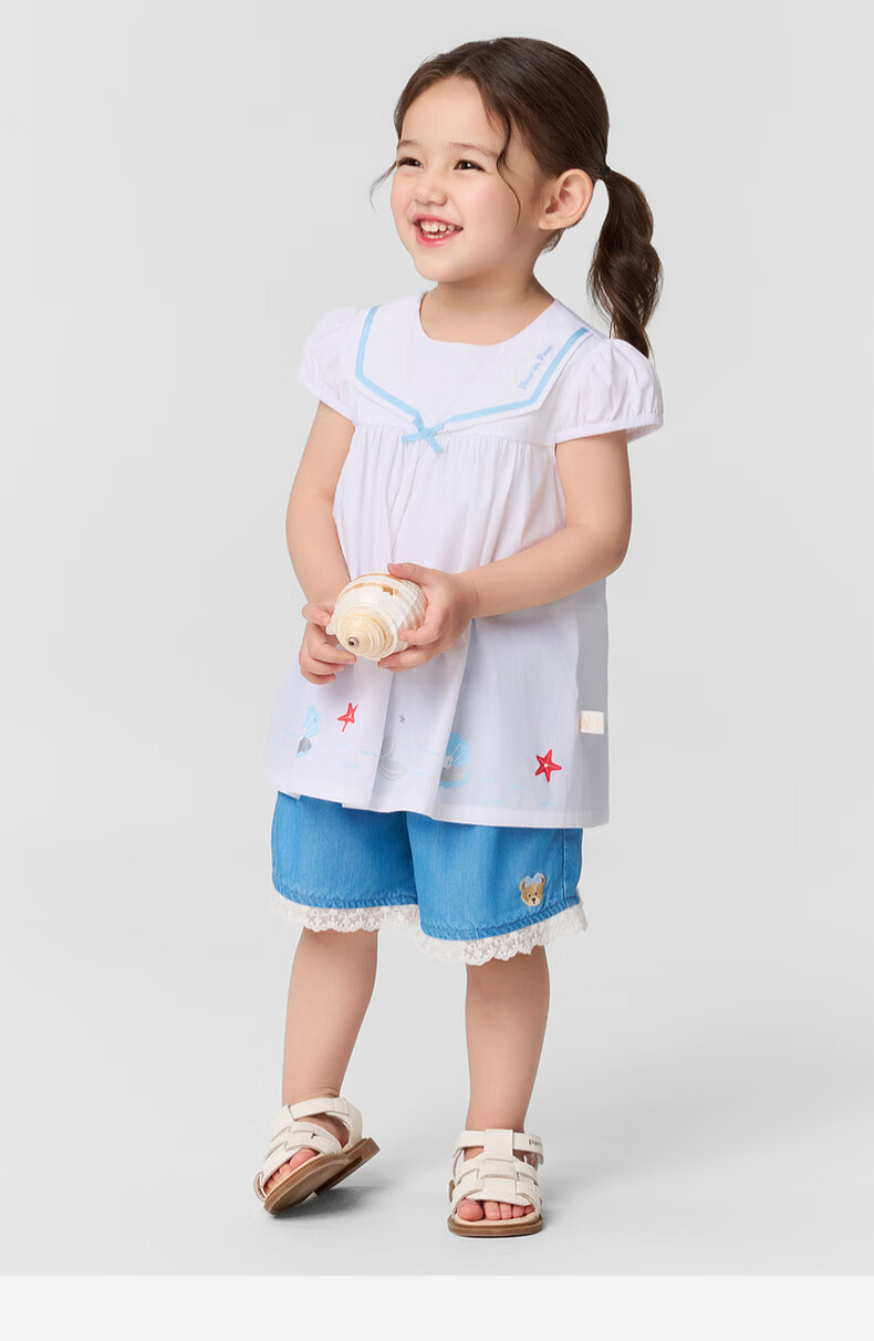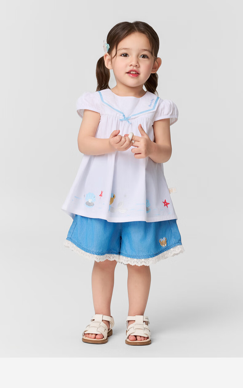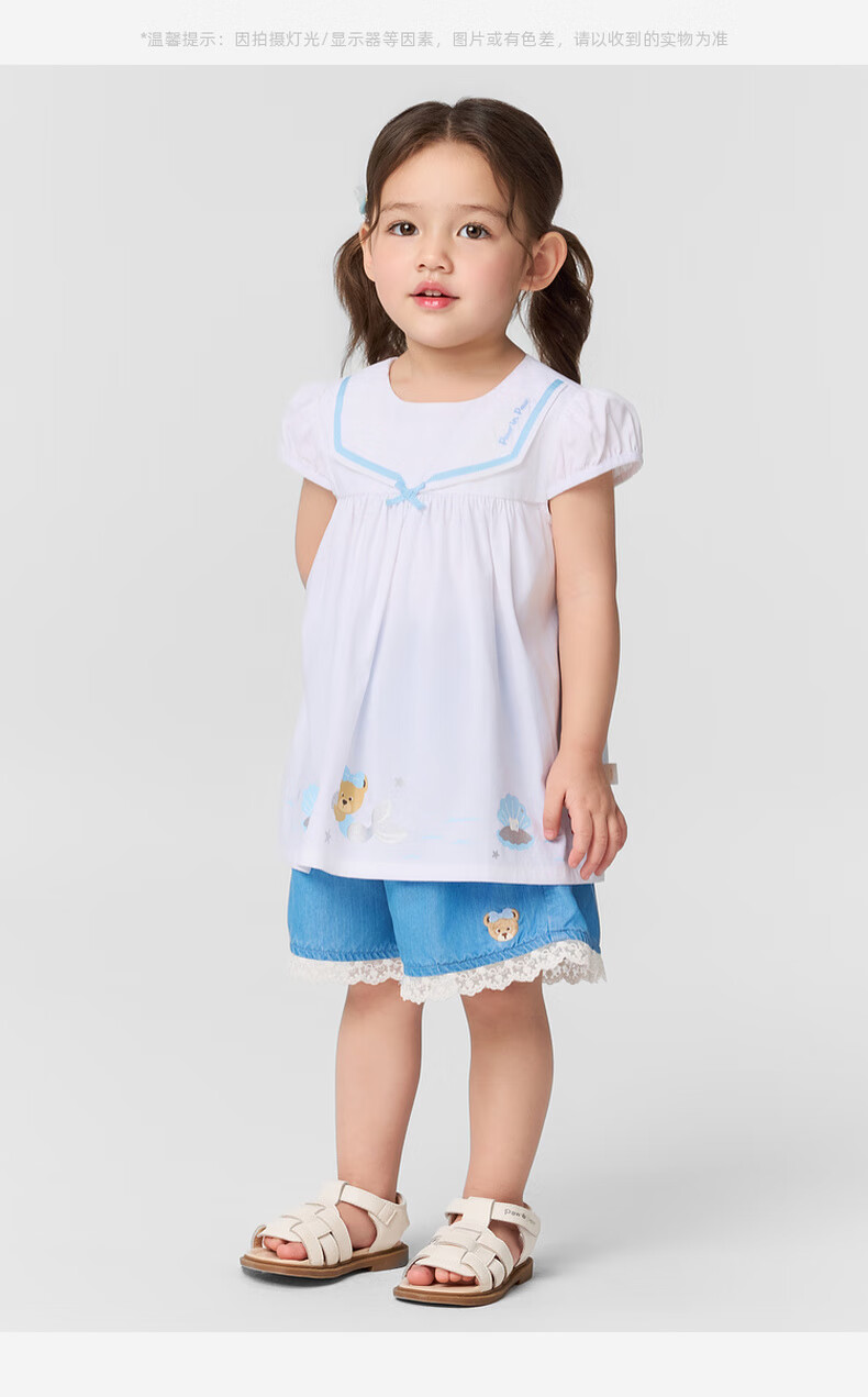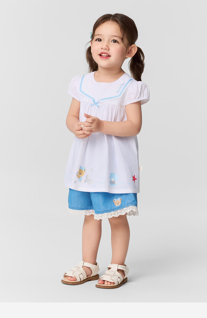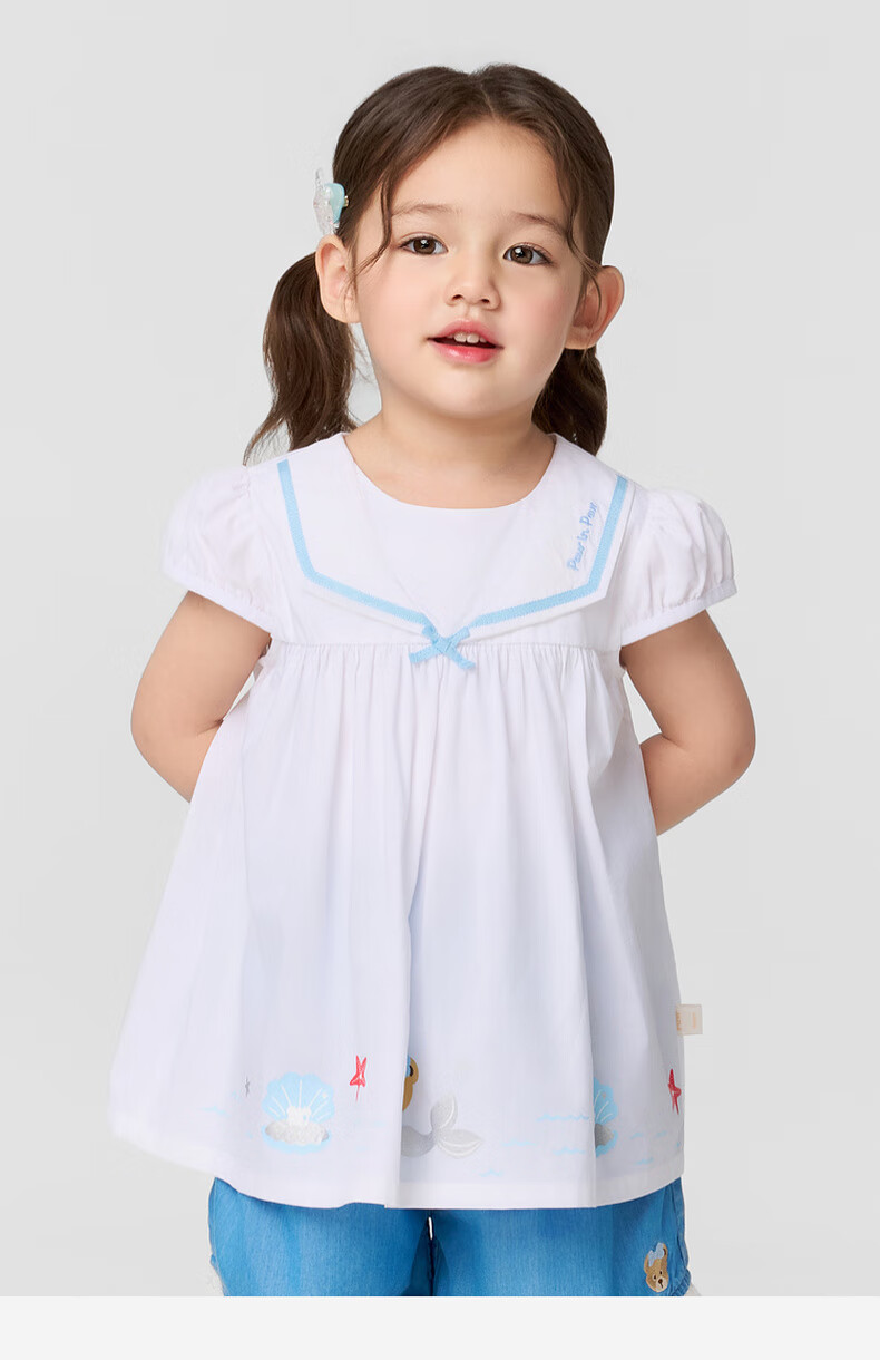 PawinPaw shopping mall same style cartoon bear children's clothing 25 spring and summer new baby girl A-line version navy lapel shirt Ivory ivory/39 110