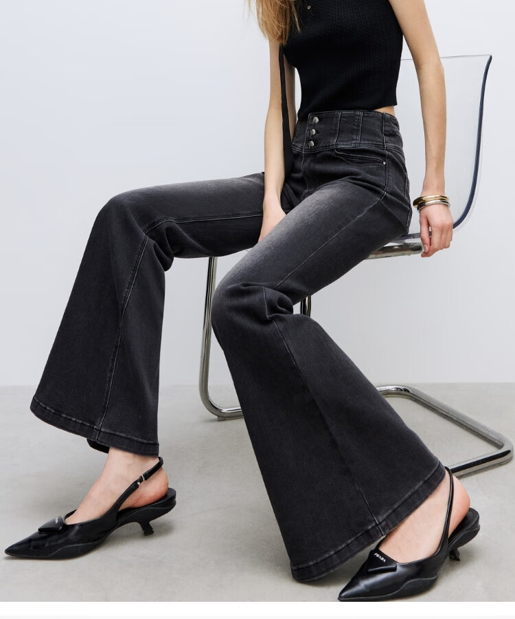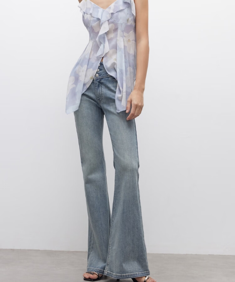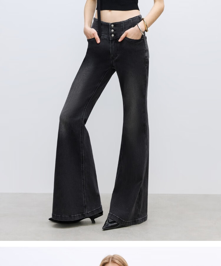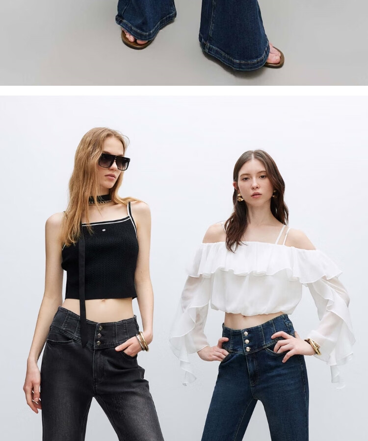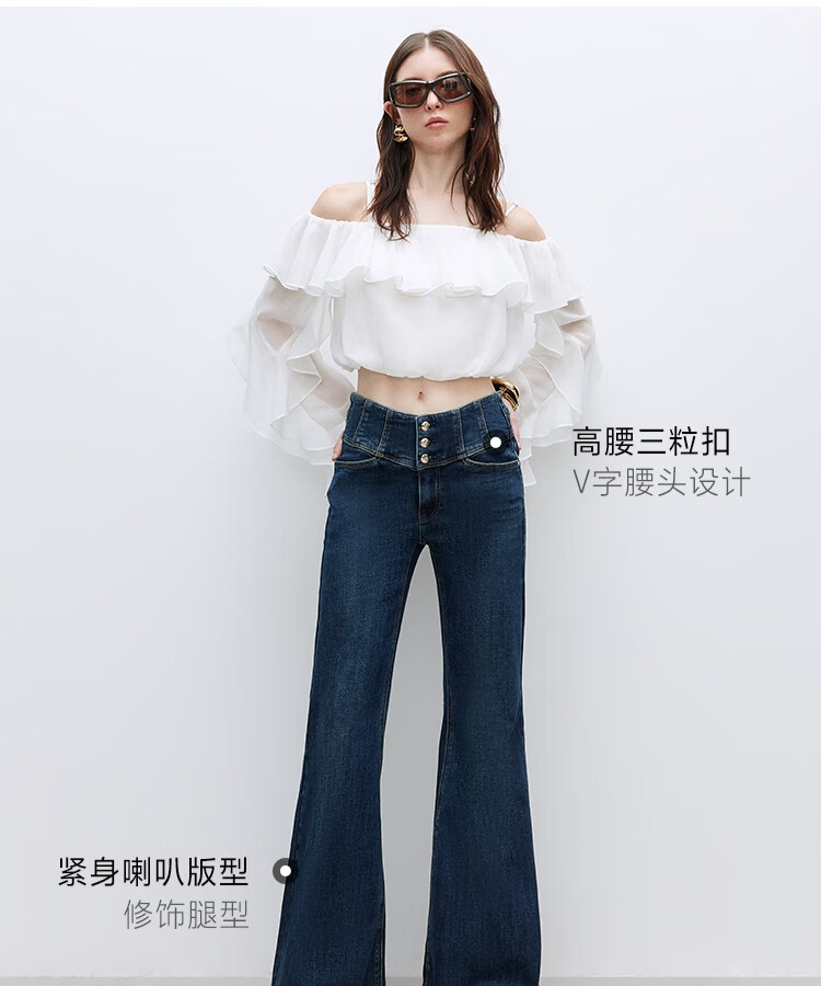 ONLY2025 new summer hot girl design slim high-waist flared jeans for women|125332002 J36810 washed denim blue S S pants length reduced