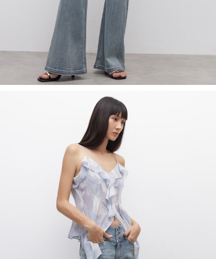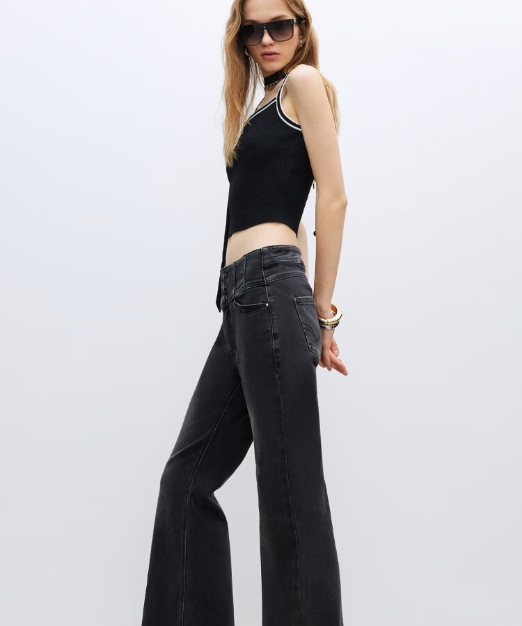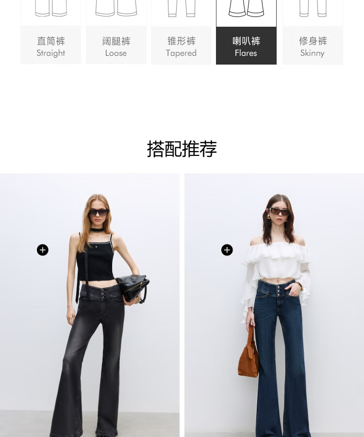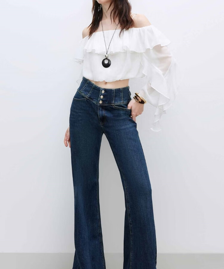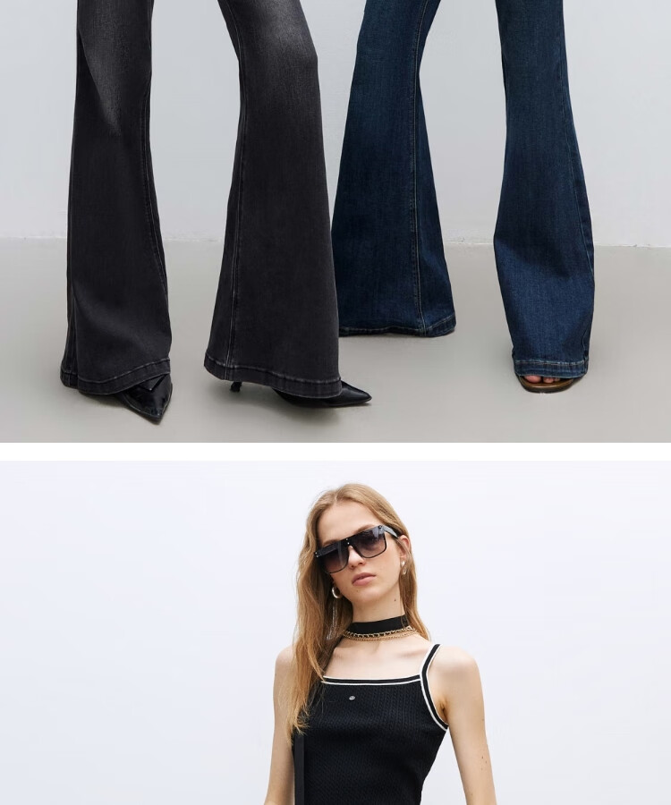 ONLY2025 new summer hot girl design slim high-waist flared jeans for women|125332002 J36810 washed denim blue S S pants length reduced