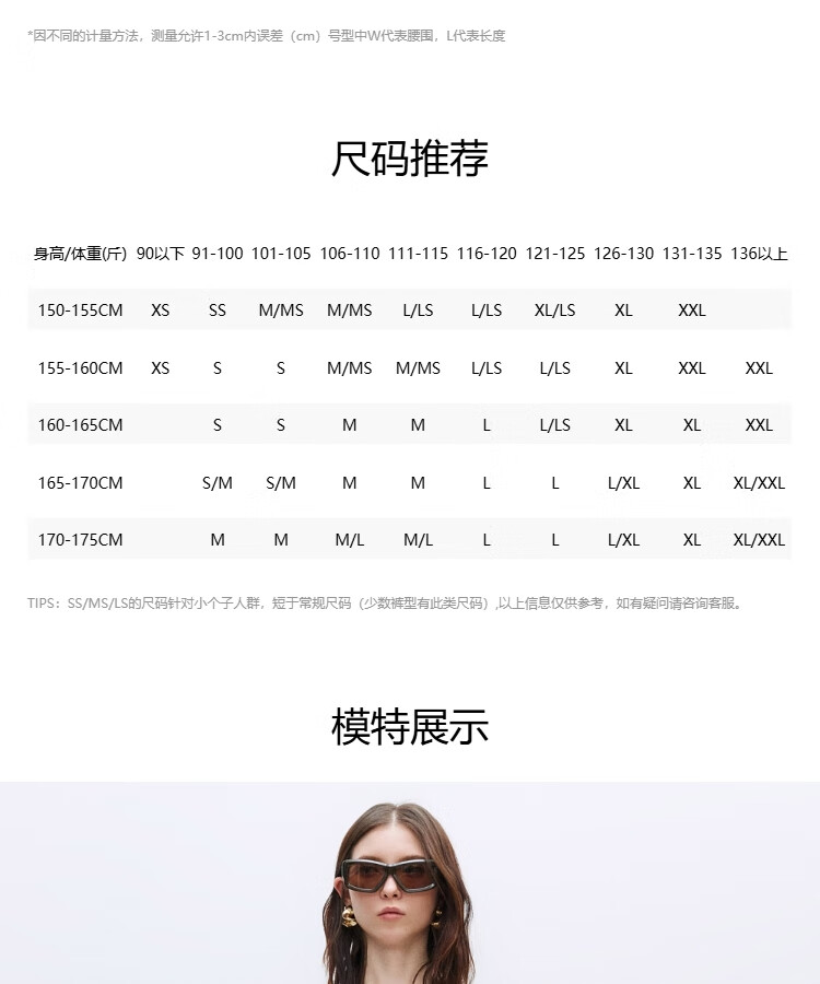 China (cm) 160-165/84-86 165-170 / 88-90 167-172 / 92-96 168-173 / 98-102 170-176 / 106-110