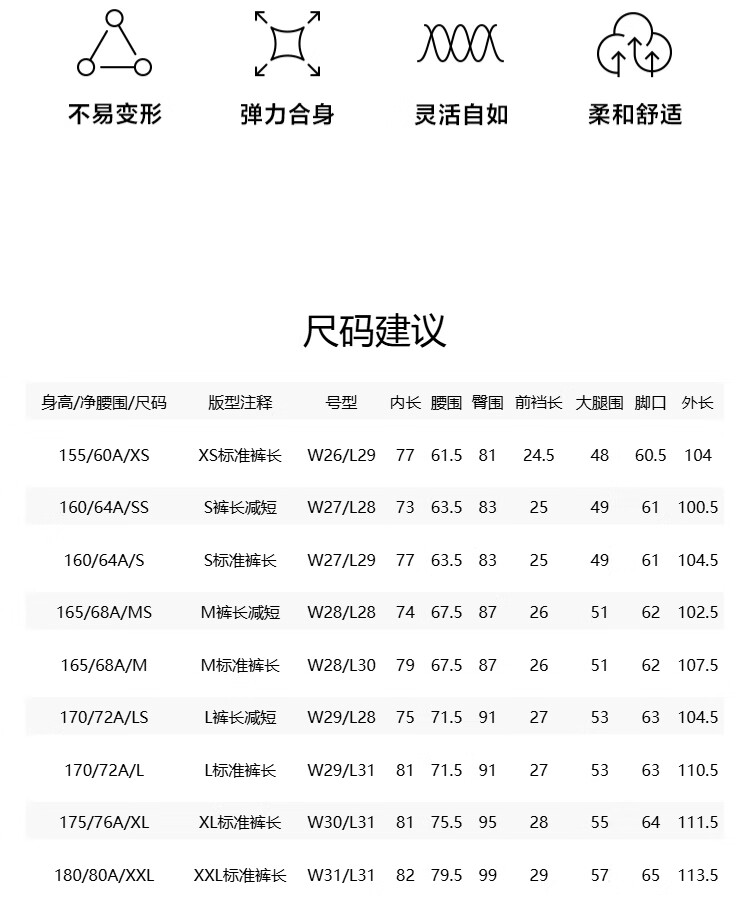 Outseam (cm) 99 cm 101.5 cm 104 cm 106.5 cm 109 cm