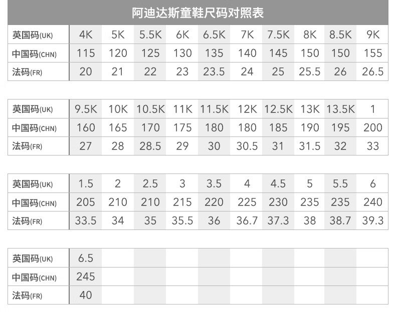 China (cm) 36 - 37 38 - 39 40 - 42 43 - 44 45 - 47