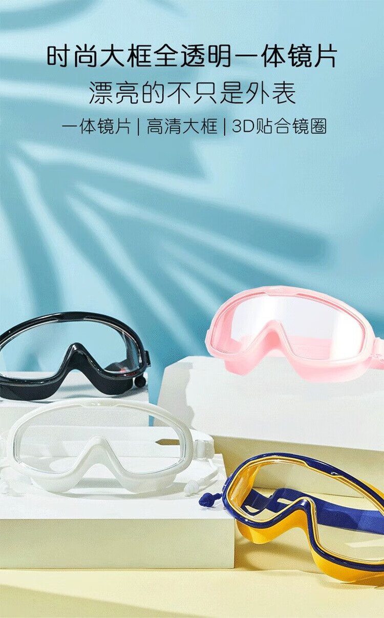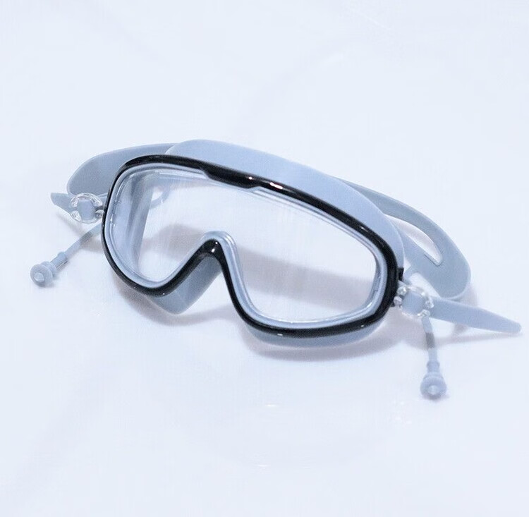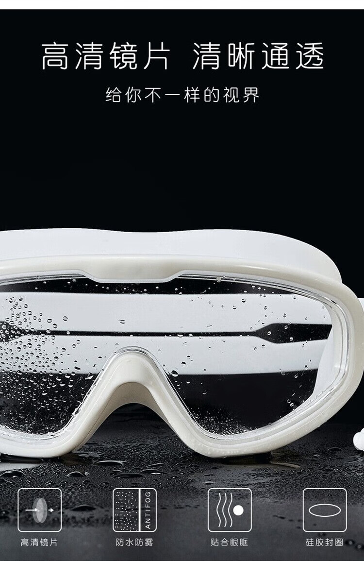 Water Splashing Festival goggles, swimming goggles, eye protection, diving, large frame, children, adults, men and women, waterproof anti-fog swimming goggles, fog-free swimming cap set, swimming set, swimming cap-+ear plugs and nose clip+mirror box, small frame swimming goggles-light black
