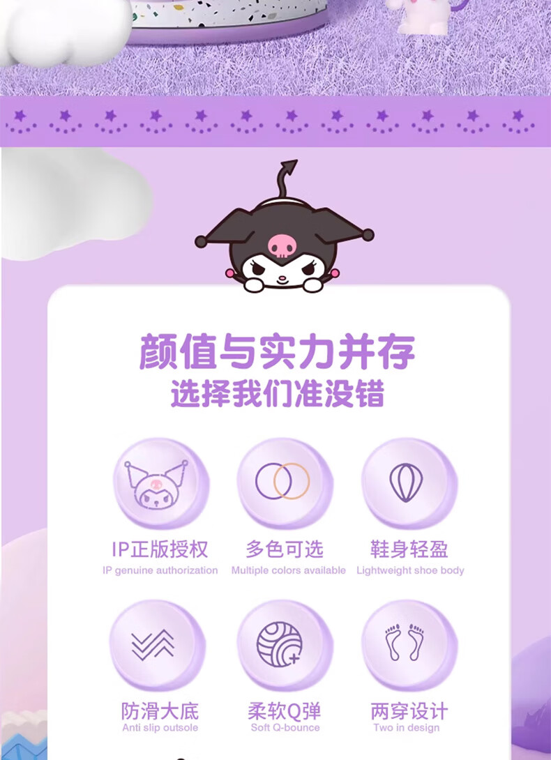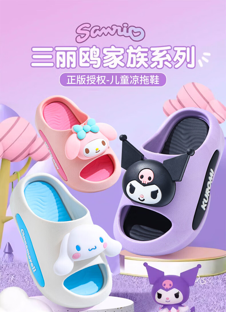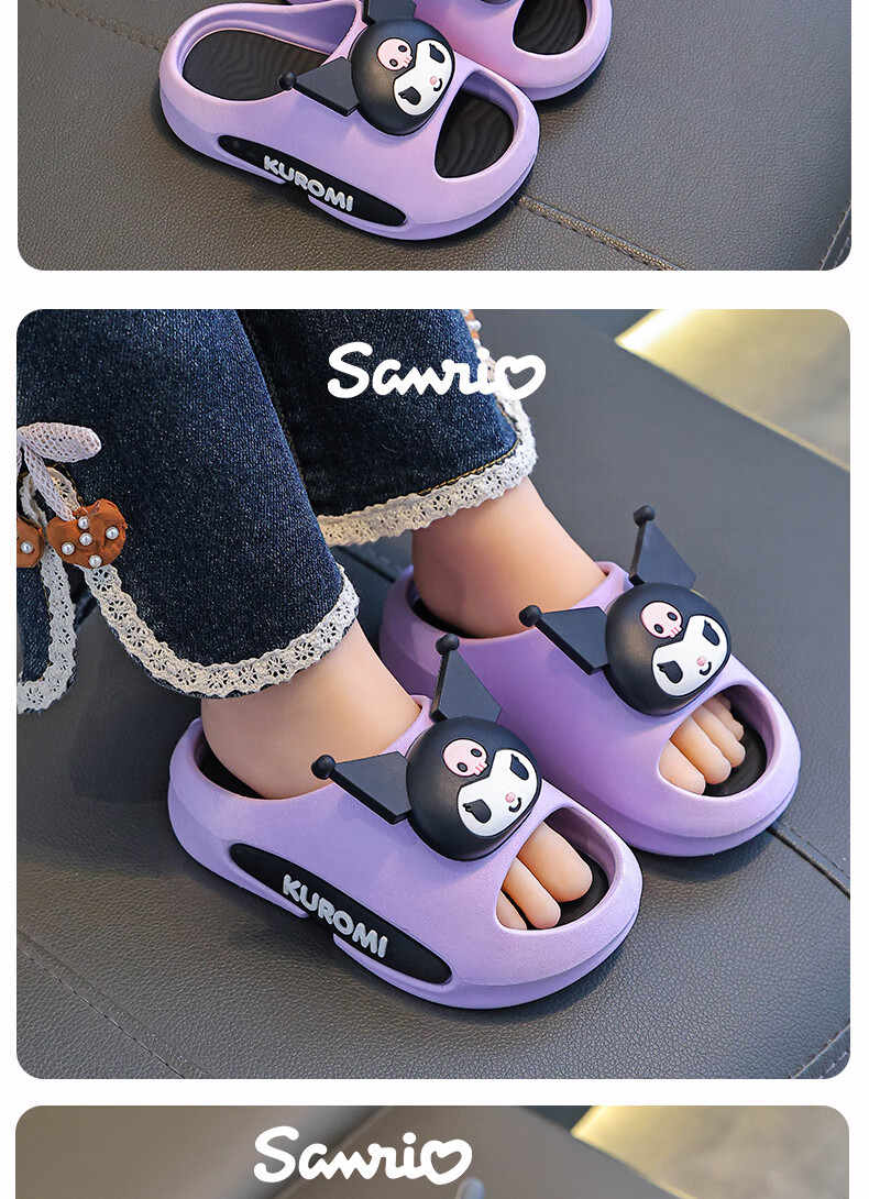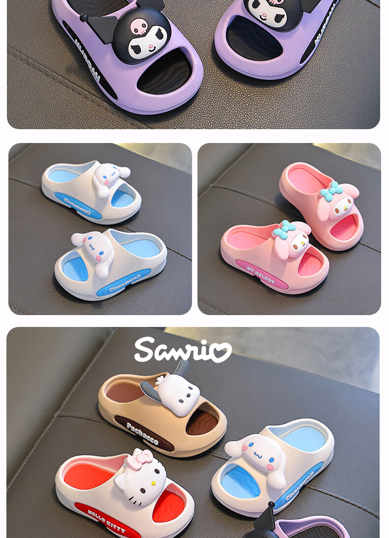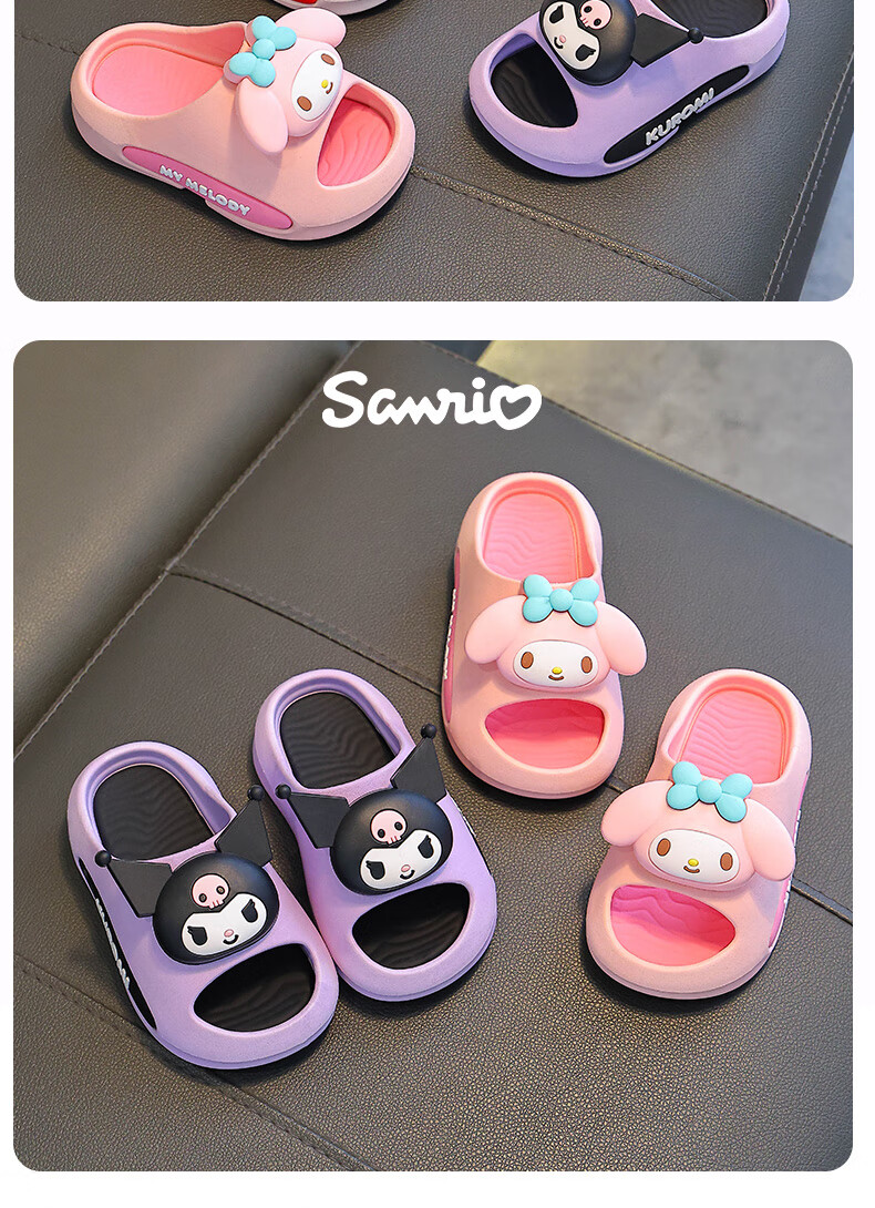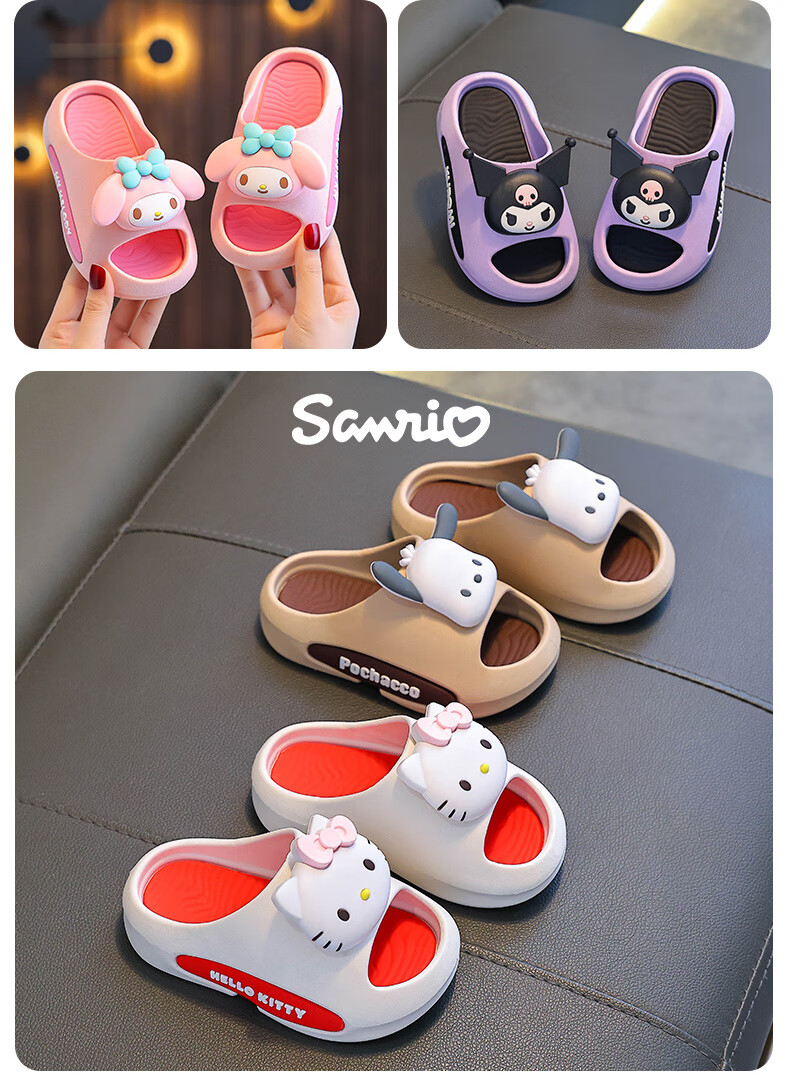 Sanrio Girls' Slippers Kurome Cartoon Girl's Slippers Parent-Child Soft Sole Indoor Non-Slip Home Furnishing Feeling White Hello Kitty (Upgraded Eco-Friendly Material) 12 30/31 Size (Shoe Inner Length 18 Suitable for Foot Length 17CM